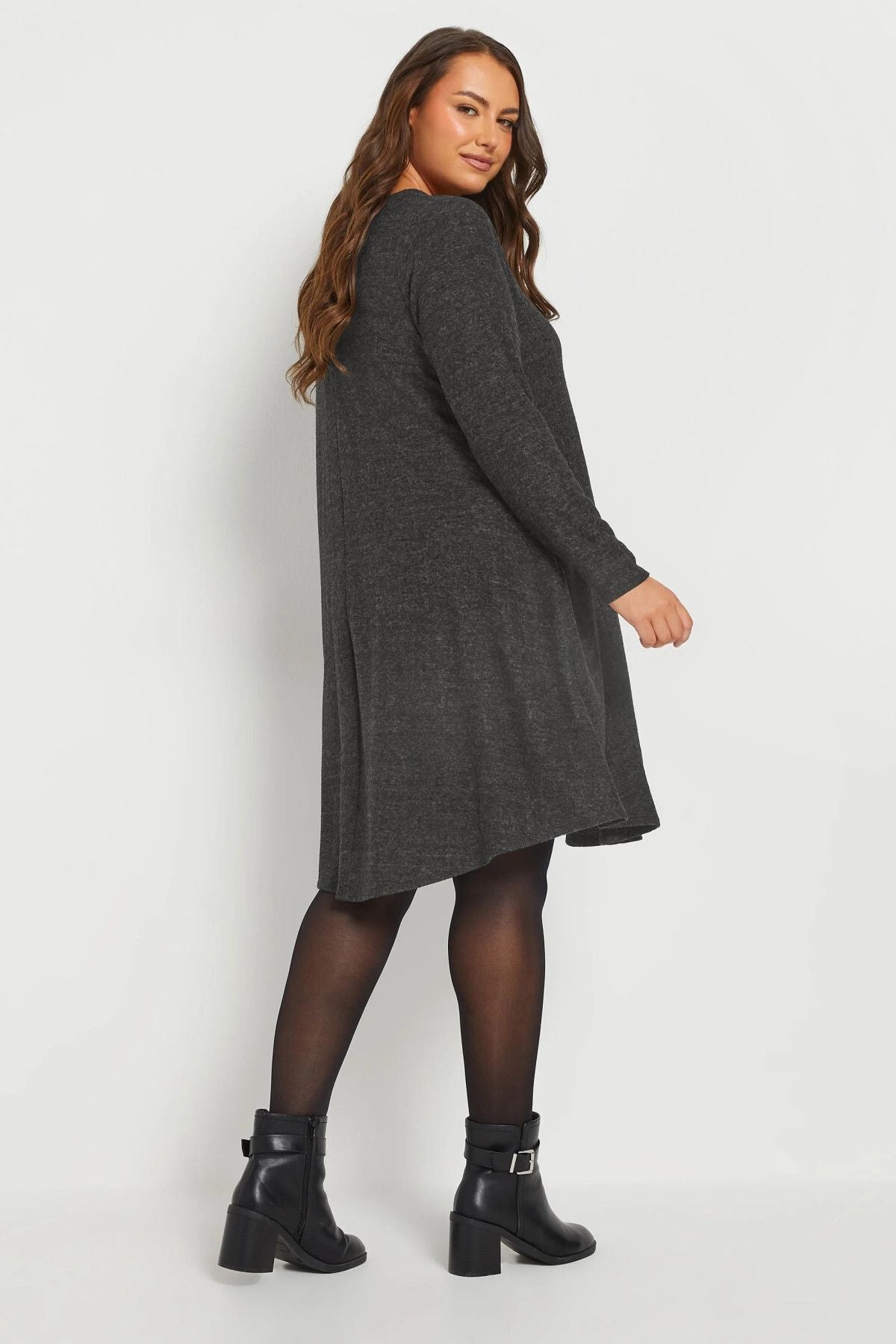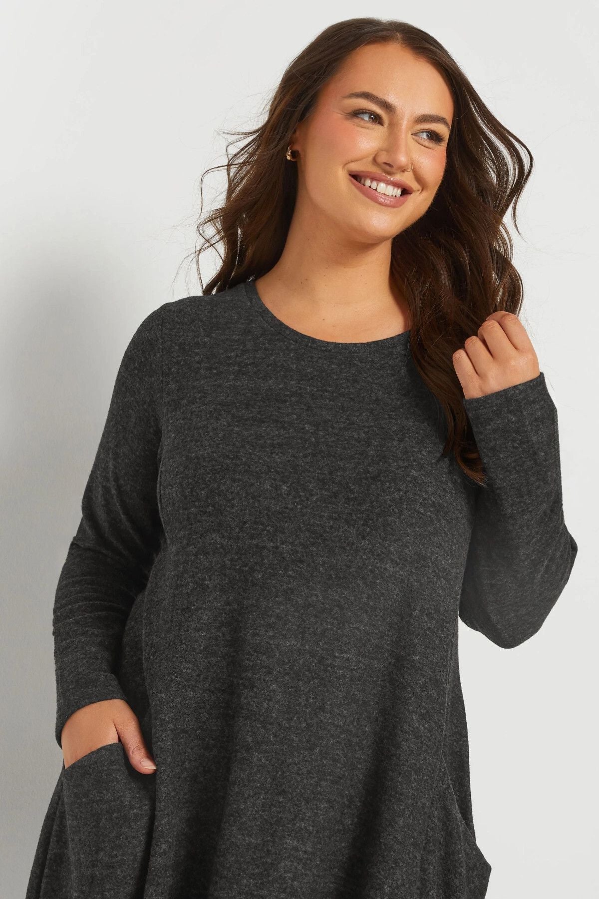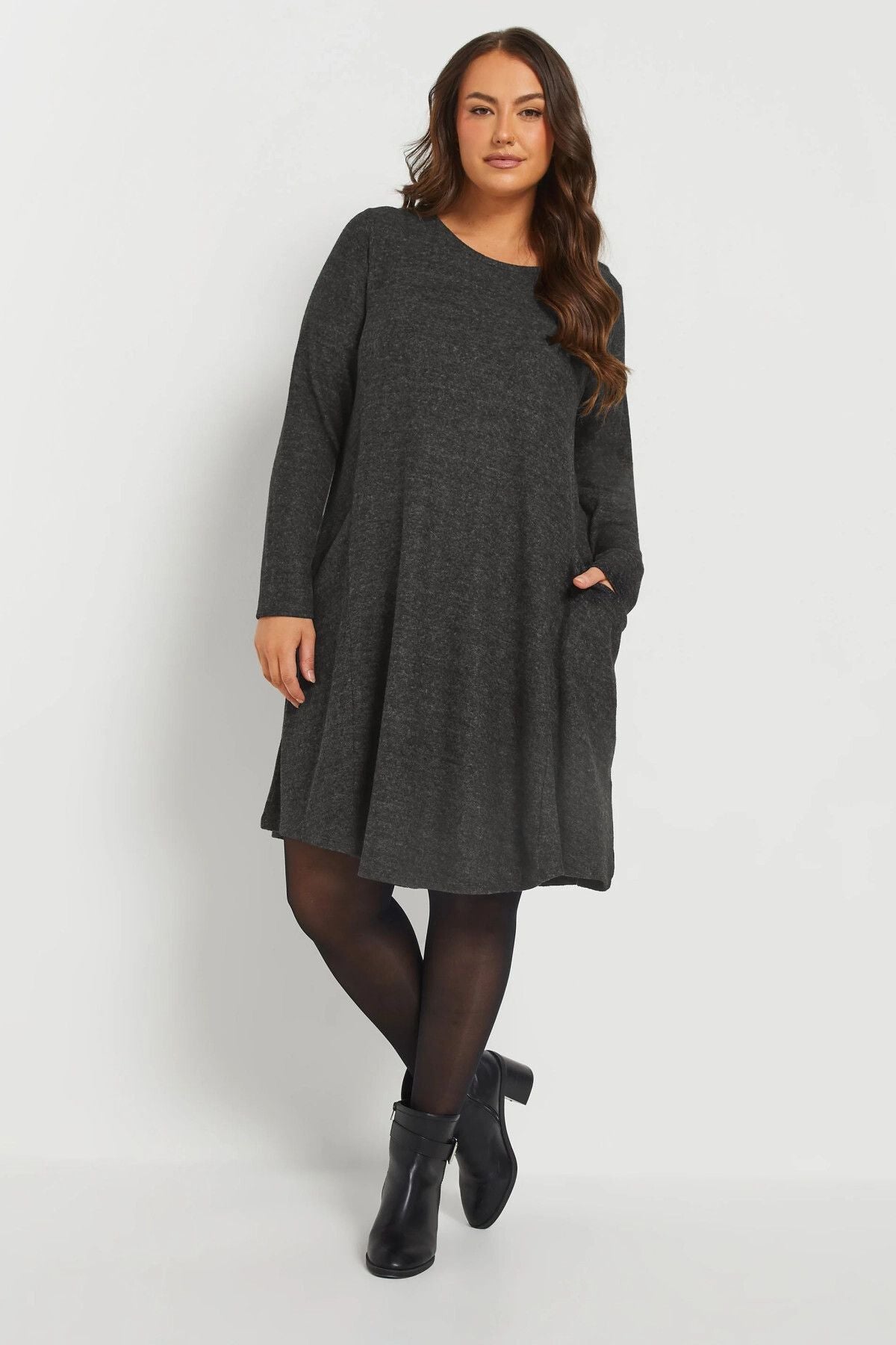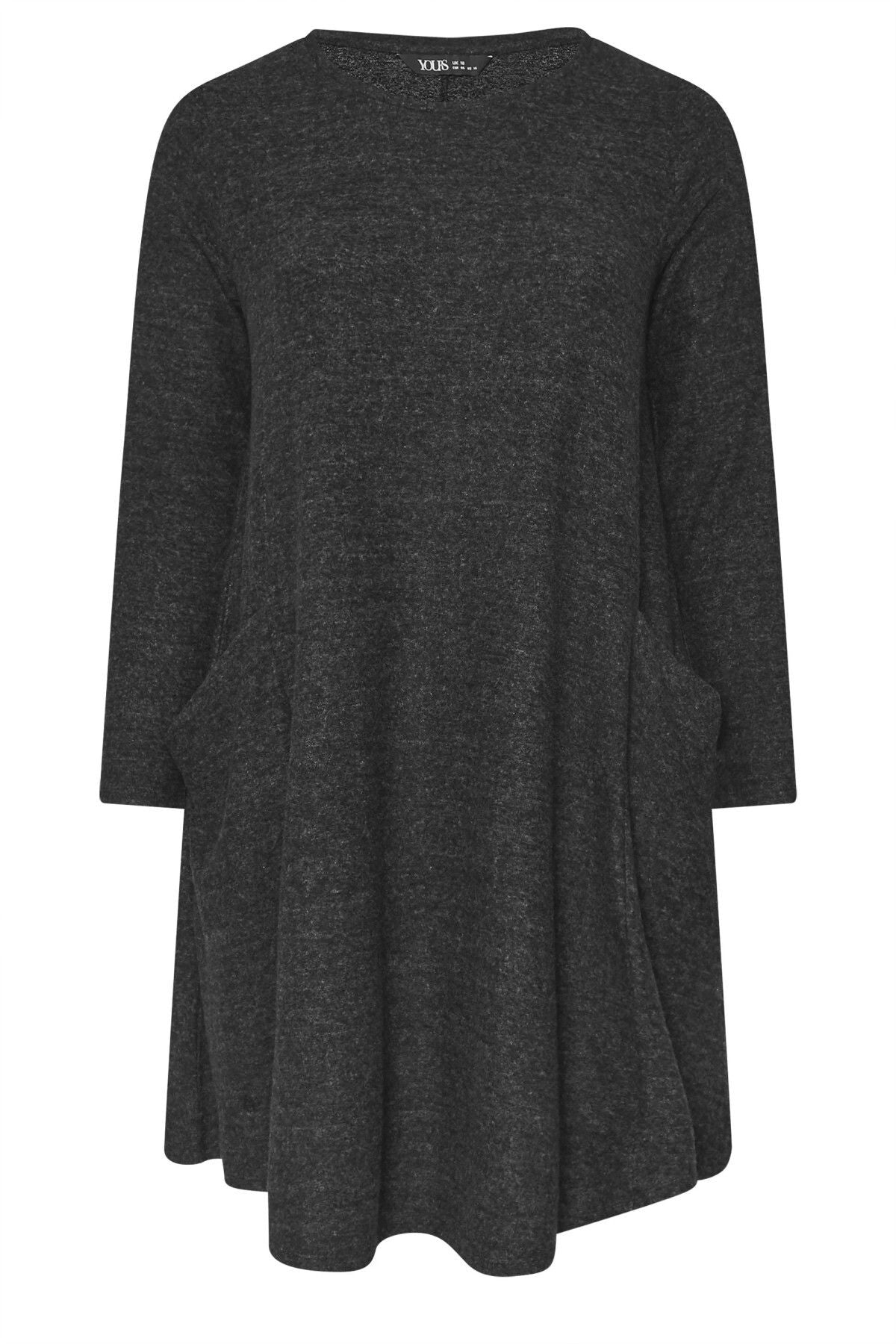 Büyük Beden Uzun Kol Bisiklet Yaka Eteği Bollaşan Cepli Elbise 270083