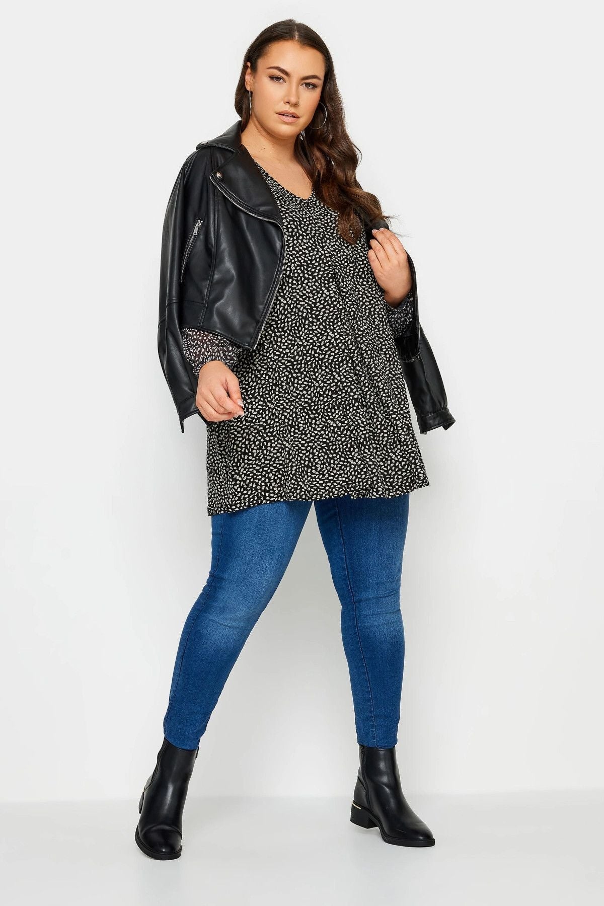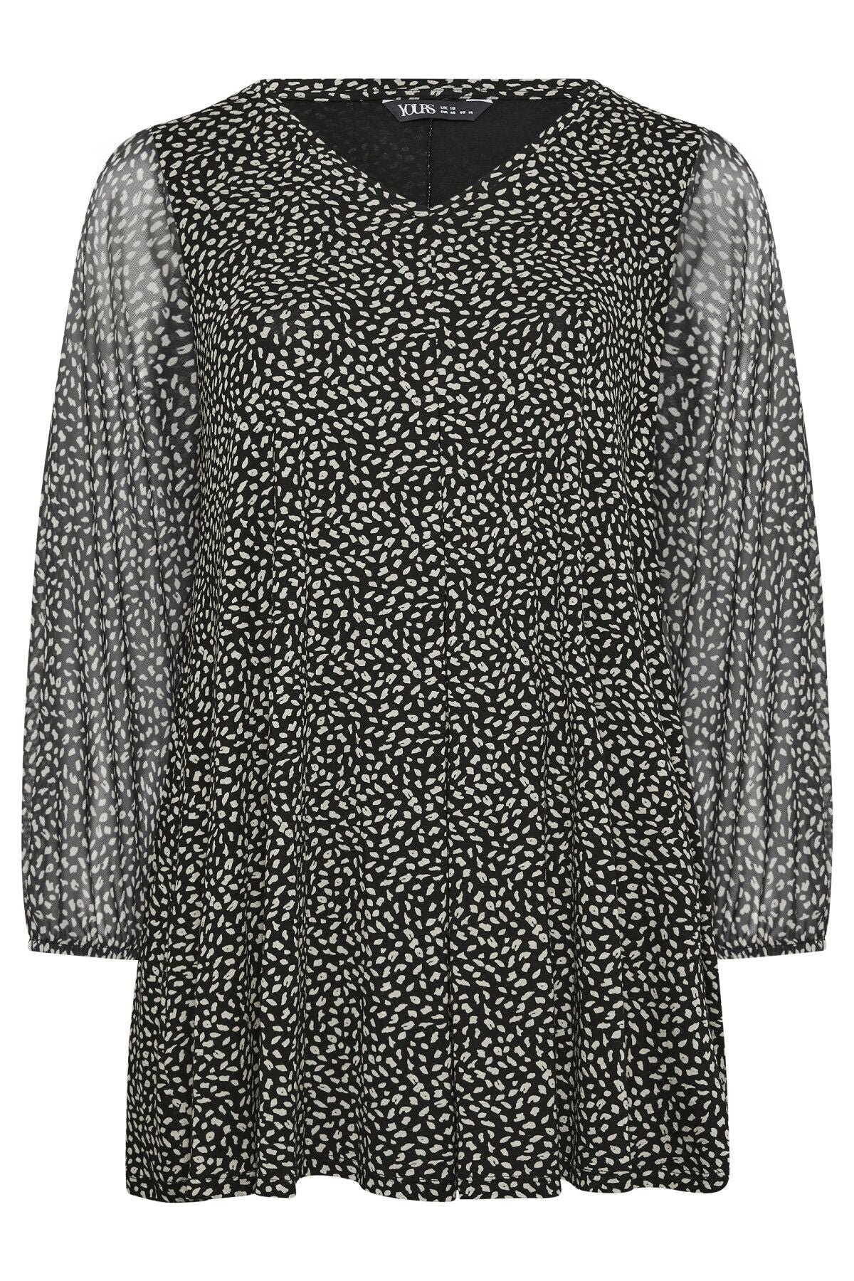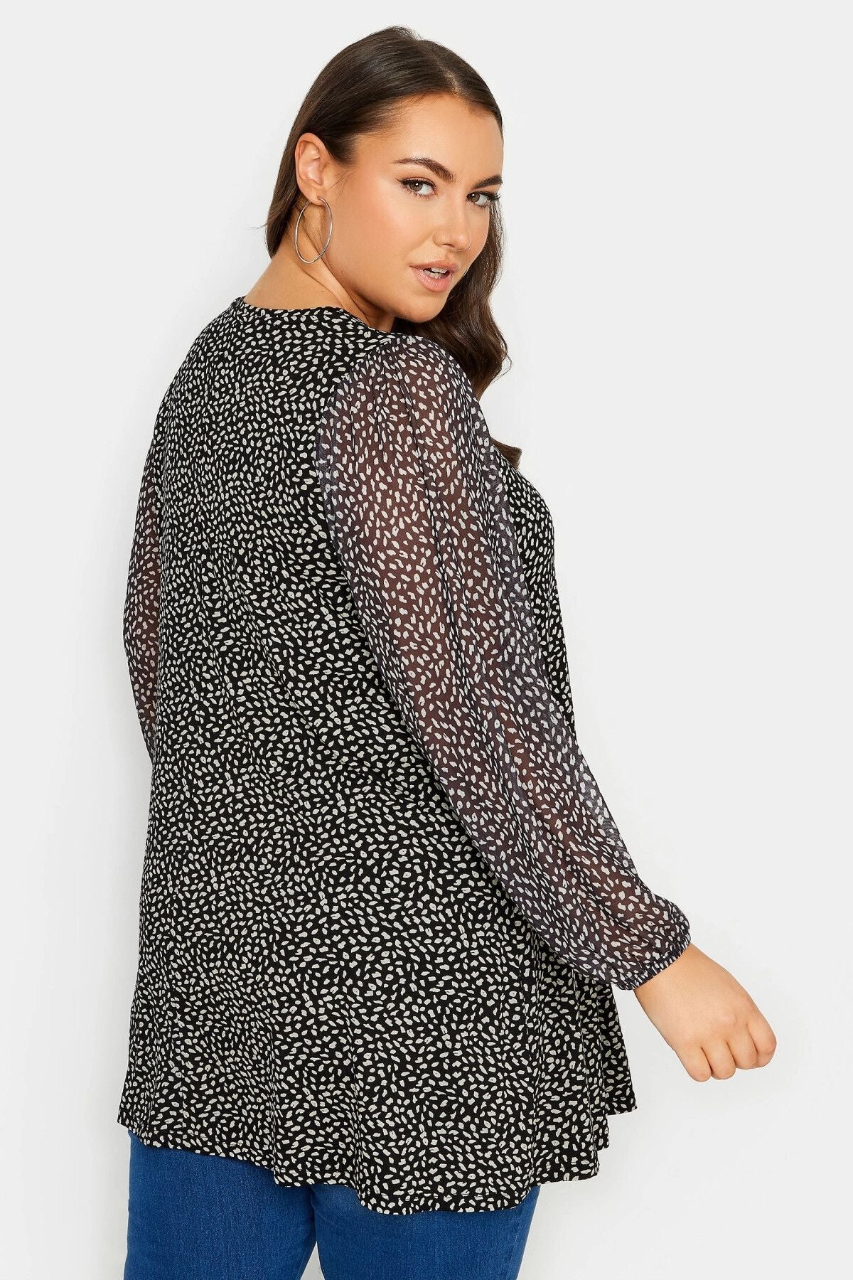Büyük Beden Uzun Kolları Tül Detaylı Pileli V Yaka Bluz 302826