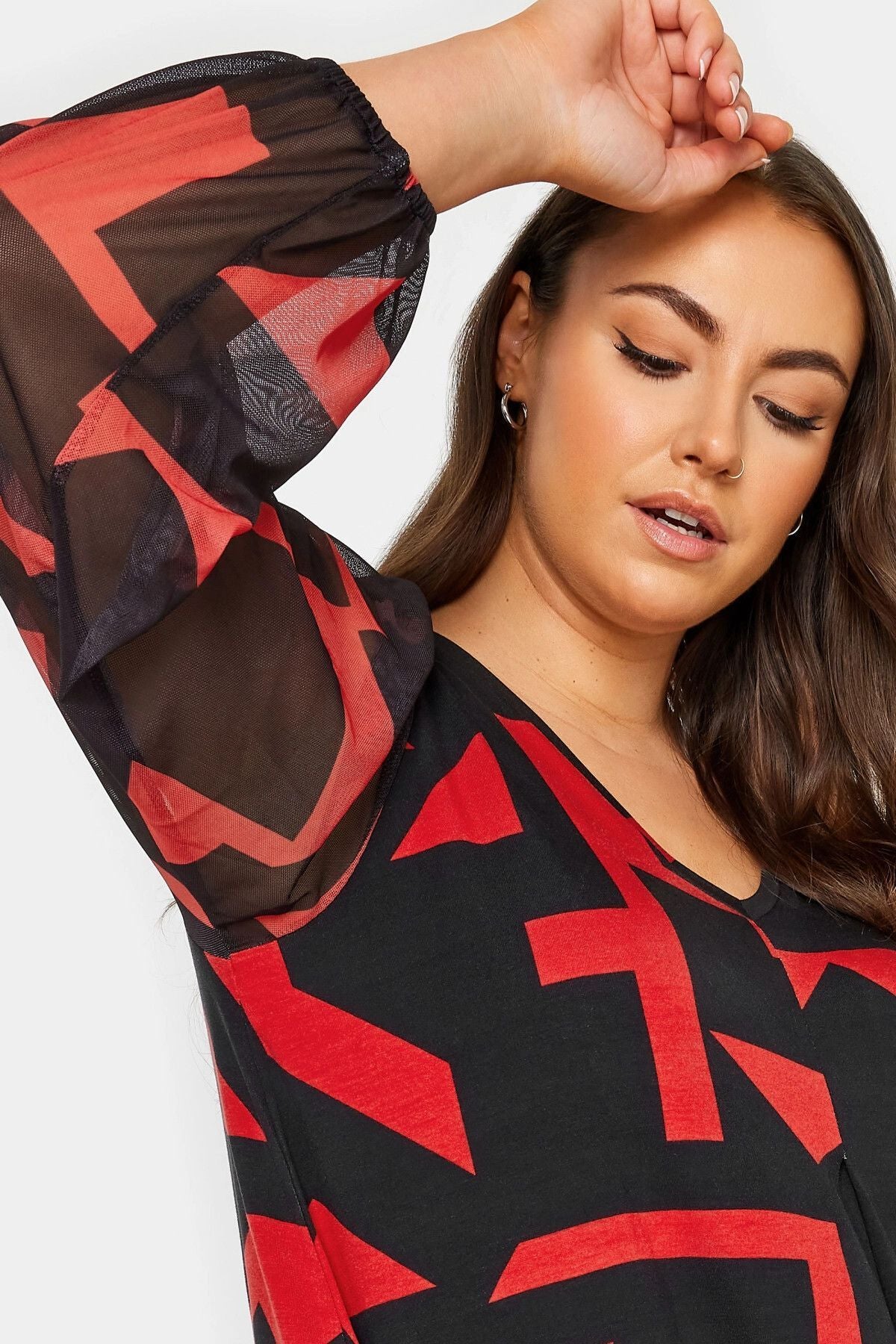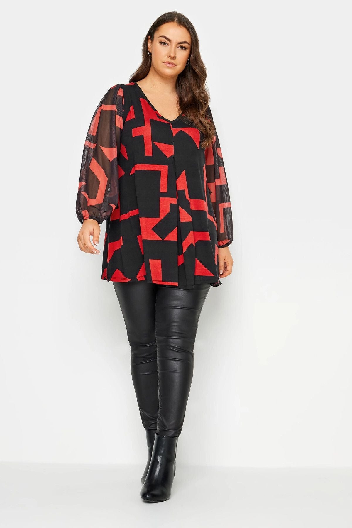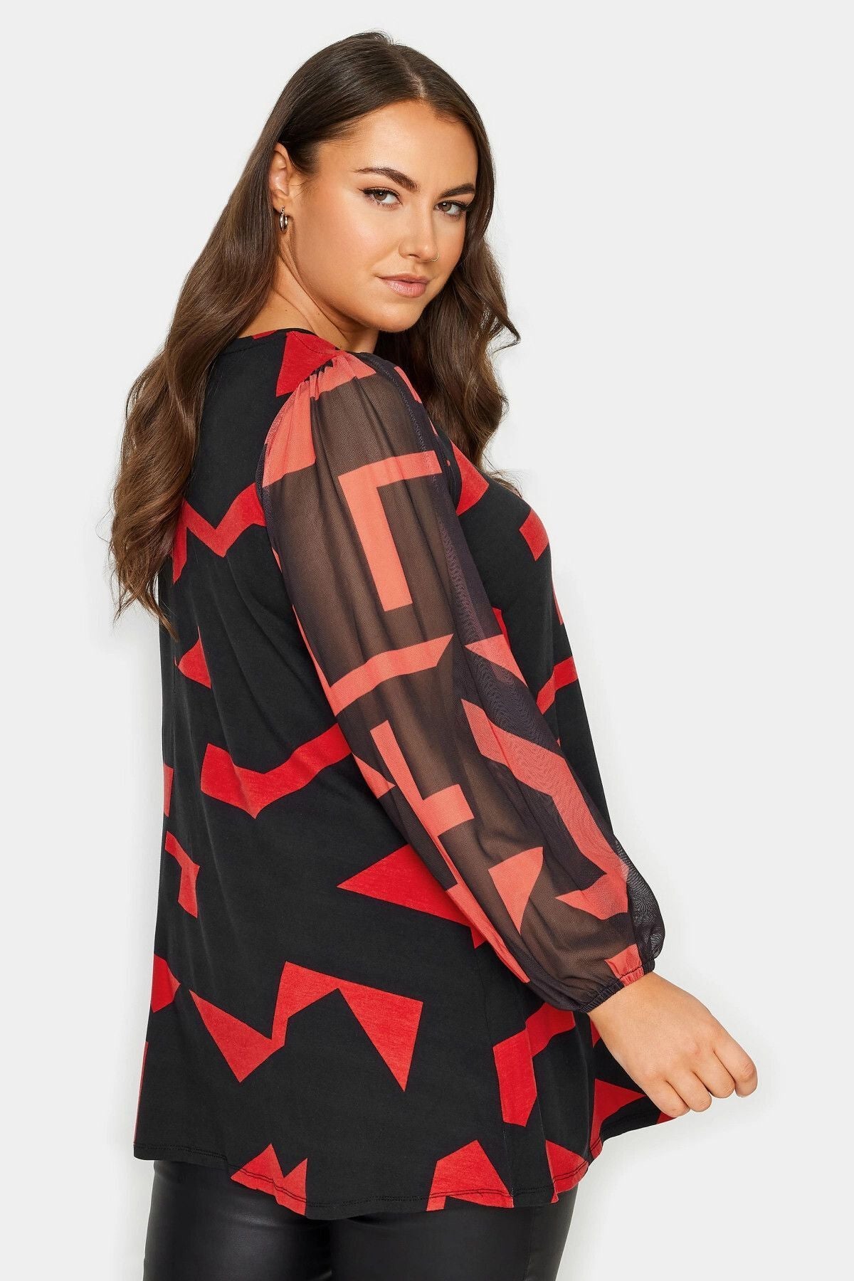 Büyük Beden Uzun Kolları Tül Detaylı Pileli V Yaka Bluz 302902