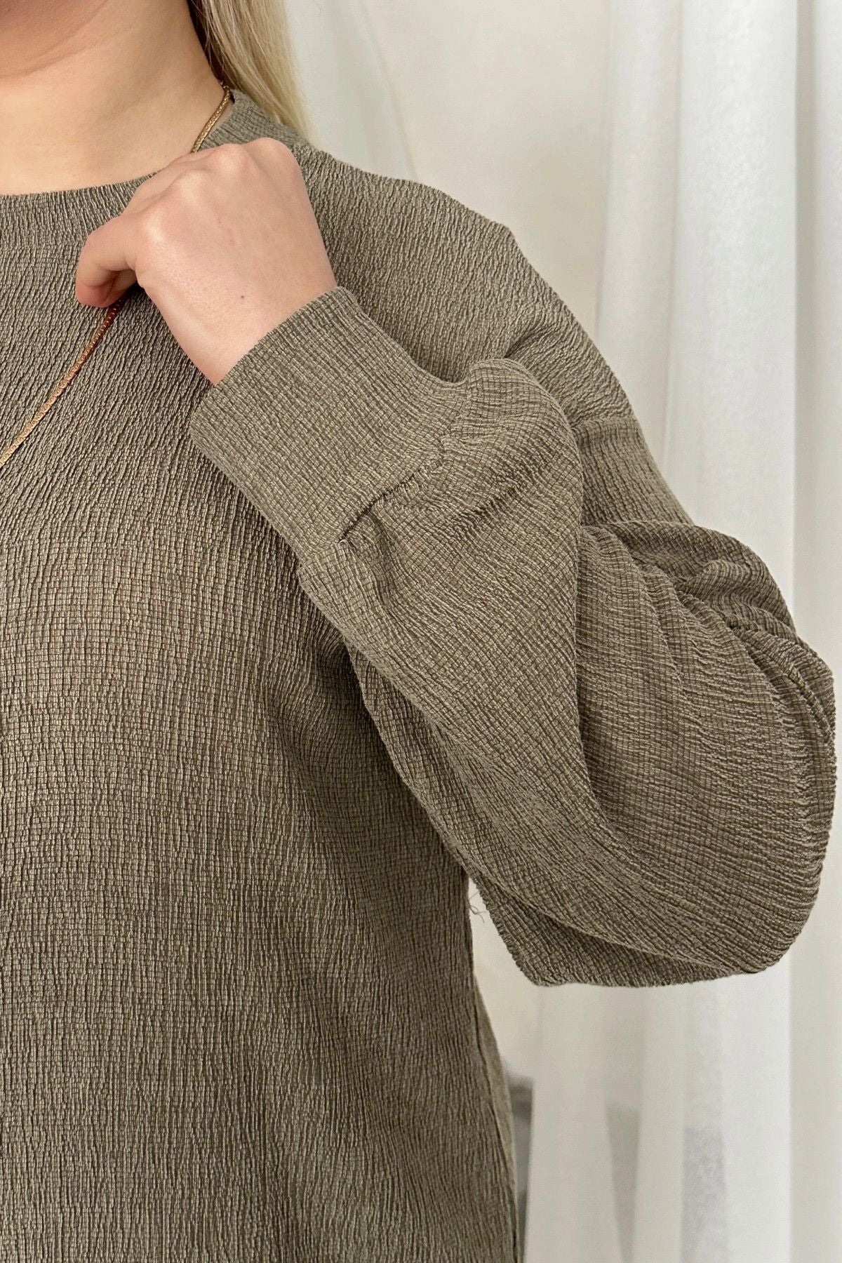 Büyük Beden Uzun Kollu Bisiklet Yaka Düz Kesim Elbise 100-190