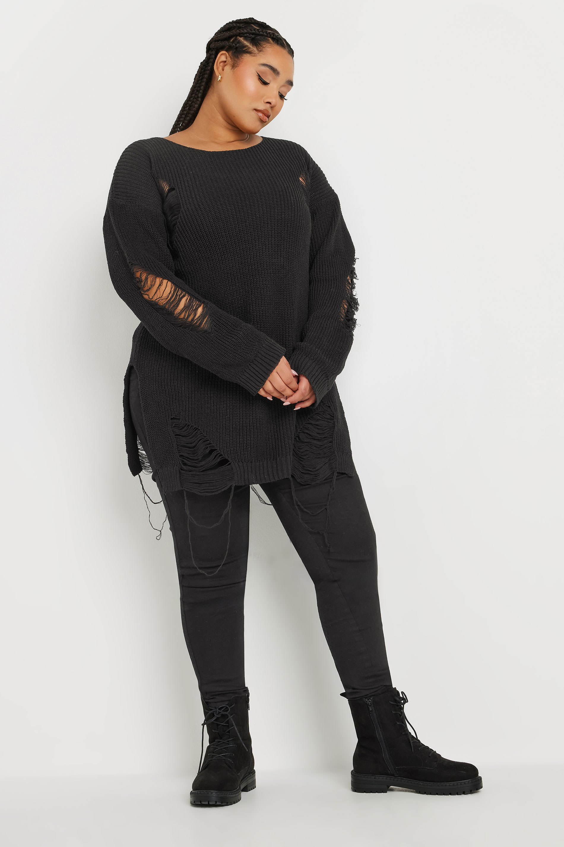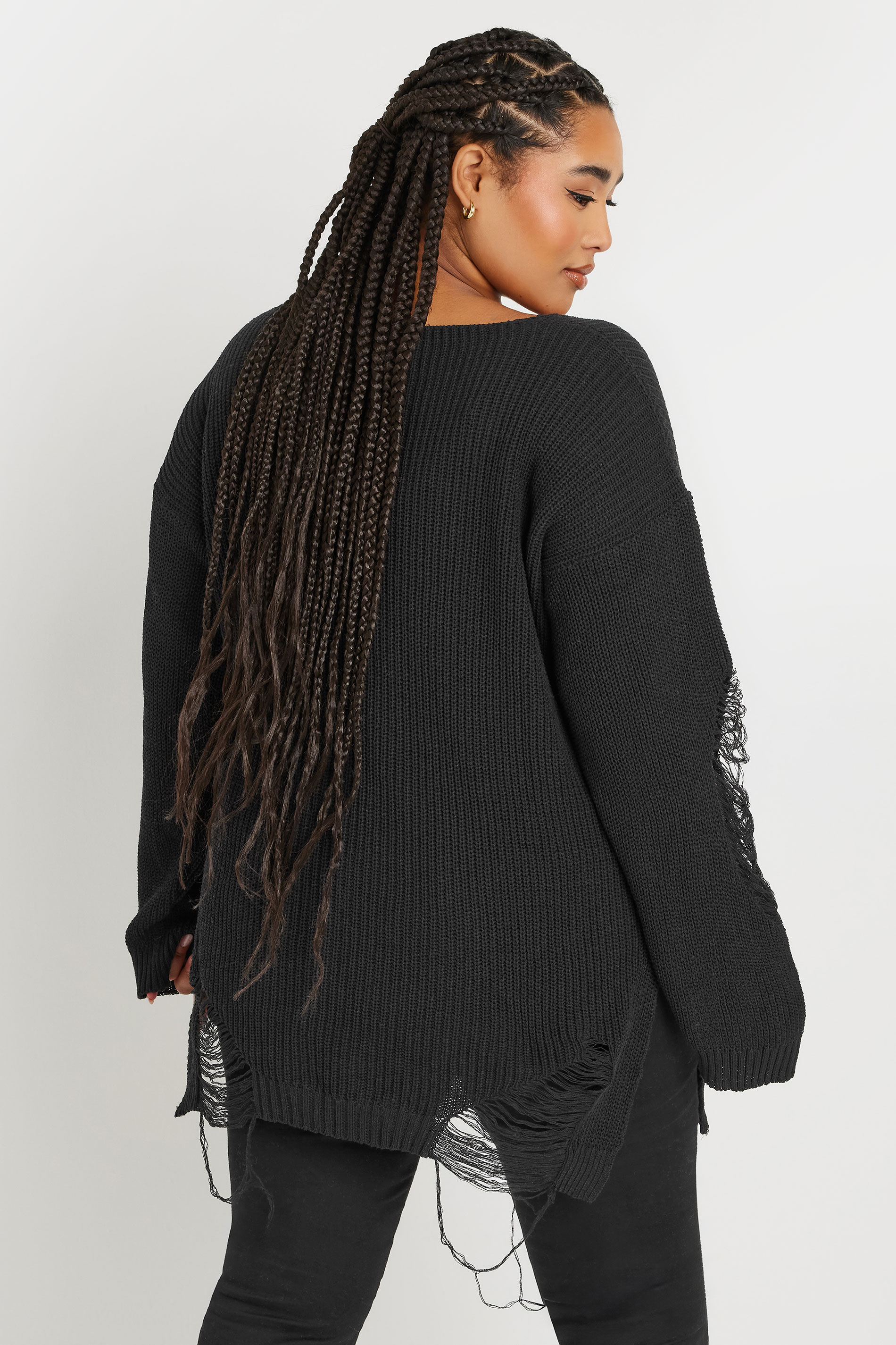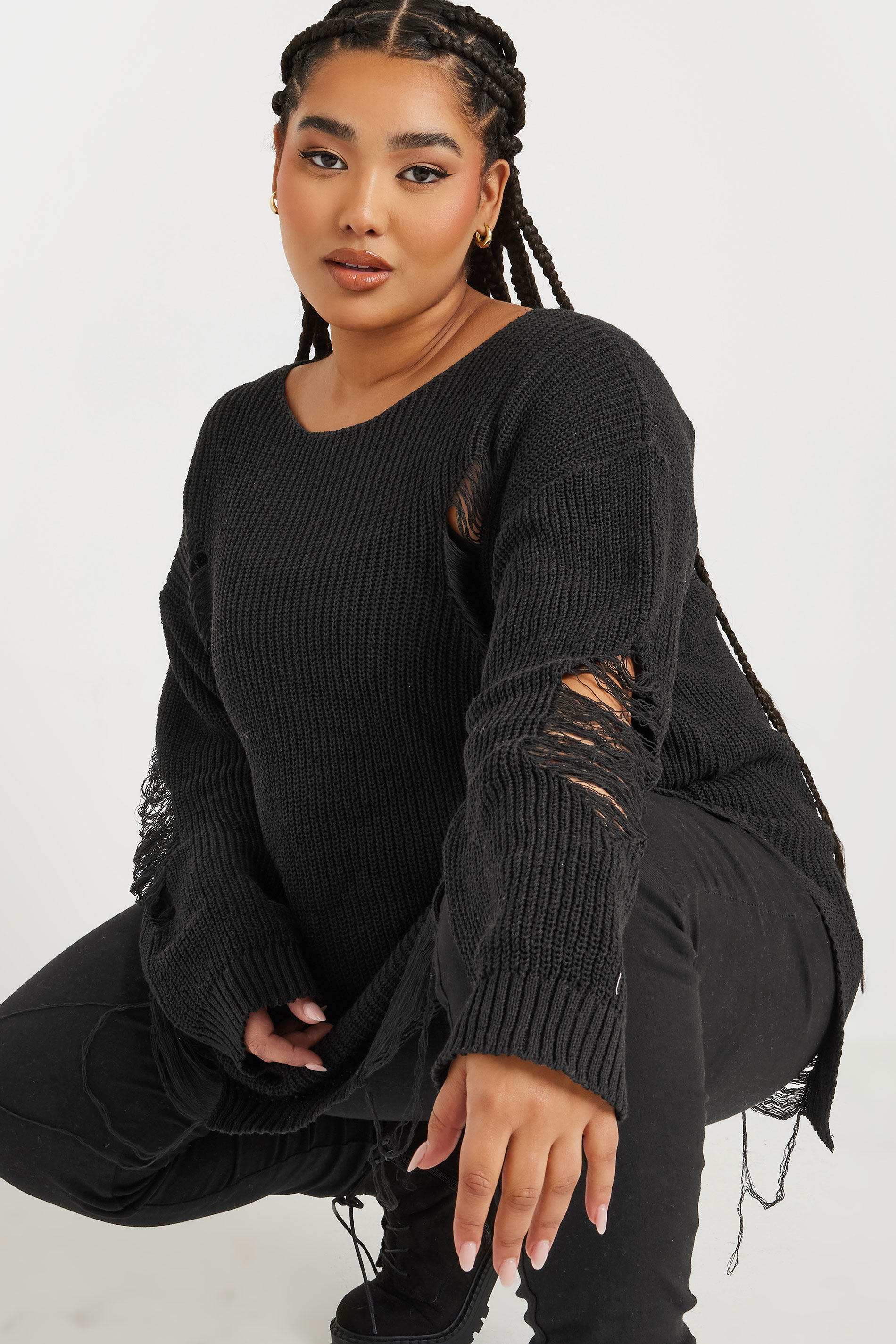 Büyük Beden Uzun Kollu Bisiklet Yaka Yırtık Detaylı Triko Kazak 303582