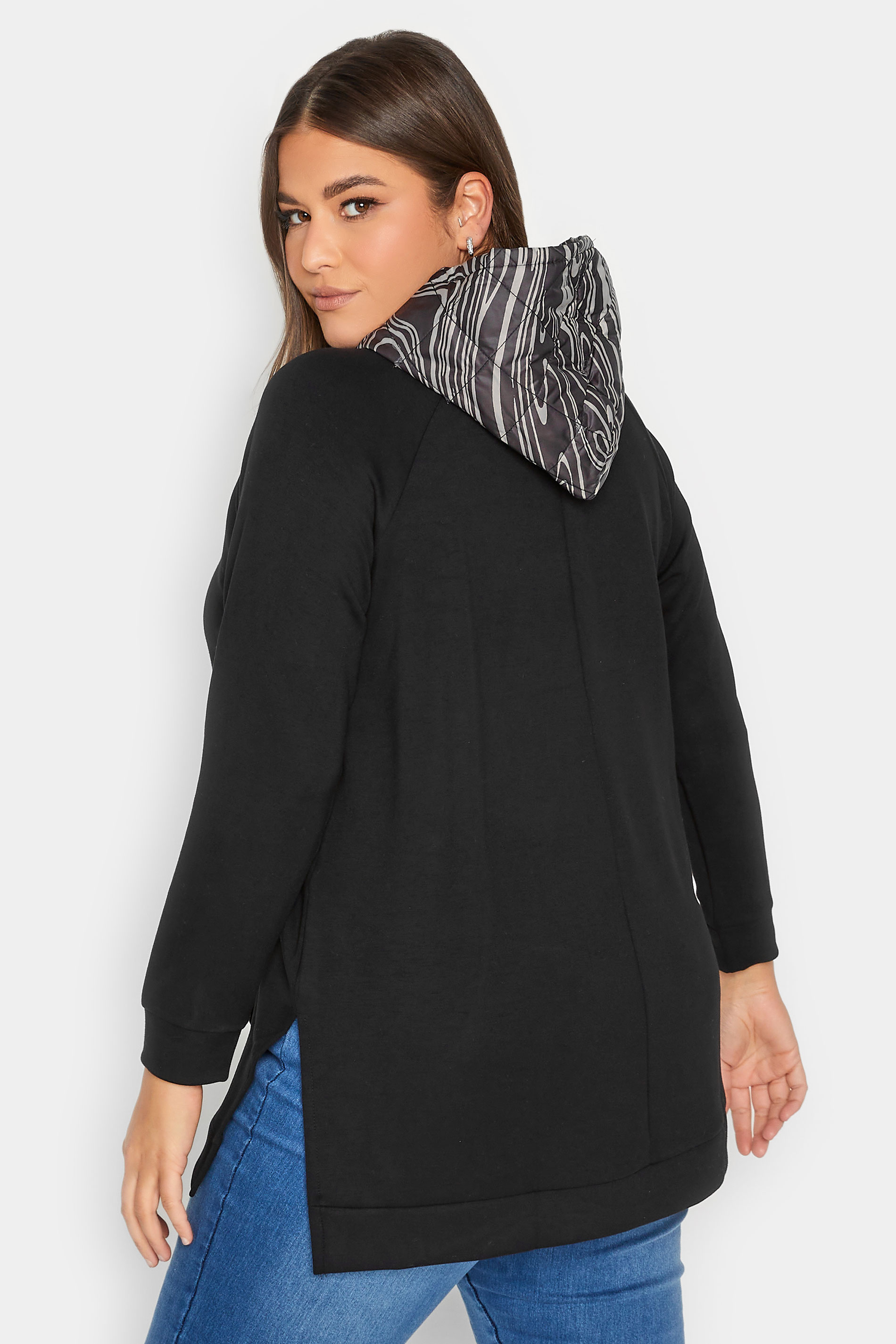 Büyük Beden Uzun Kollu Cepli Yanı Yırtmaçlı Kapüşonu Desenli Sweatshirt 300318