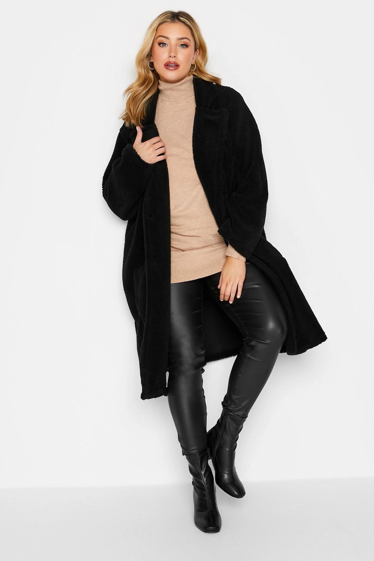 Büyük Beden Uzun Kollu Düğmeli Cepli Suni Kürk Kaban 301262