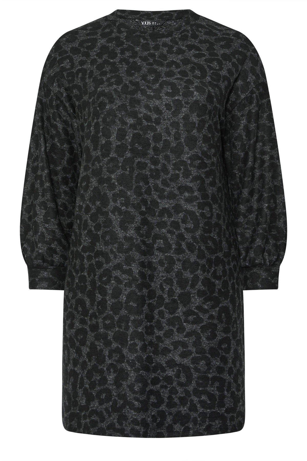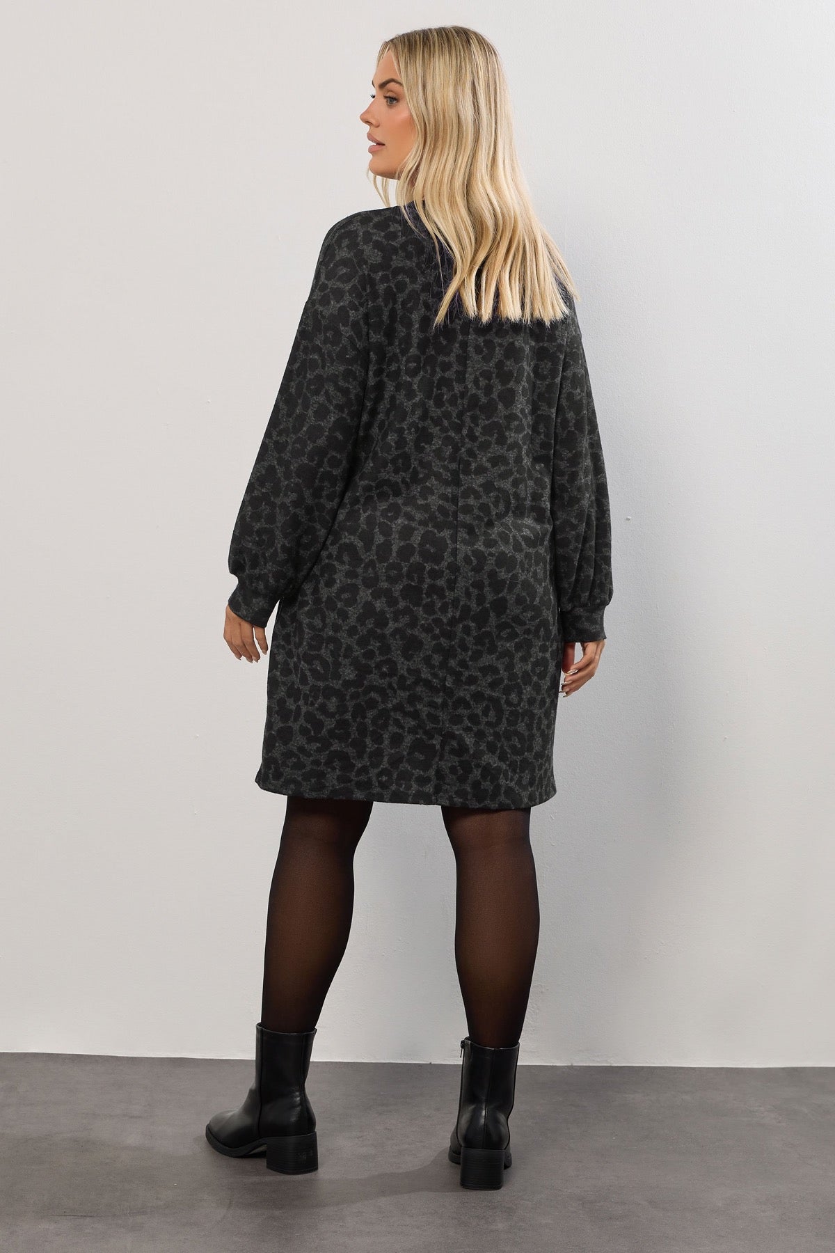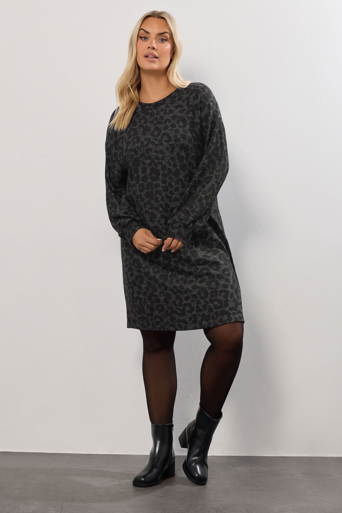 Büyük Beden Uzun Kollu Leopar Desenli Diz Üstü Elbise 285058