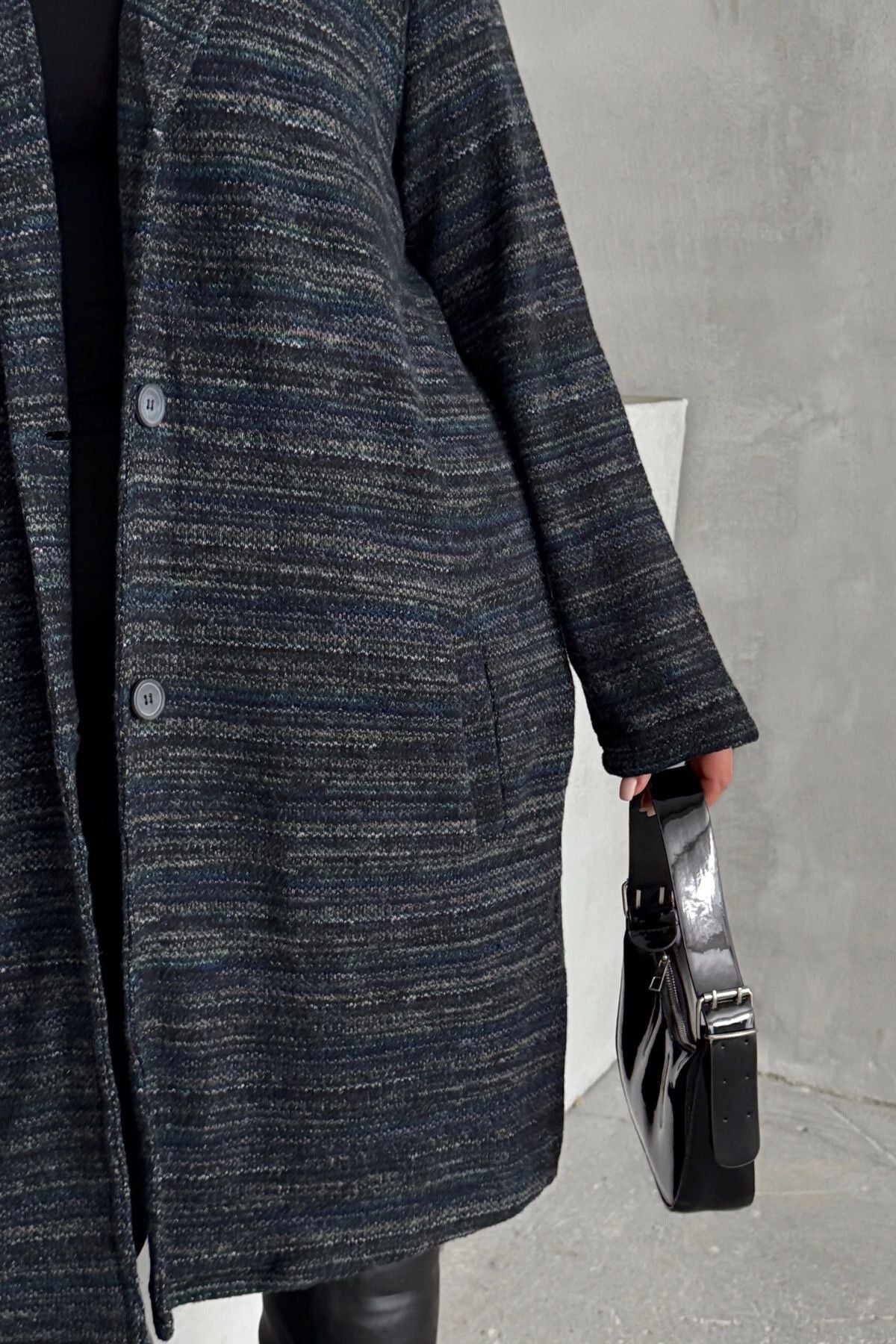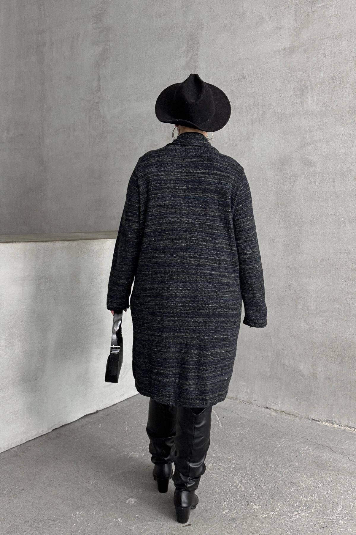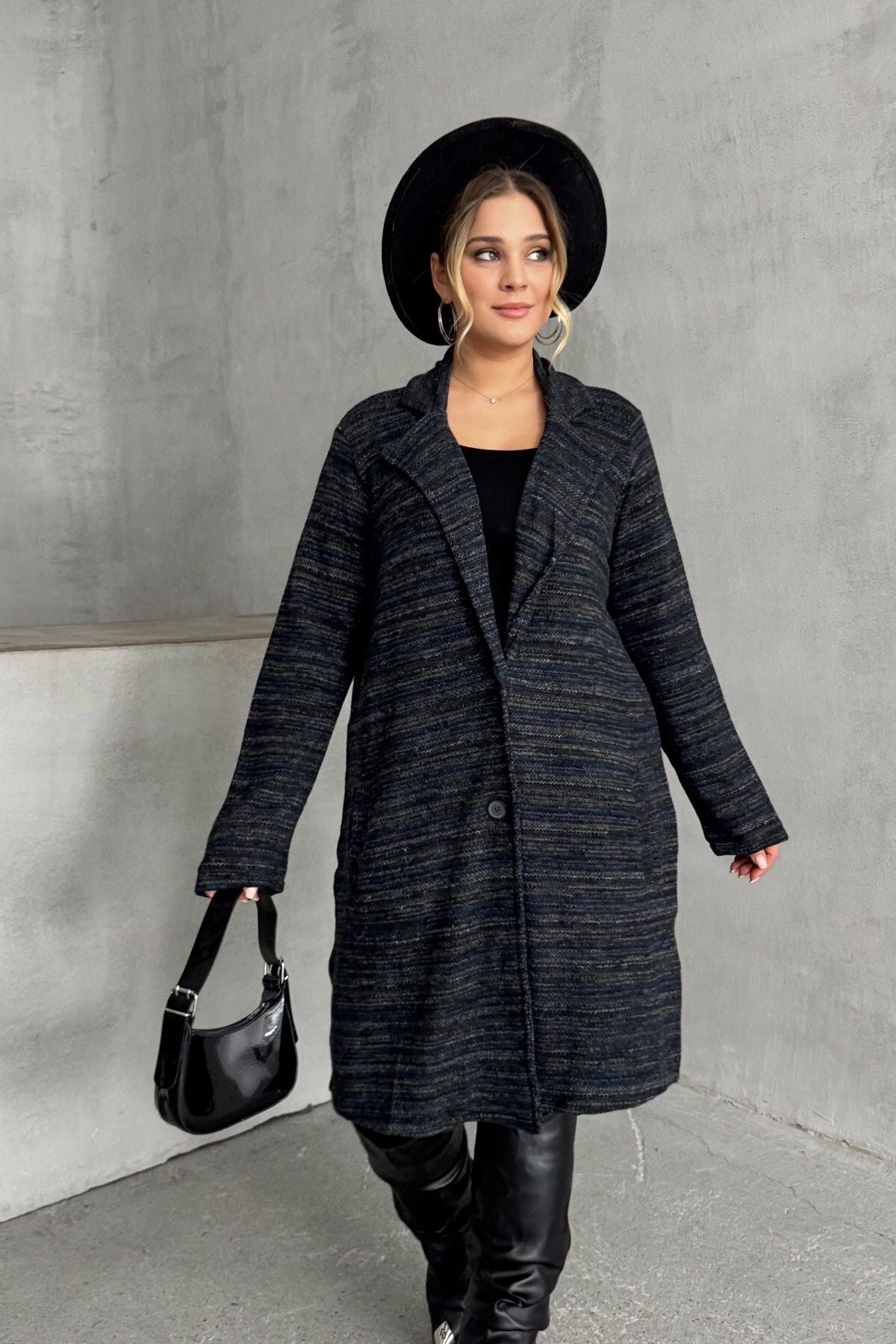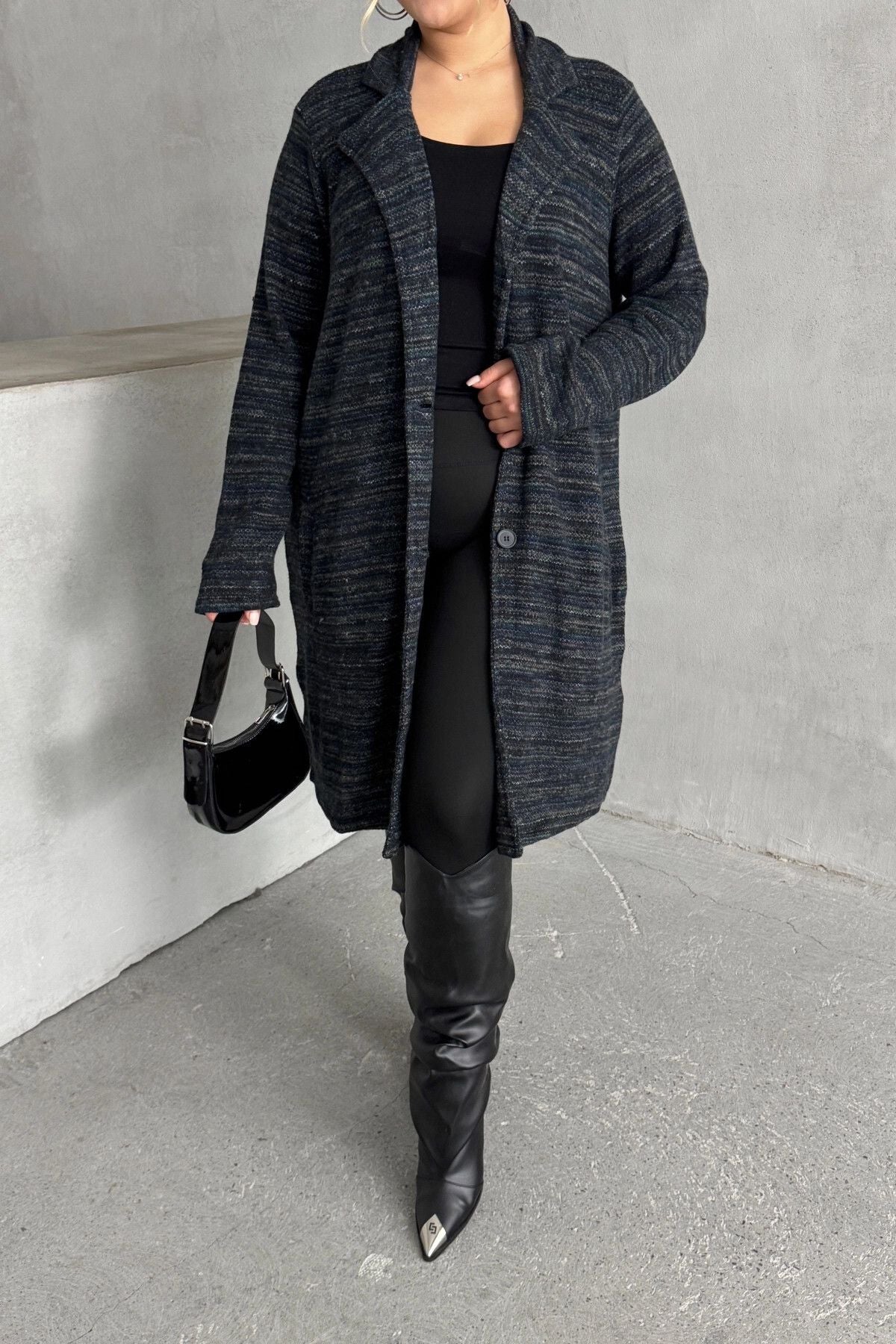 Büyük Beden Uzun Kollu Önü Düğmeli Cepli Uzun İnce Ceket 301800