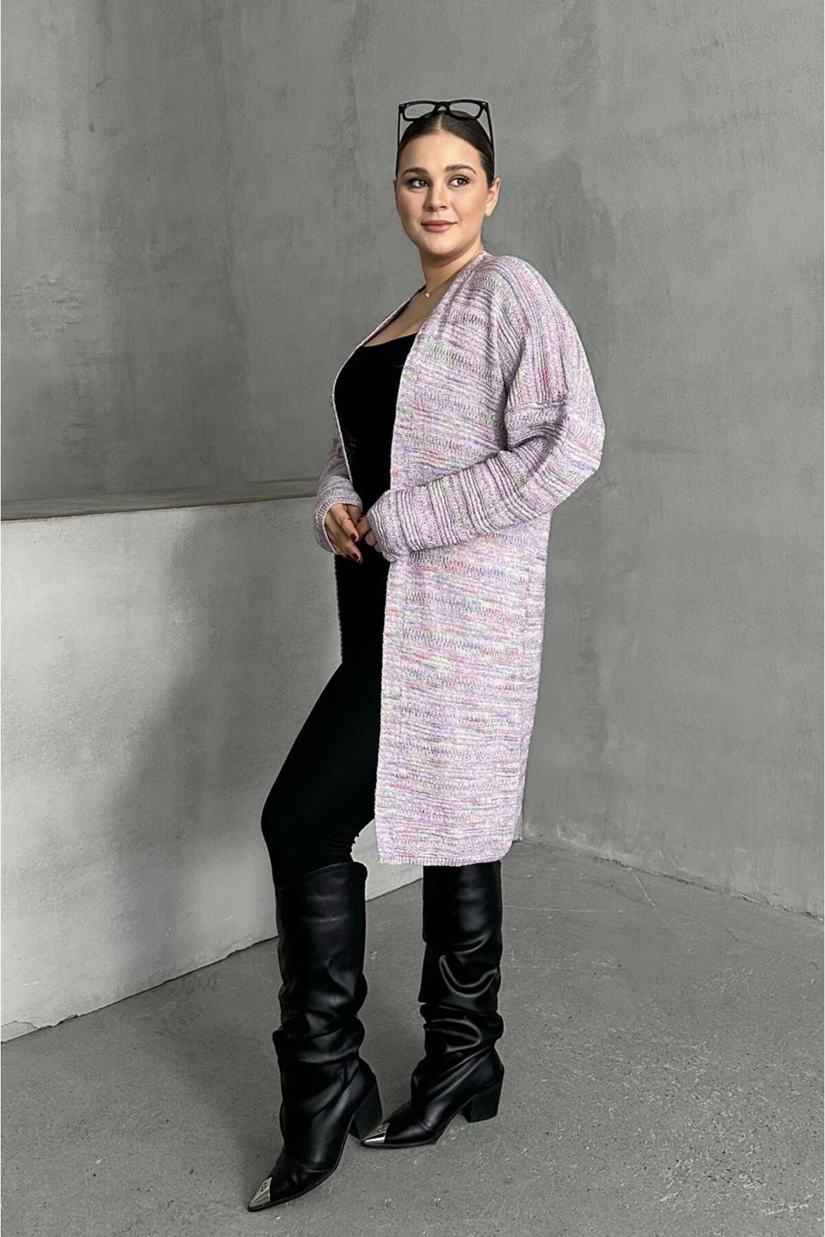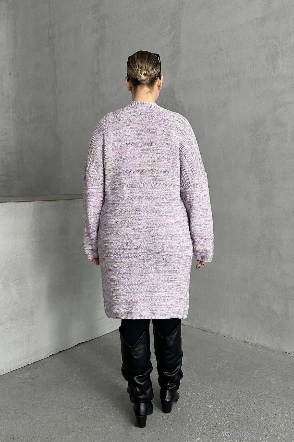 Büyük Beden Uzun Kollu Önü Kapamasız İnce Örme Hırka 302300 Büyük Beden Uzun Kollu Önü Kapamasız İnce Örme Hırka 302300