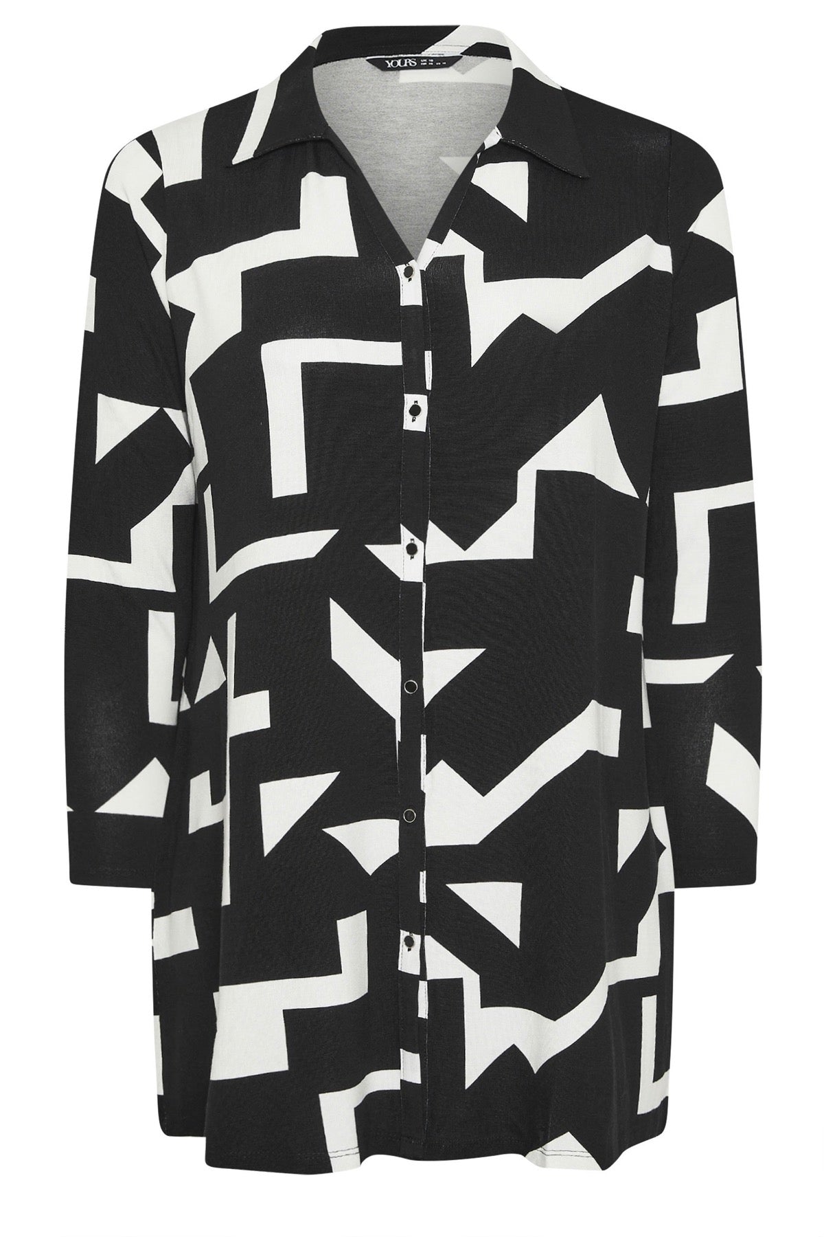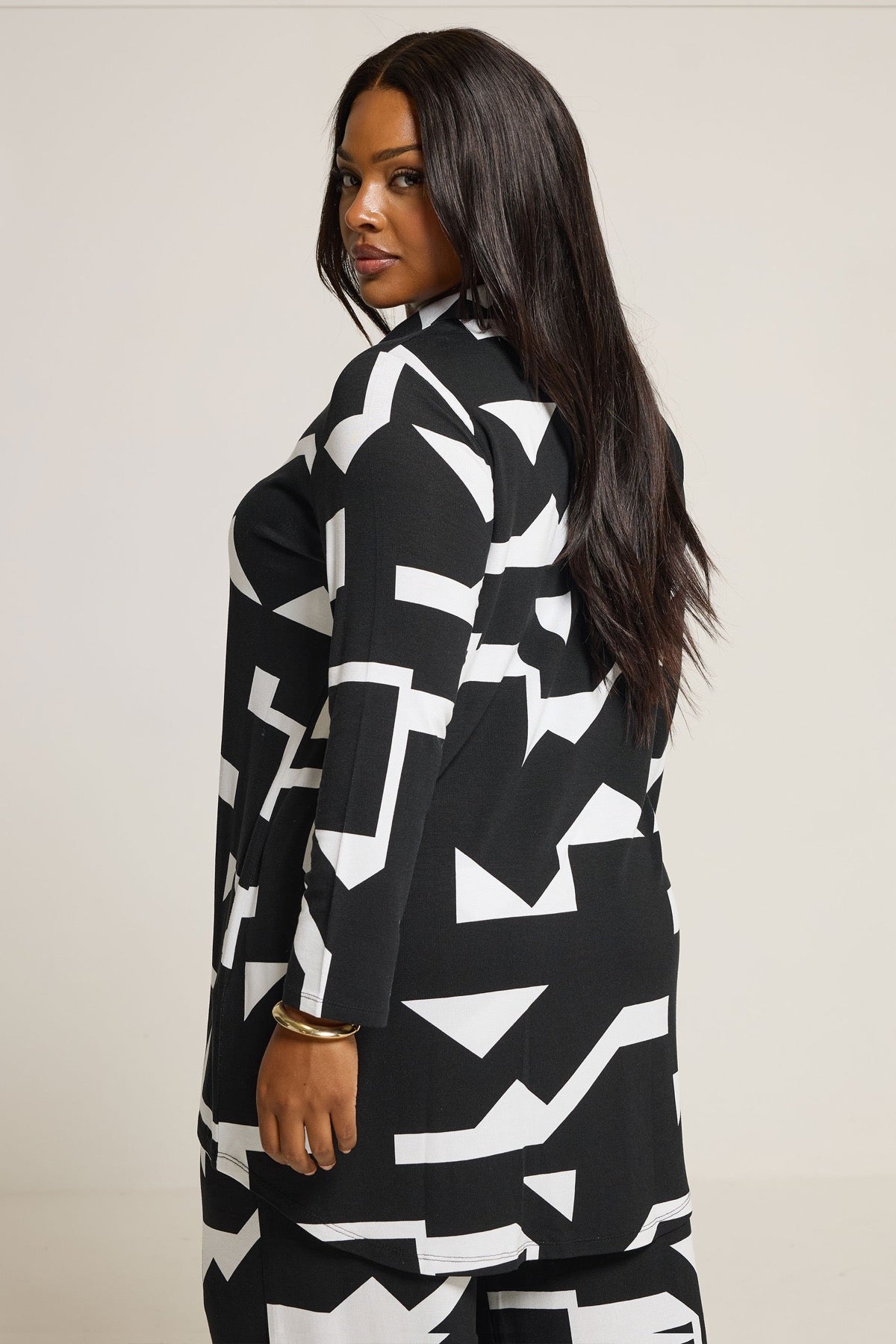 Büyük Beden Uzun Kollu Soyut Desenli Uzun Gömlek 304106