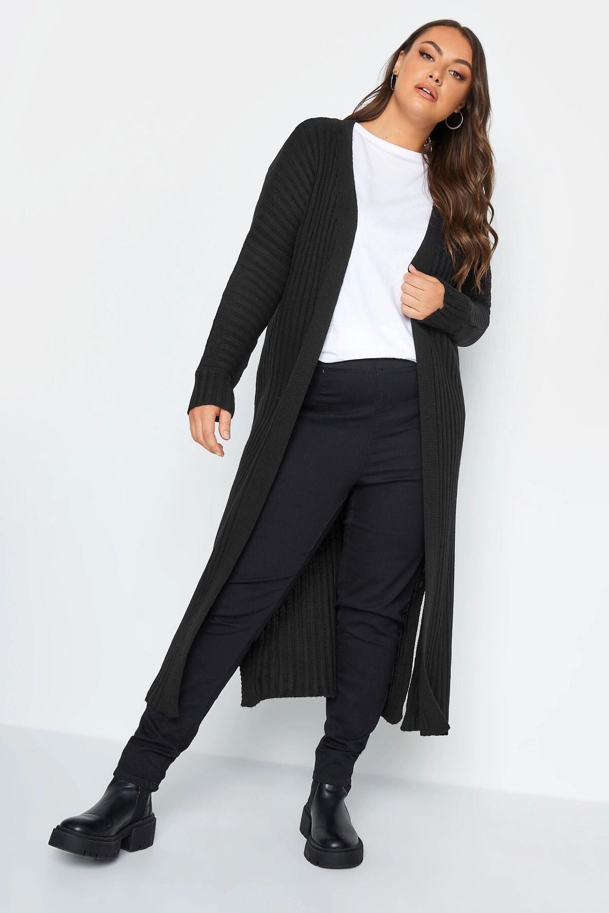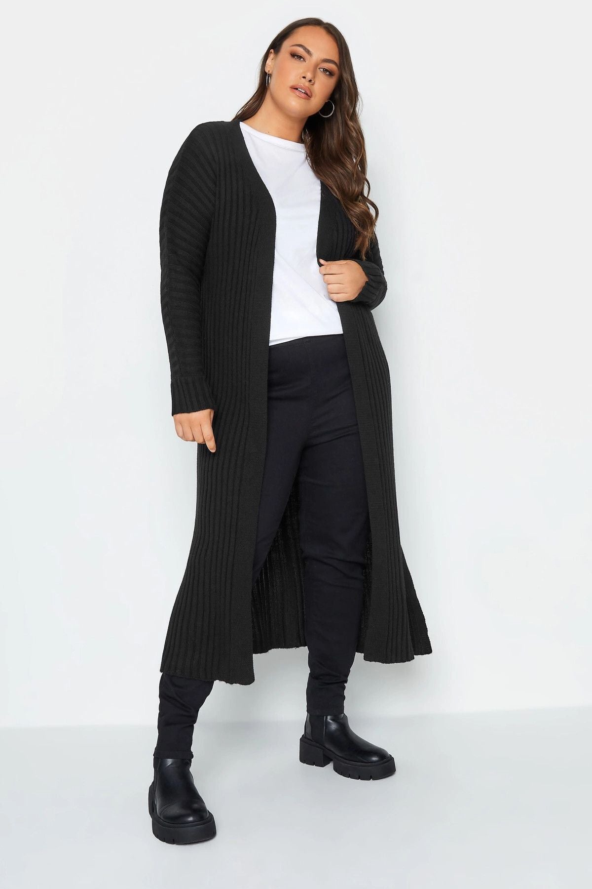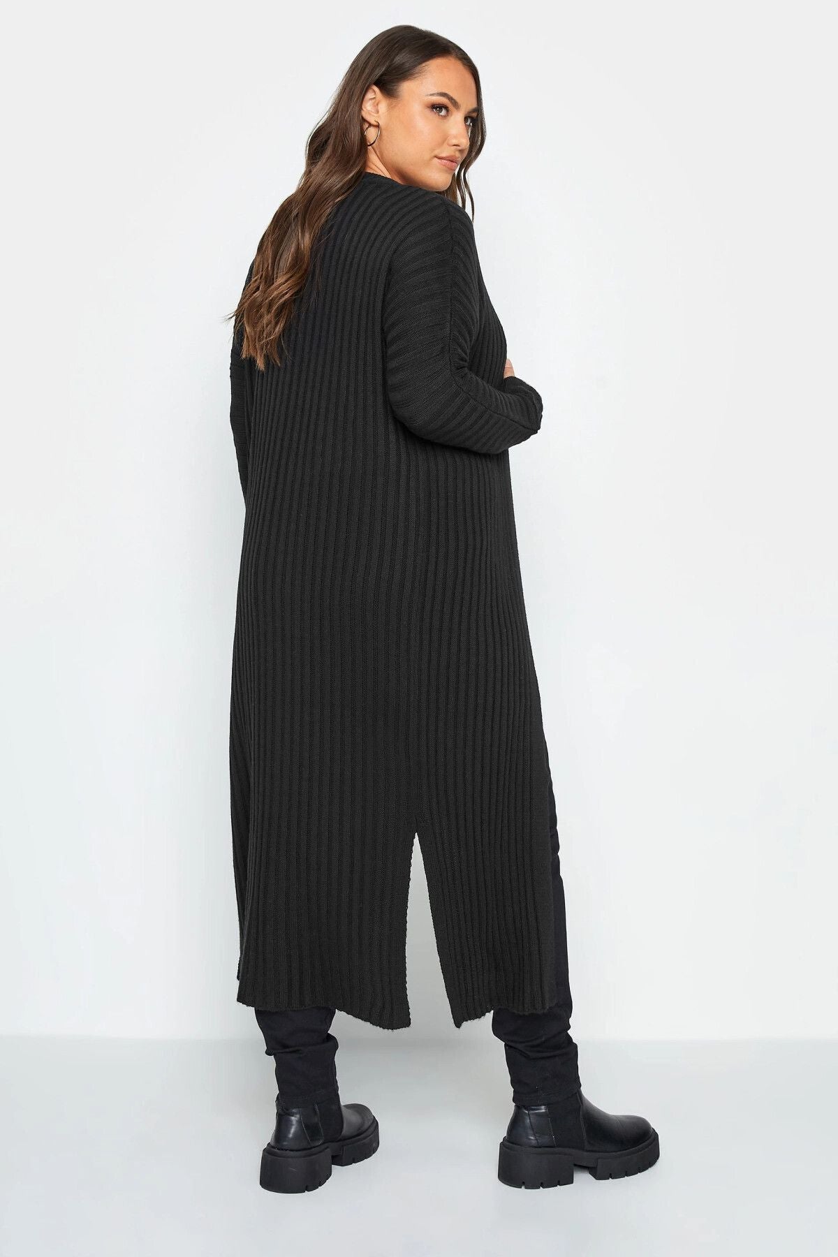 Büyük Beden Uzun Kollu Yırtmaç Detaylı Uzun Triko Hırka 301878