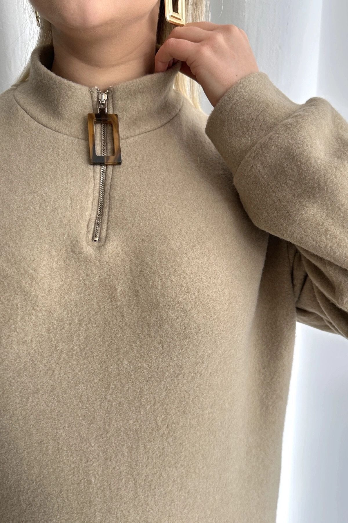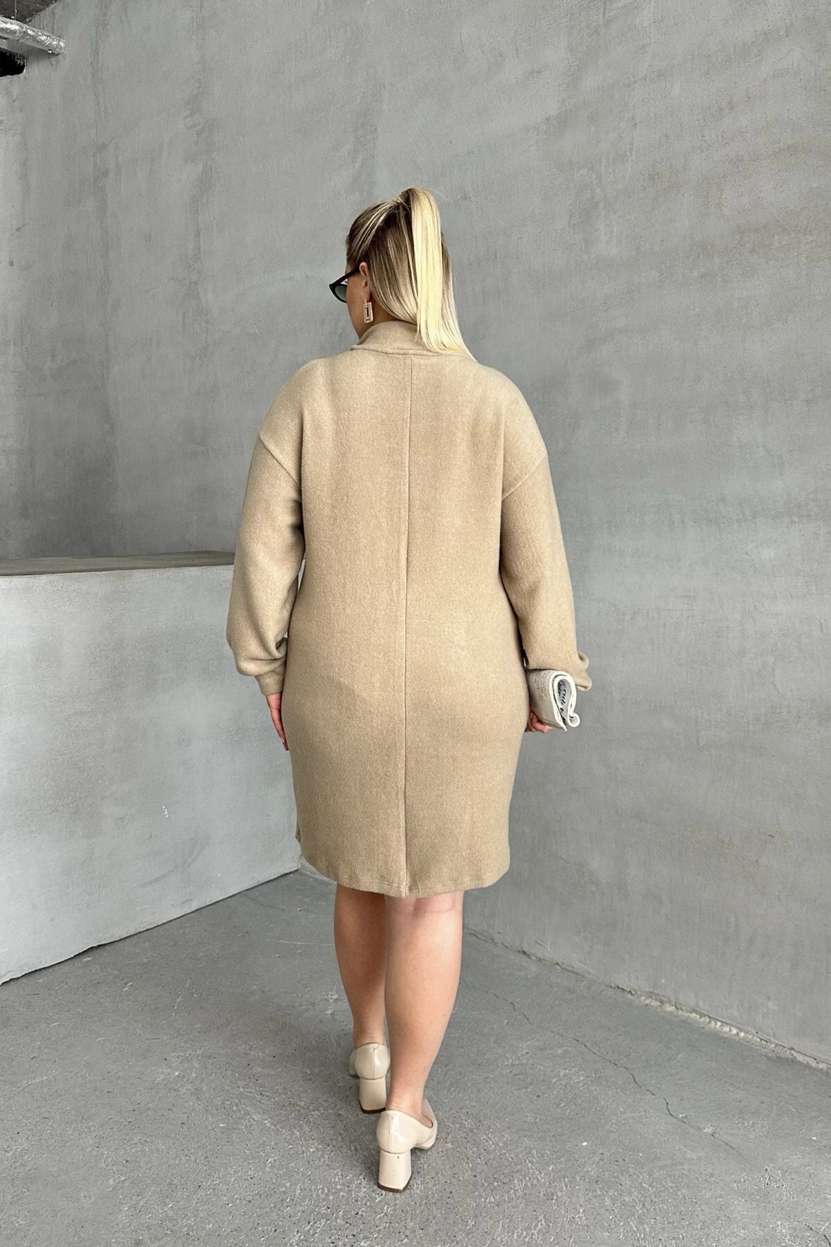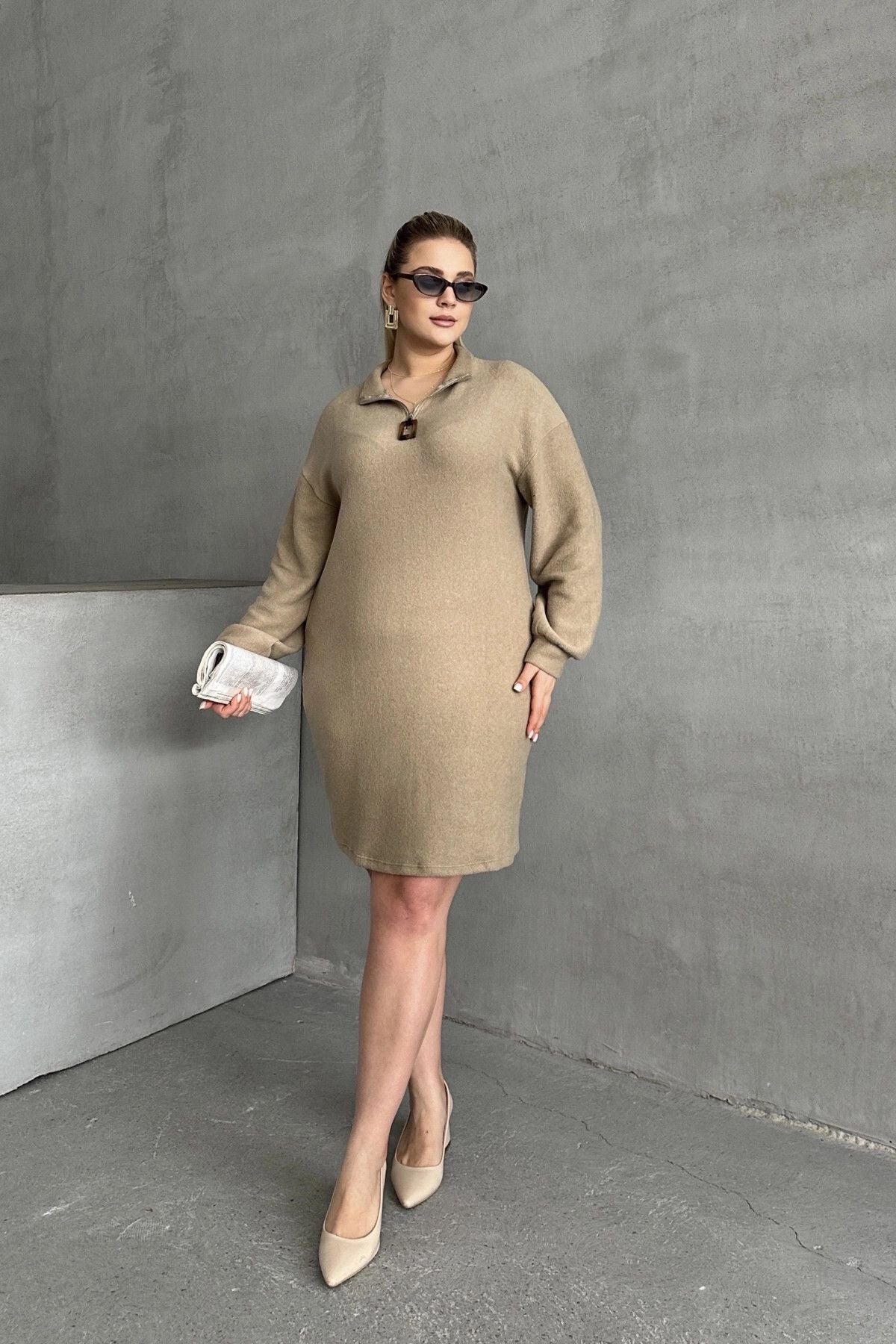 Büyük Beden Uzun Kollu Yumuşak Dokulu Yakası Fermuarlı Triko Elbise 106-37