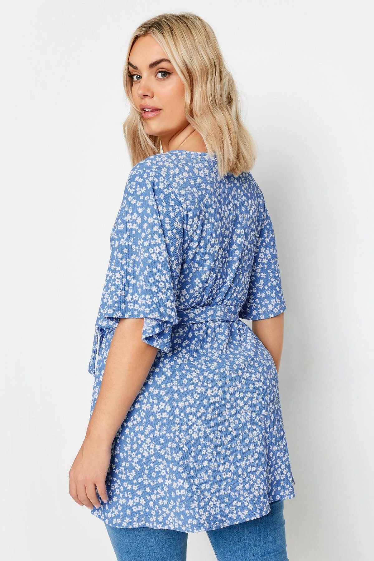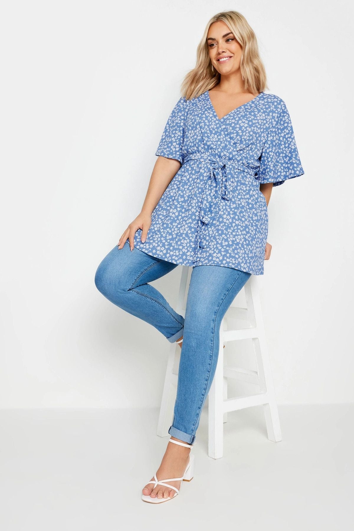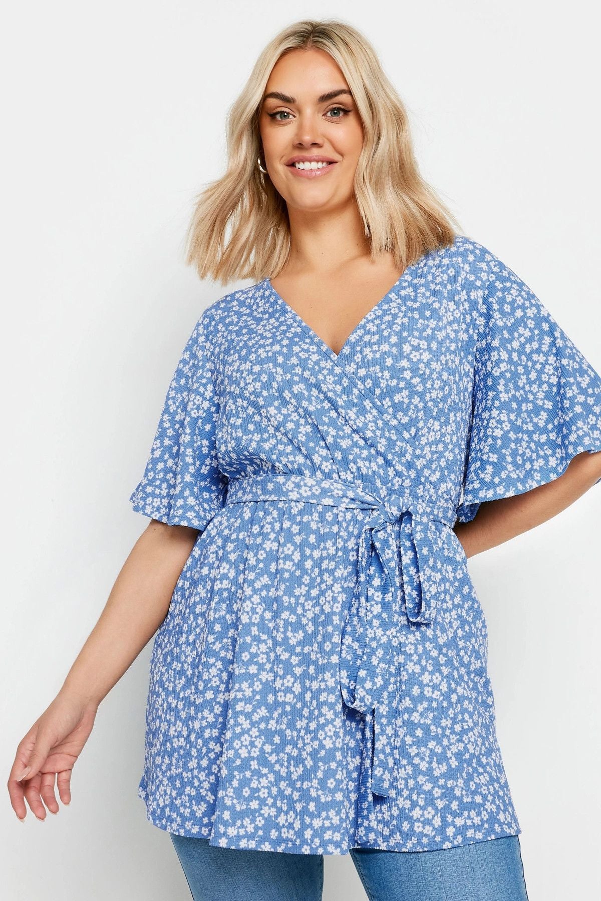 Büyük Beden V Yaka Bağlama Detaylı Desenli Kruvaze Bluz 321709