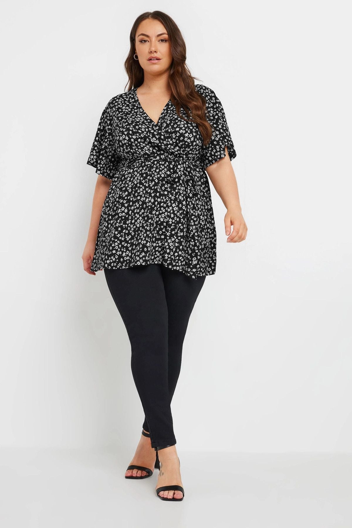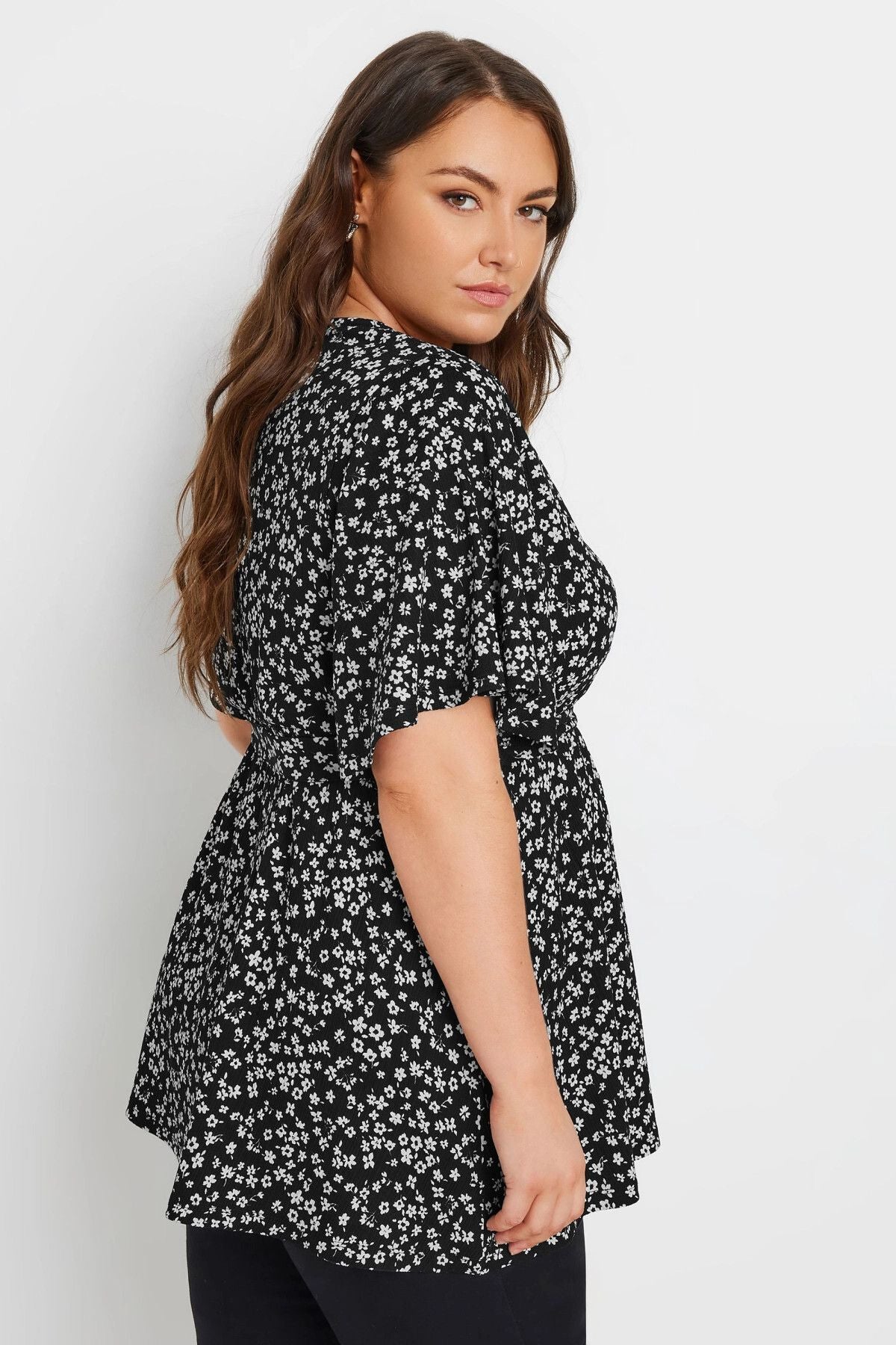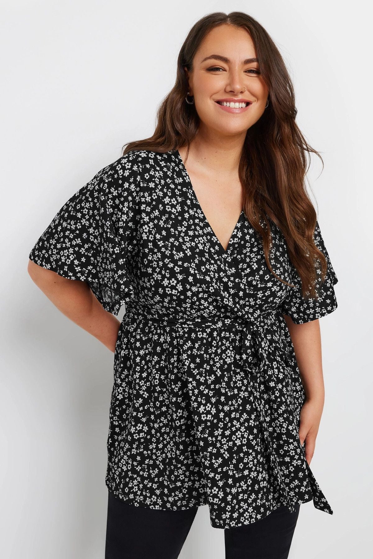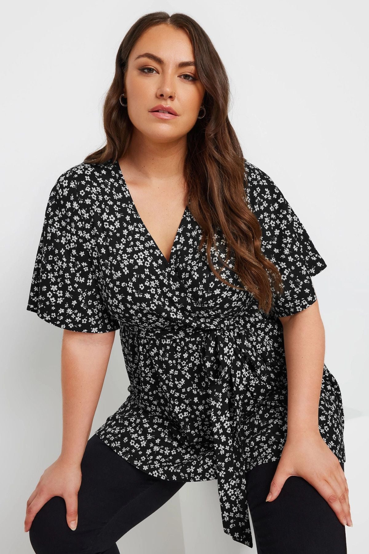 Büyük Beden V Yaka Bağlama Detaylı Desenli Kruvaze Bluz 321936