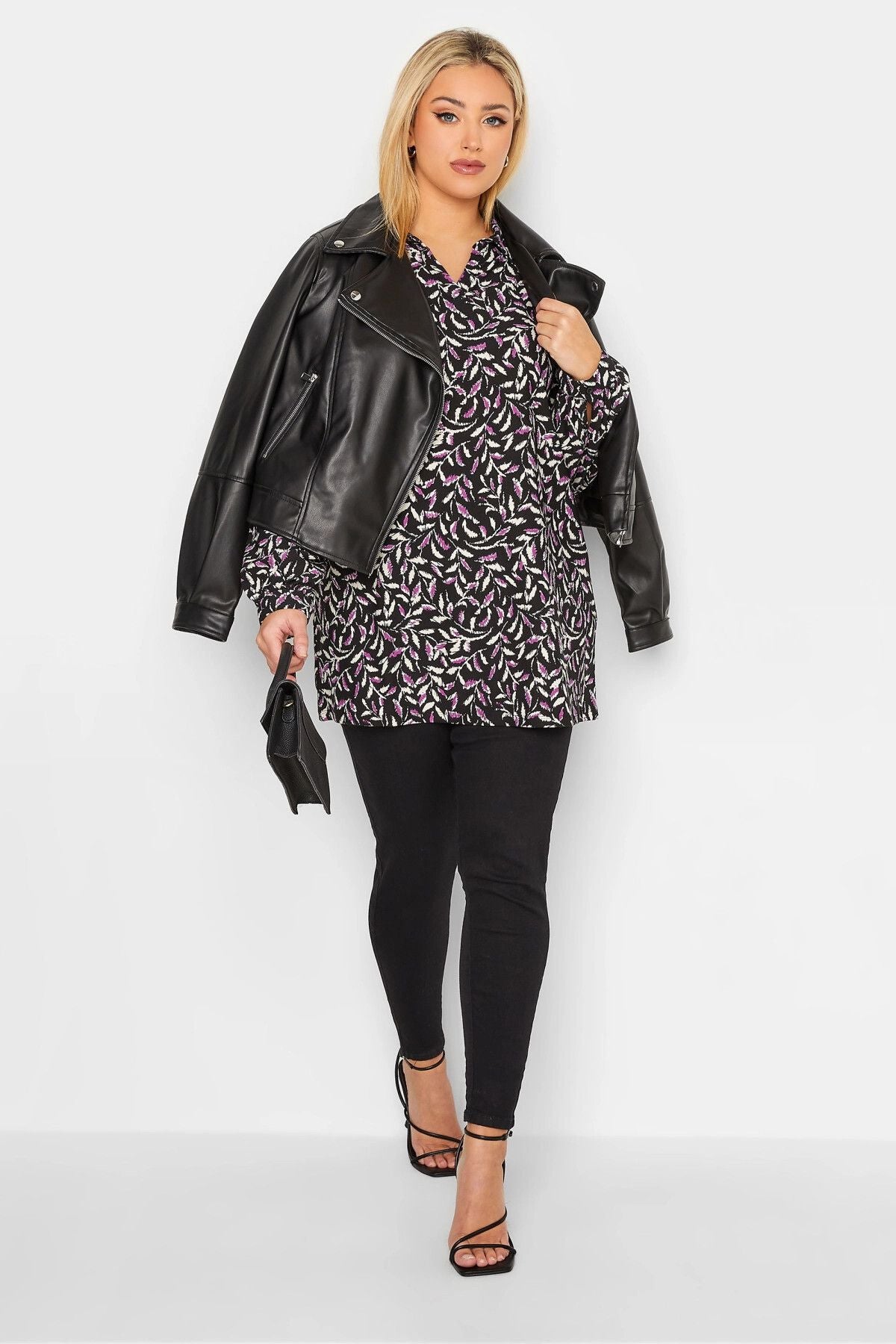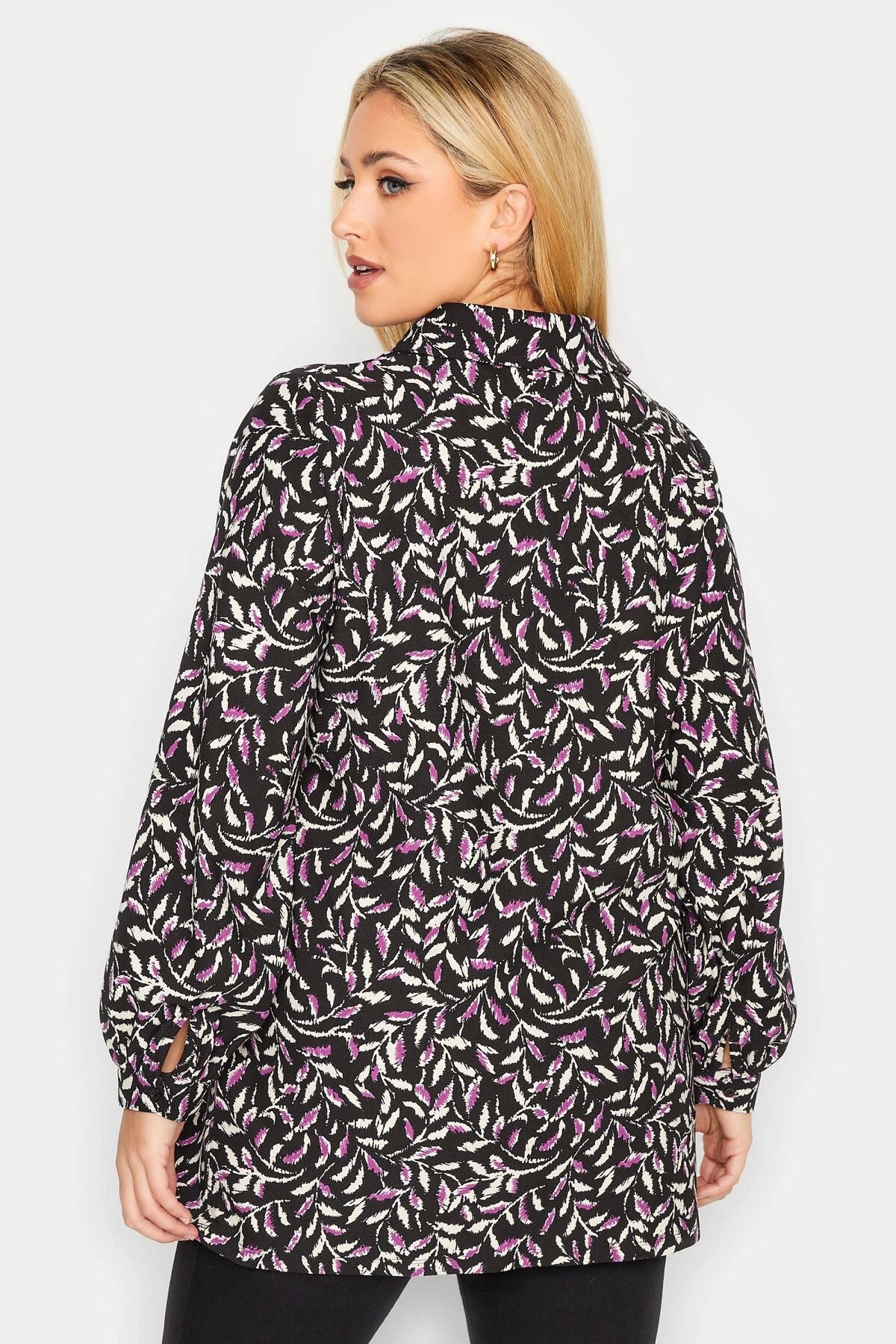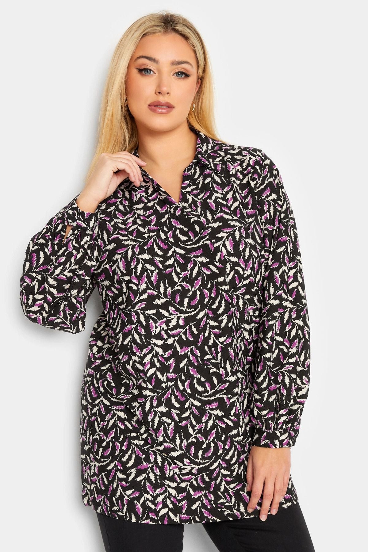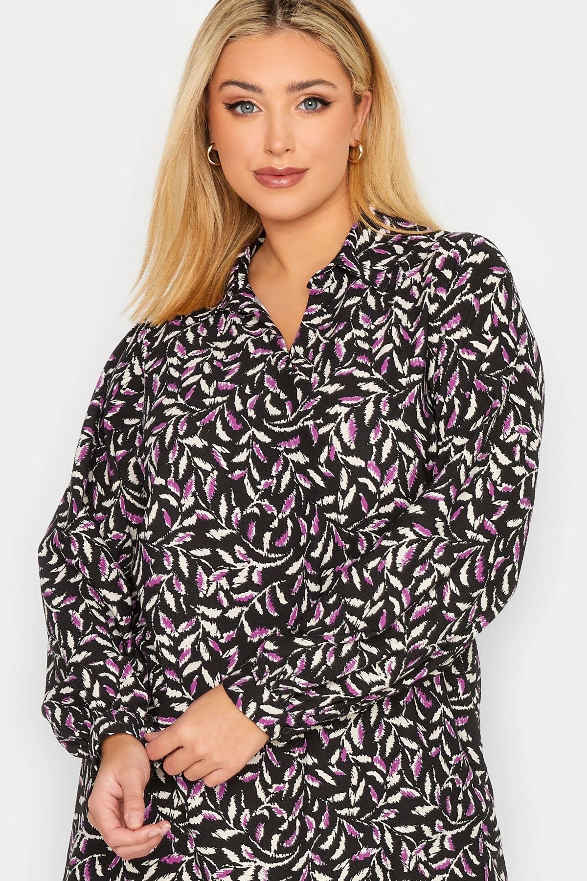 Büyük Beden V Yaka Balon Kol Desenli Bluz 301595