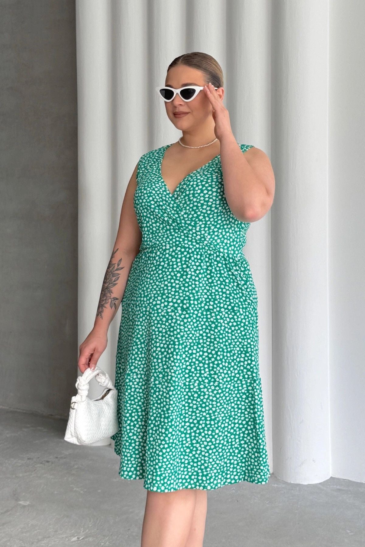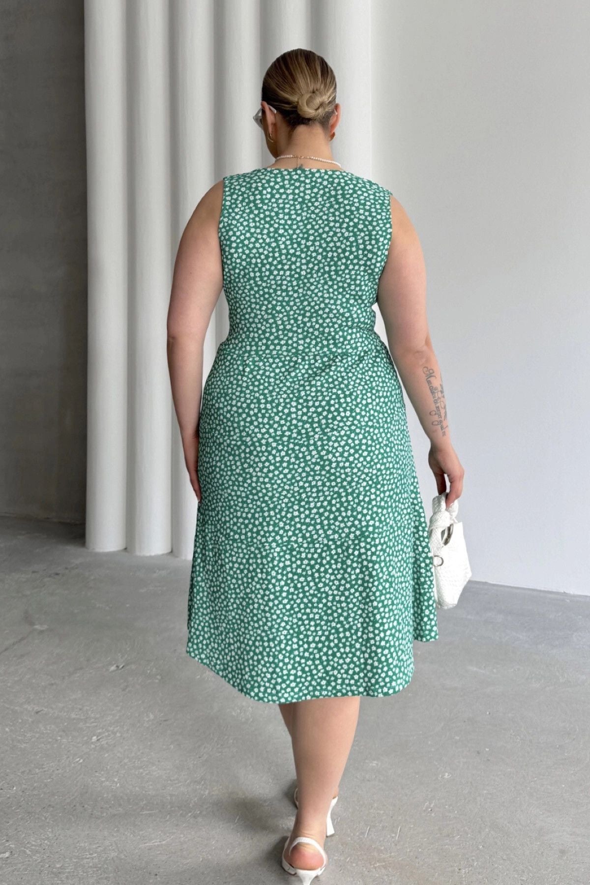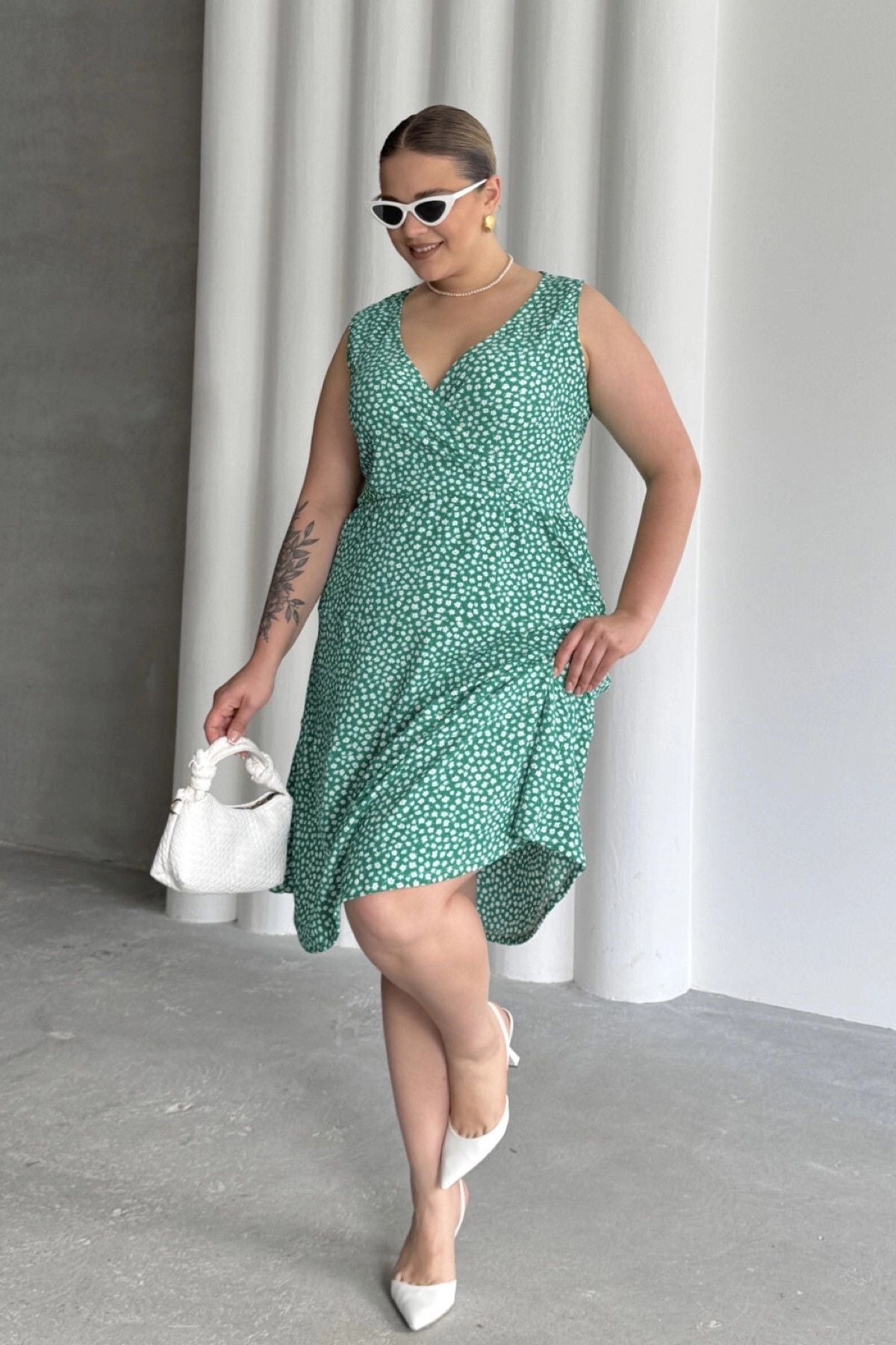 Büyük Beden V Yaka Beli Lastikli Çiçek Desenli Elbise 300916