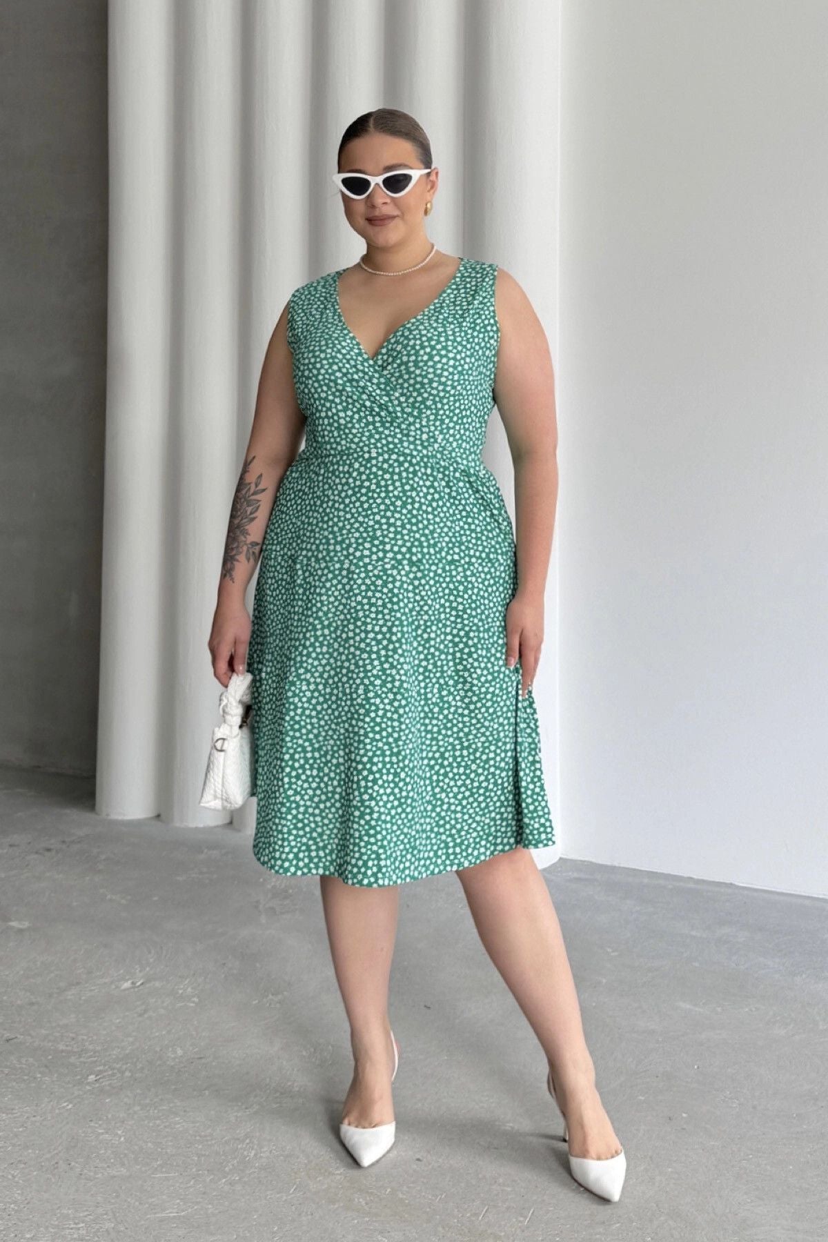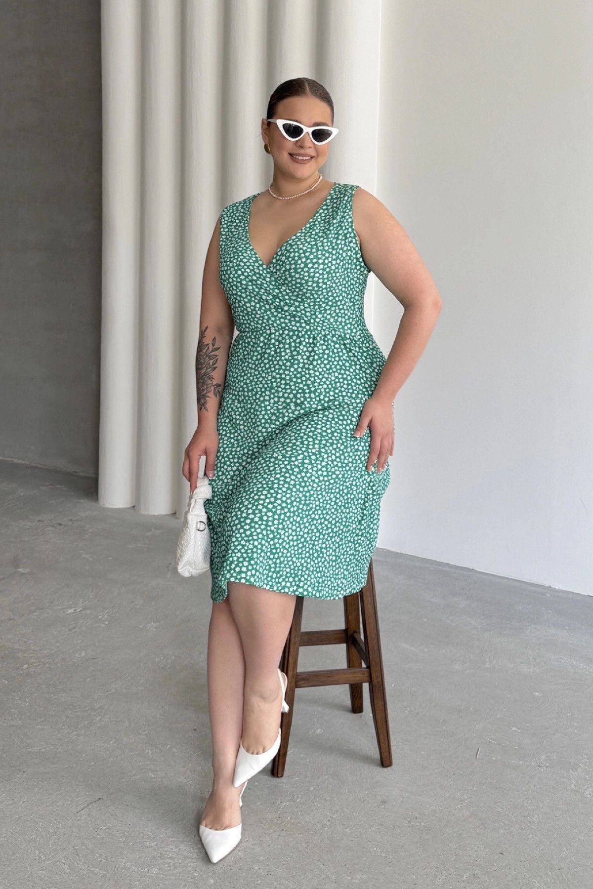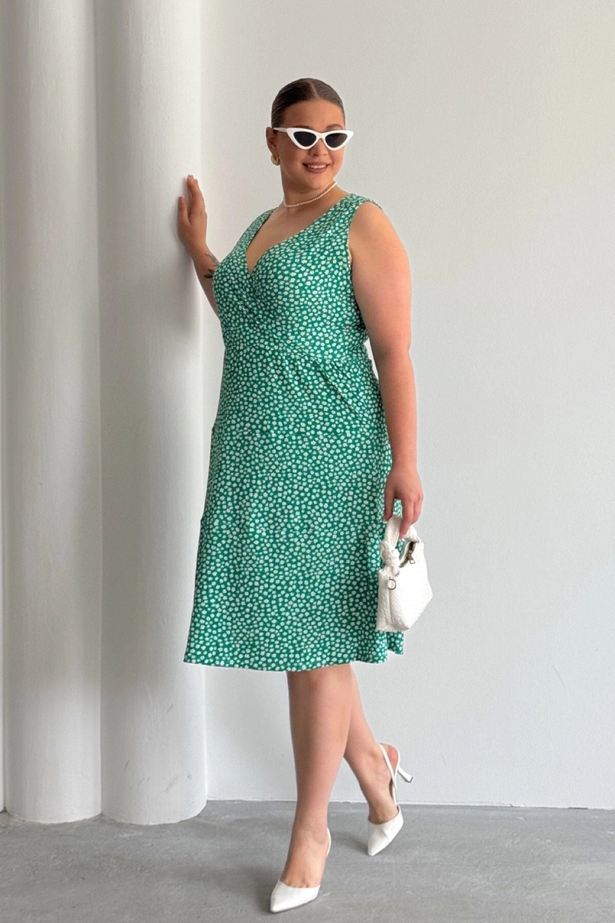 Büyük Beden V Yaka Beli Lastikli Çiçek Desenli Elbise 300916