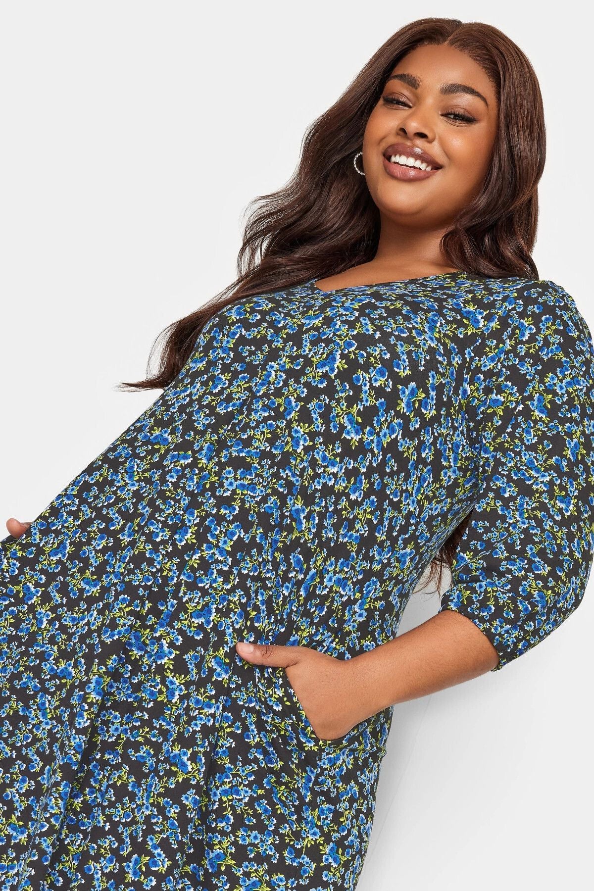 Büyük Beden V Yaka Cepli Zebra Desenli Fakir Kol Midi Boy Elbise 137594