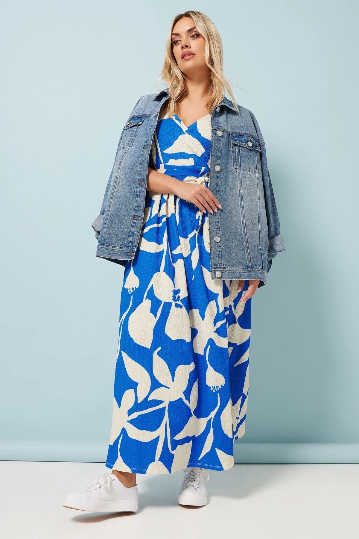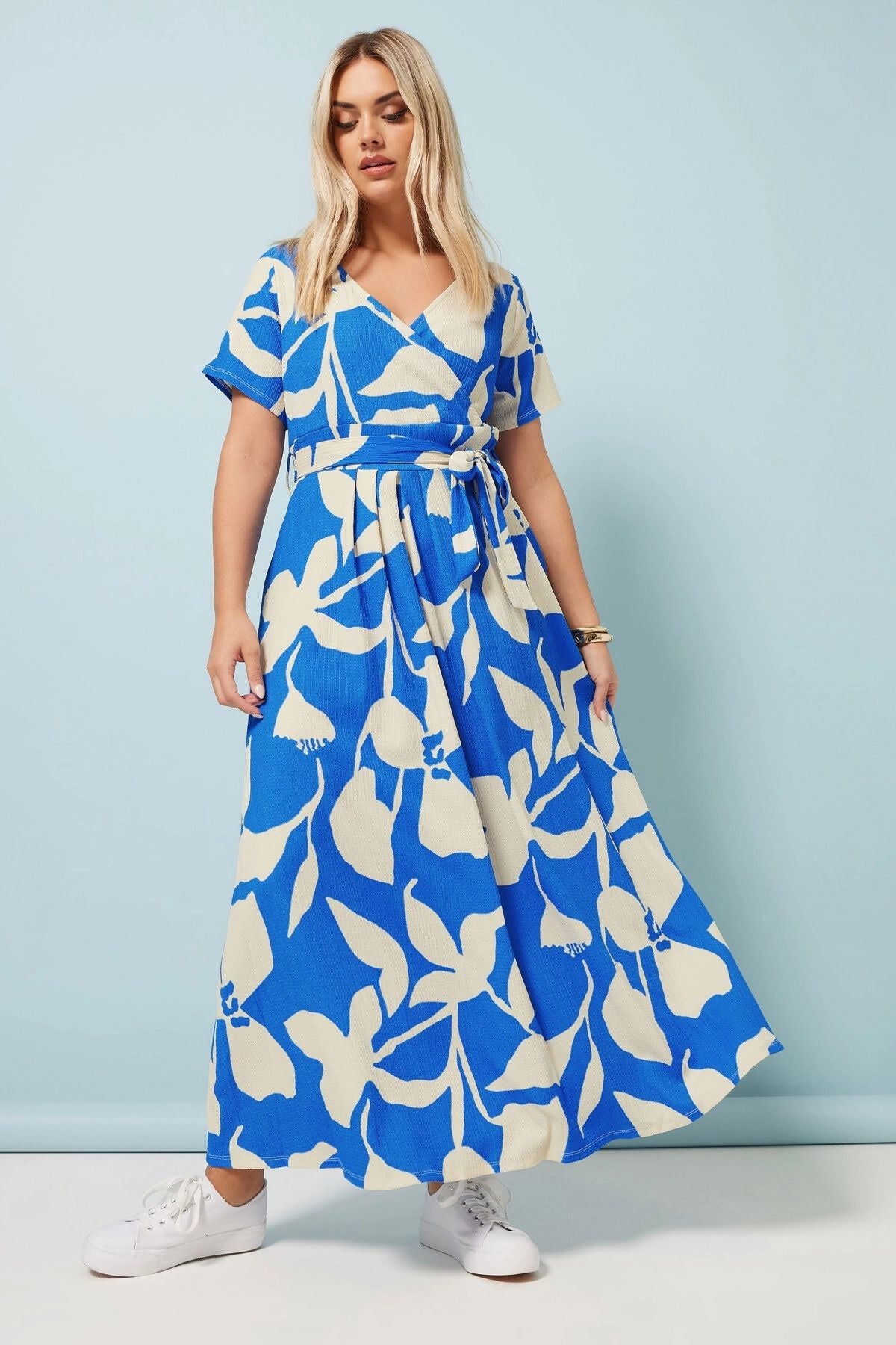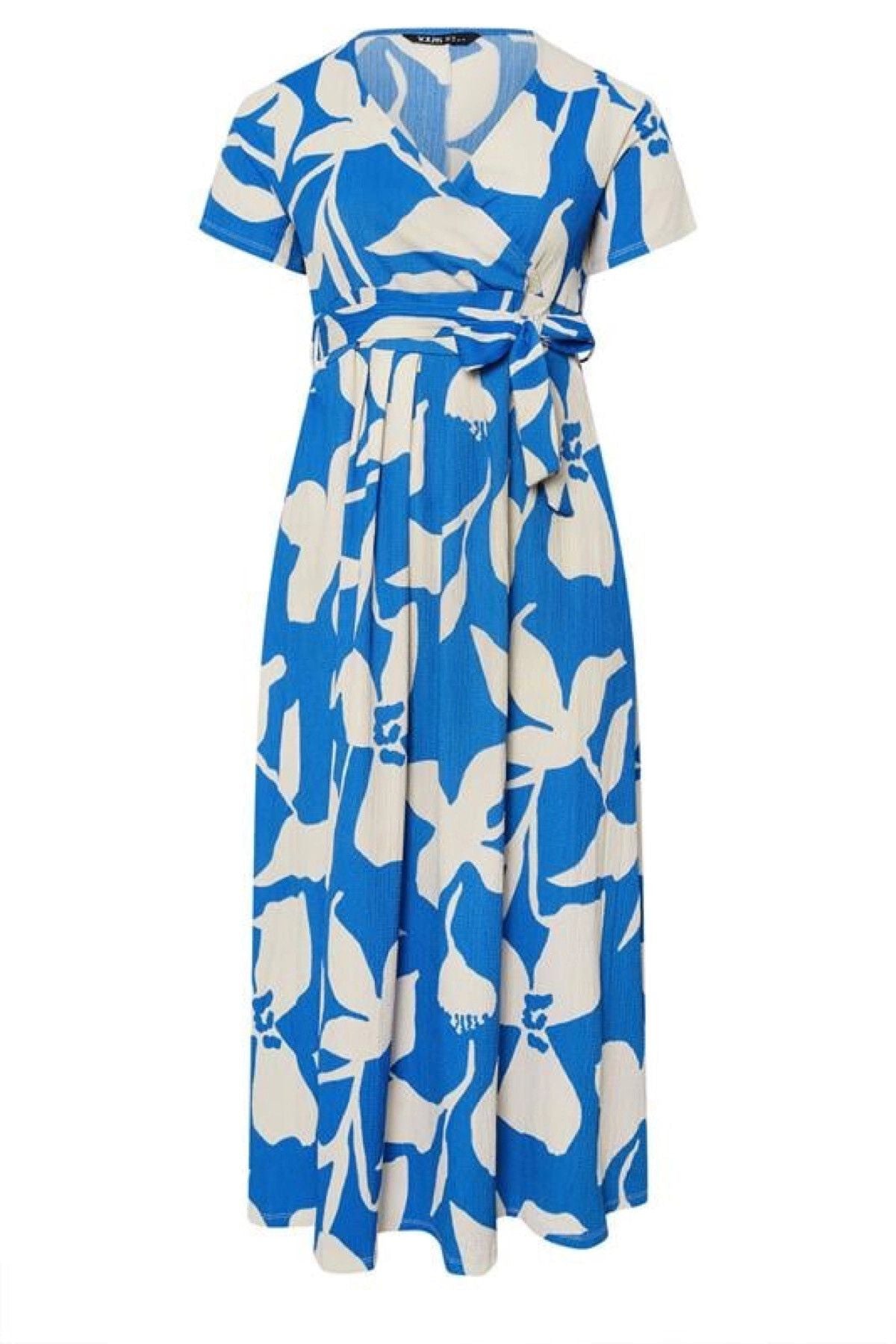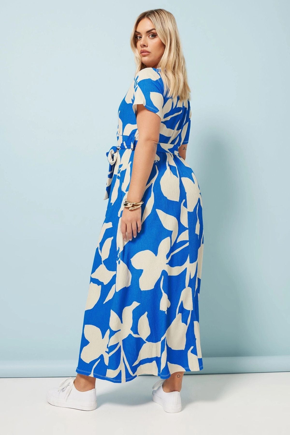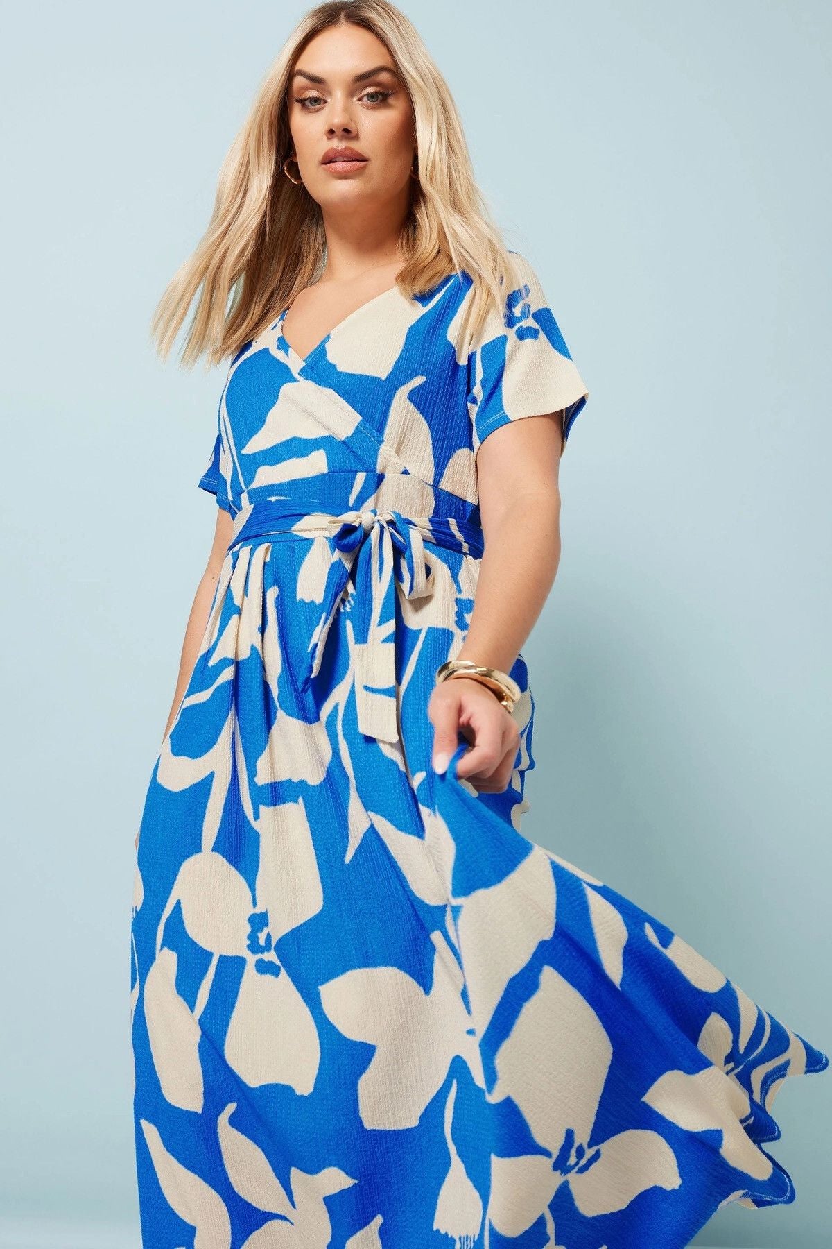 Büyük Beden V Yaka Çiçek Desenli Bürümcük Kumaş Elbise 304072