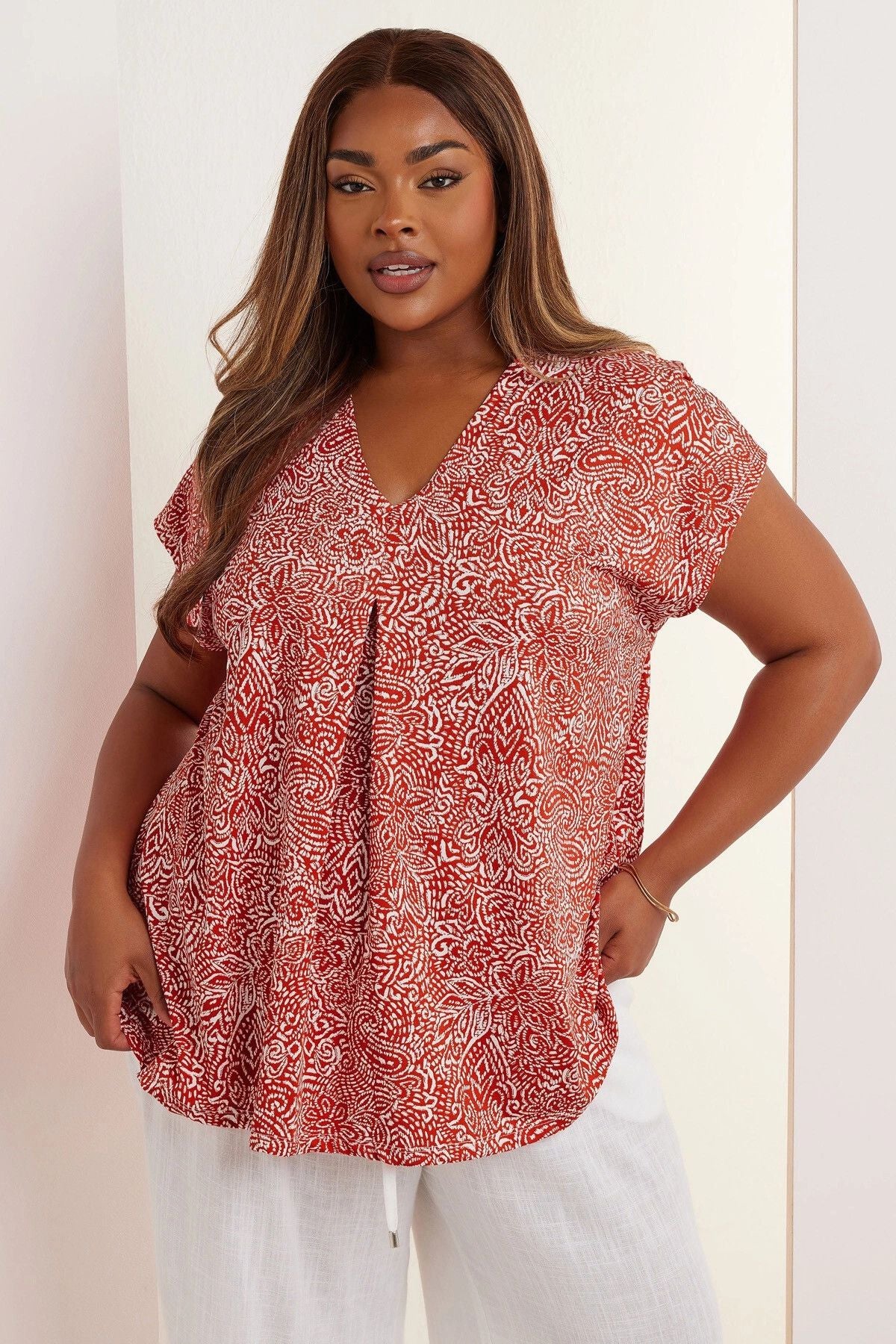 Büyük Beden V Yaka Çiçek Desenli Kısa Kollu T-shirt 322657