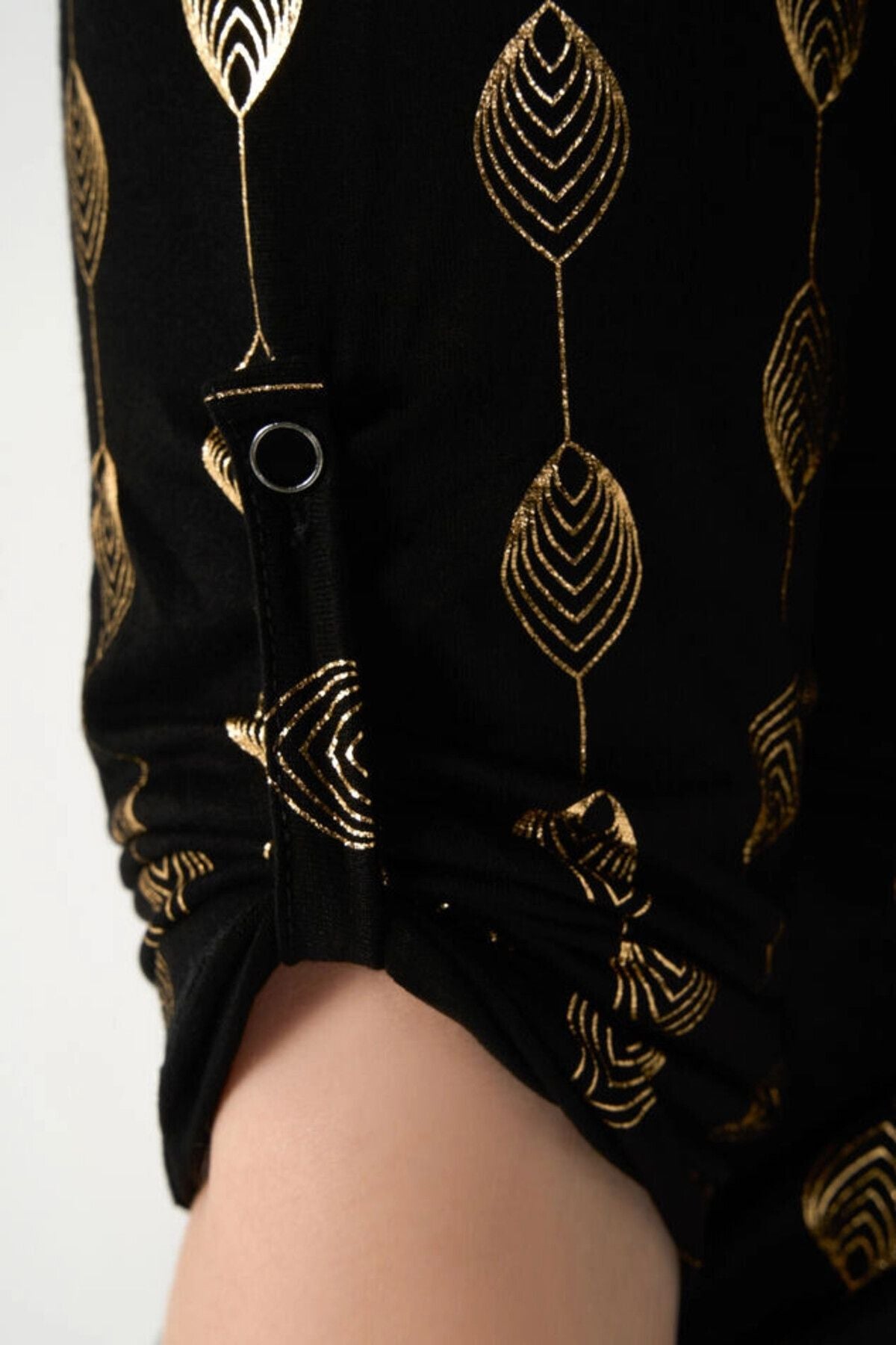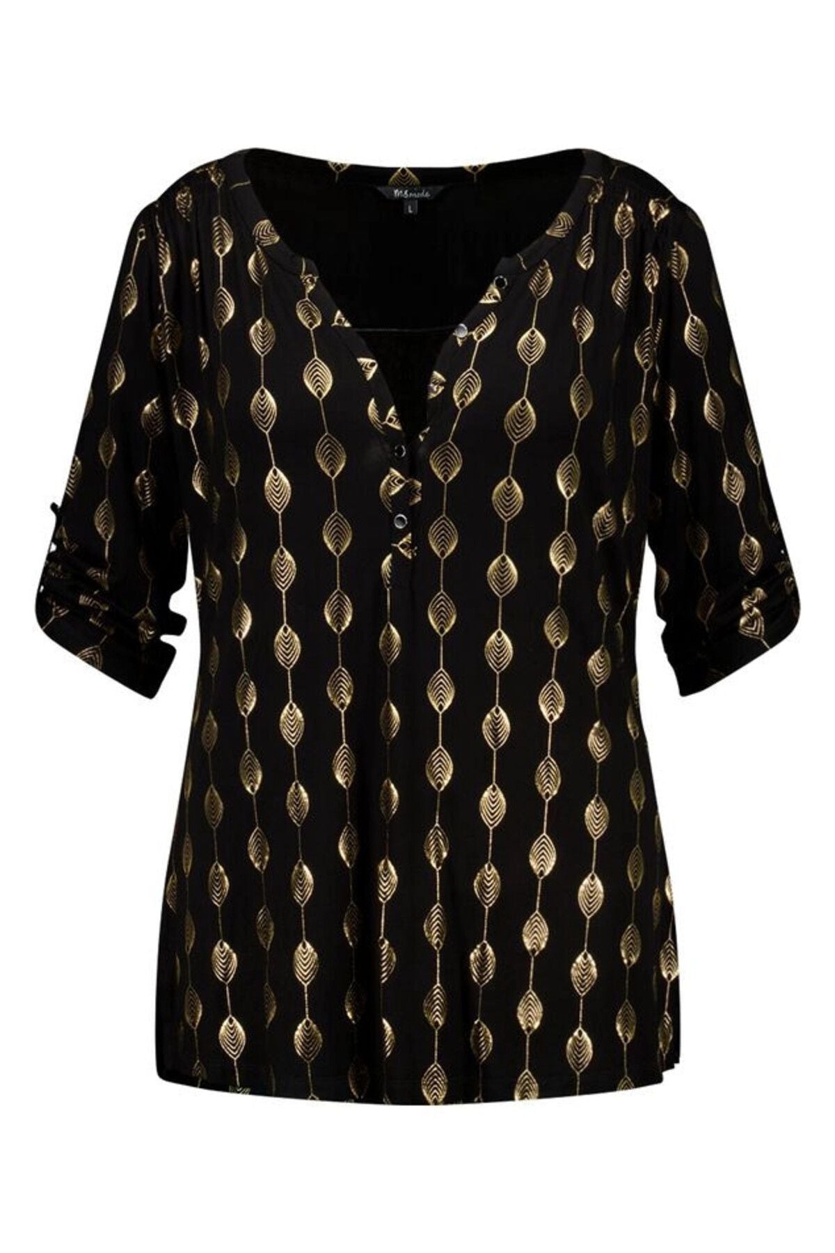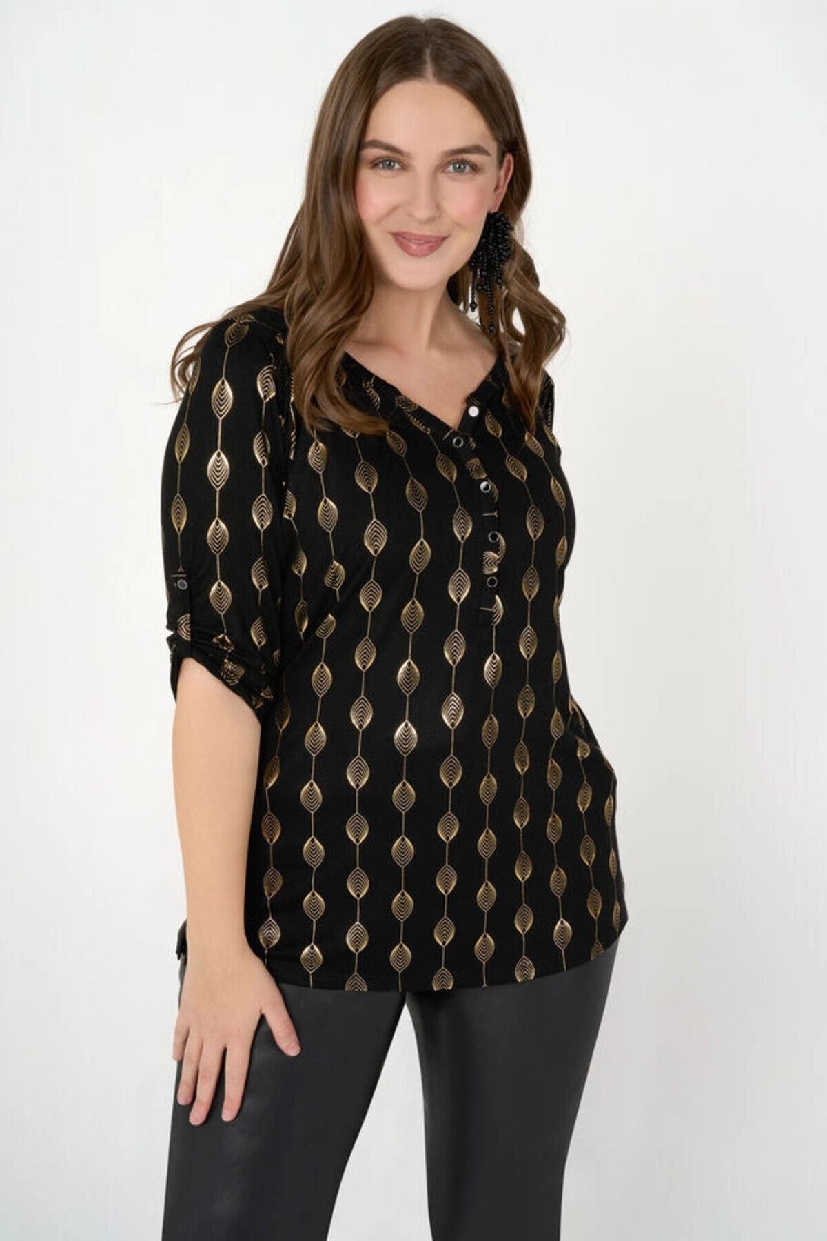 Büyük Beden V Yaka Çıtçıt Düğmeli Fakir Kol Uzun Kesim Bluz E15244