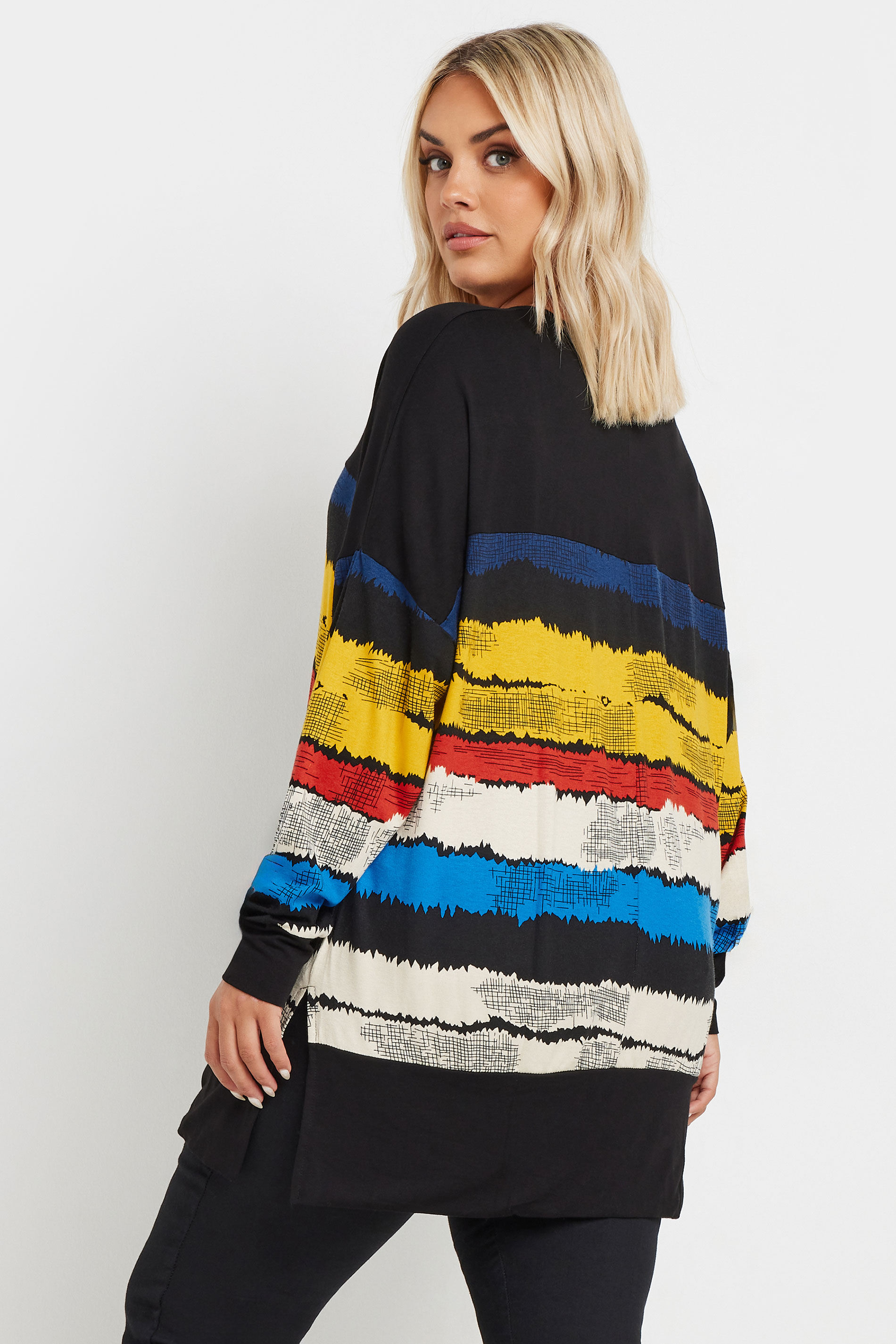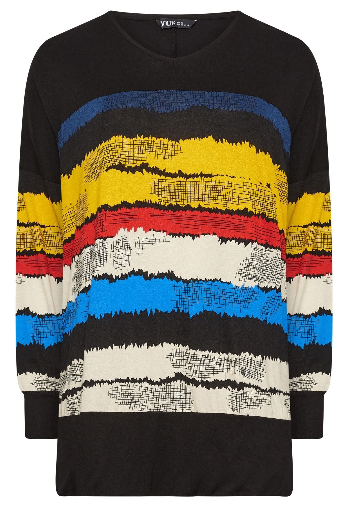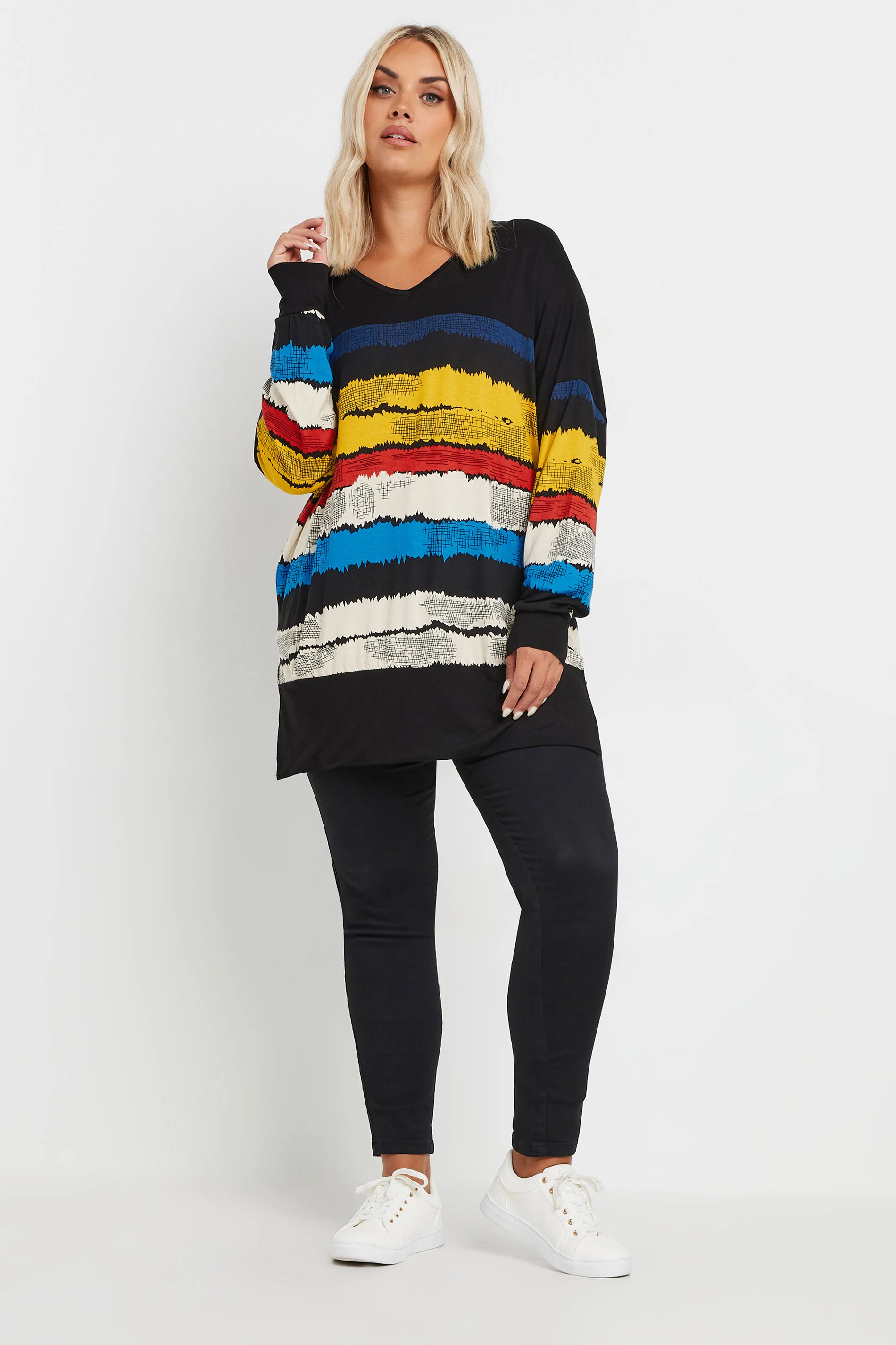 Büyük Beden V Yaka Çizgili Yanları Yırtmaçlı Uzun Kollu Bluz 302920