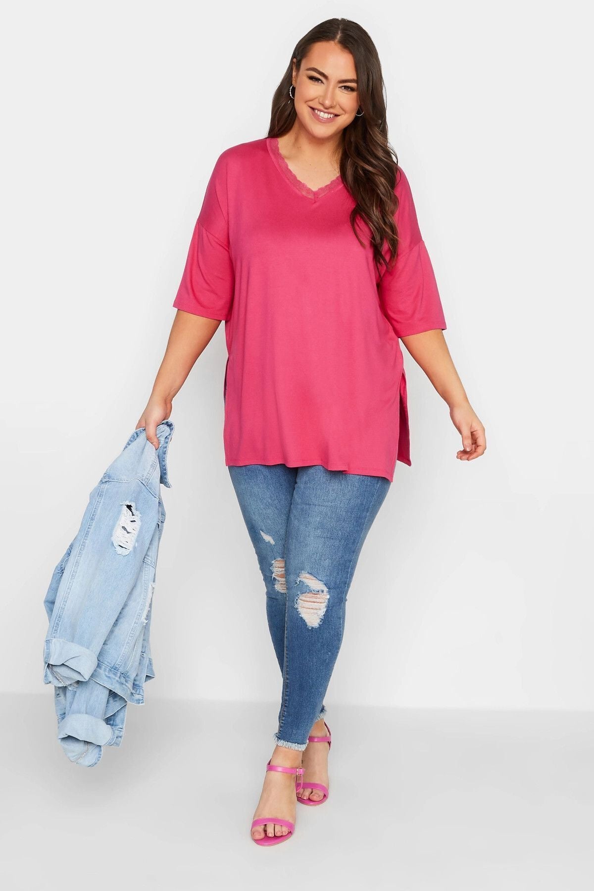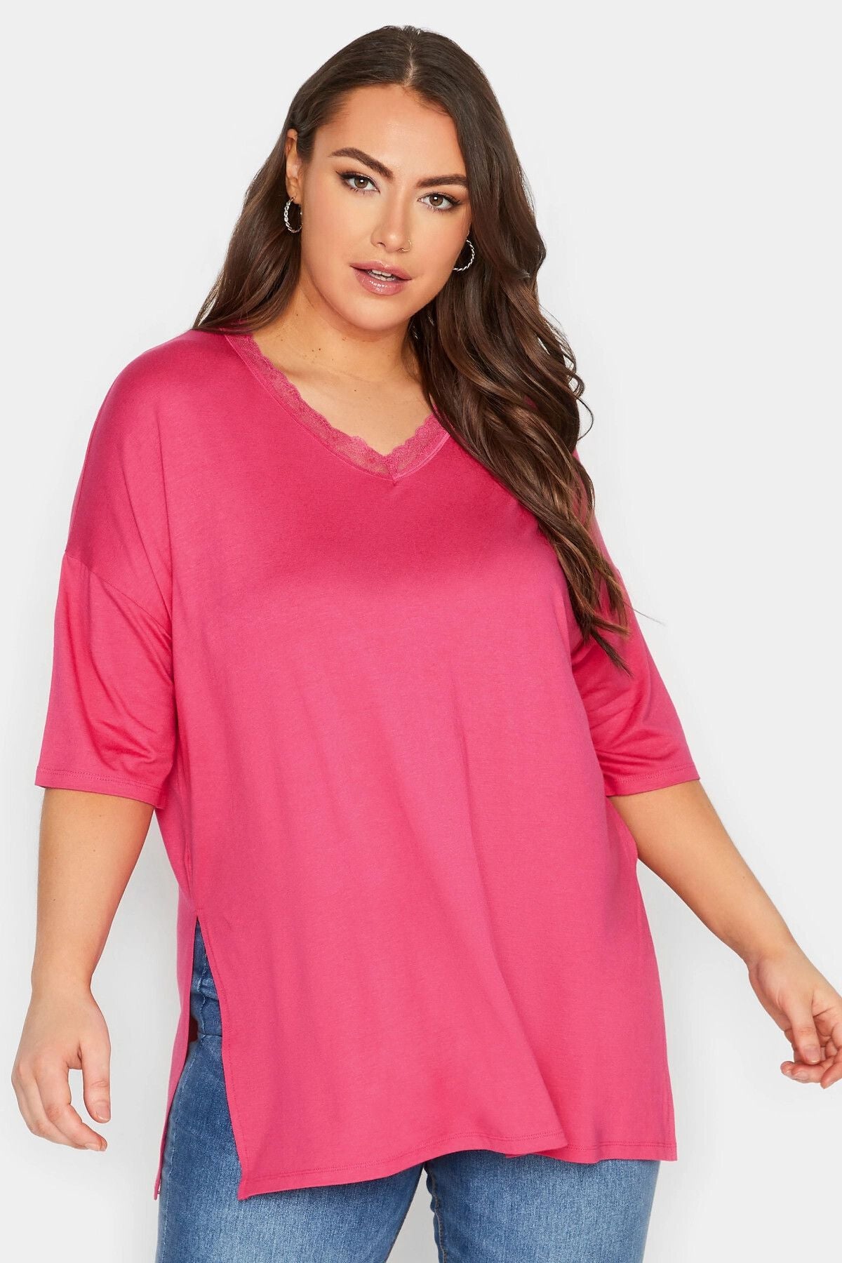Büyük Beden V Yaka Dantel Detaylı Yırtmaçlı Likralı Bluz 301858