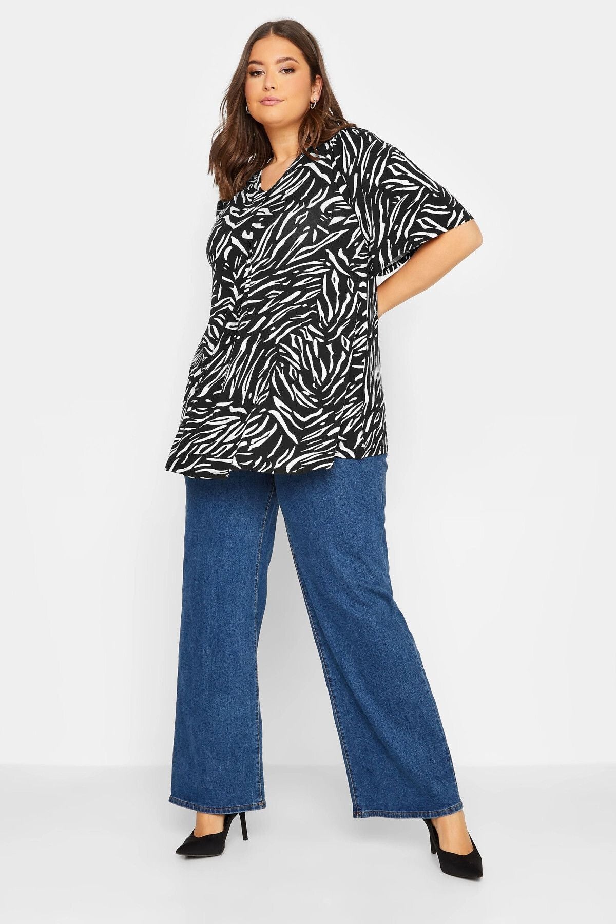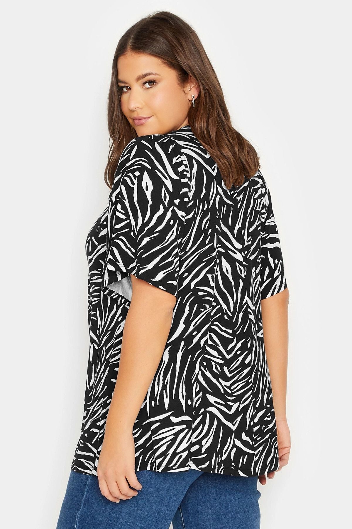 Büyük Beden V Yaka Desenli Asimetrik Kesim Kısa Kollu Likralı Bluz 301692