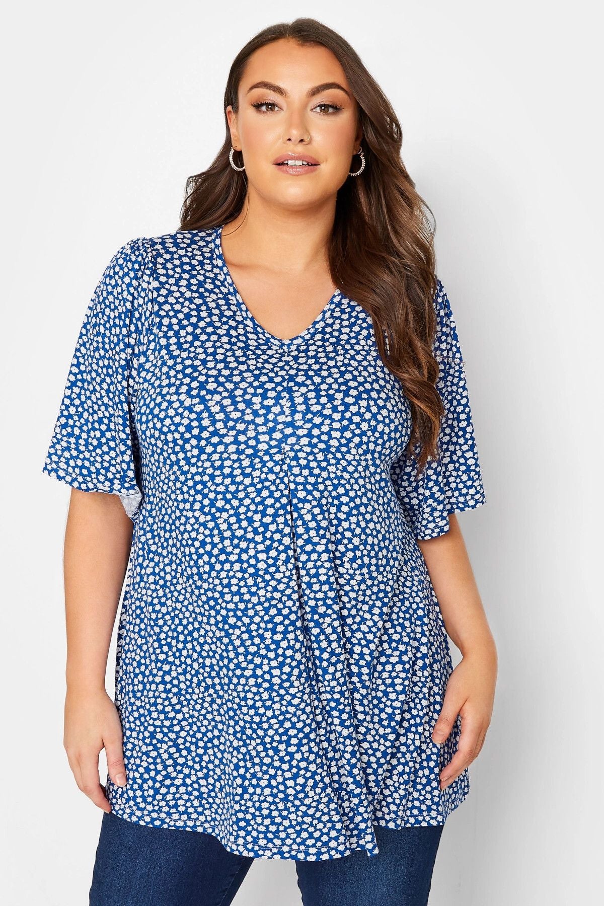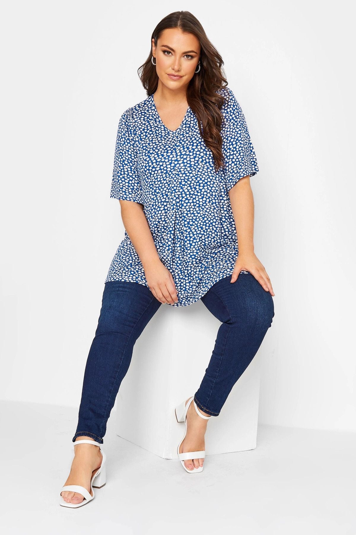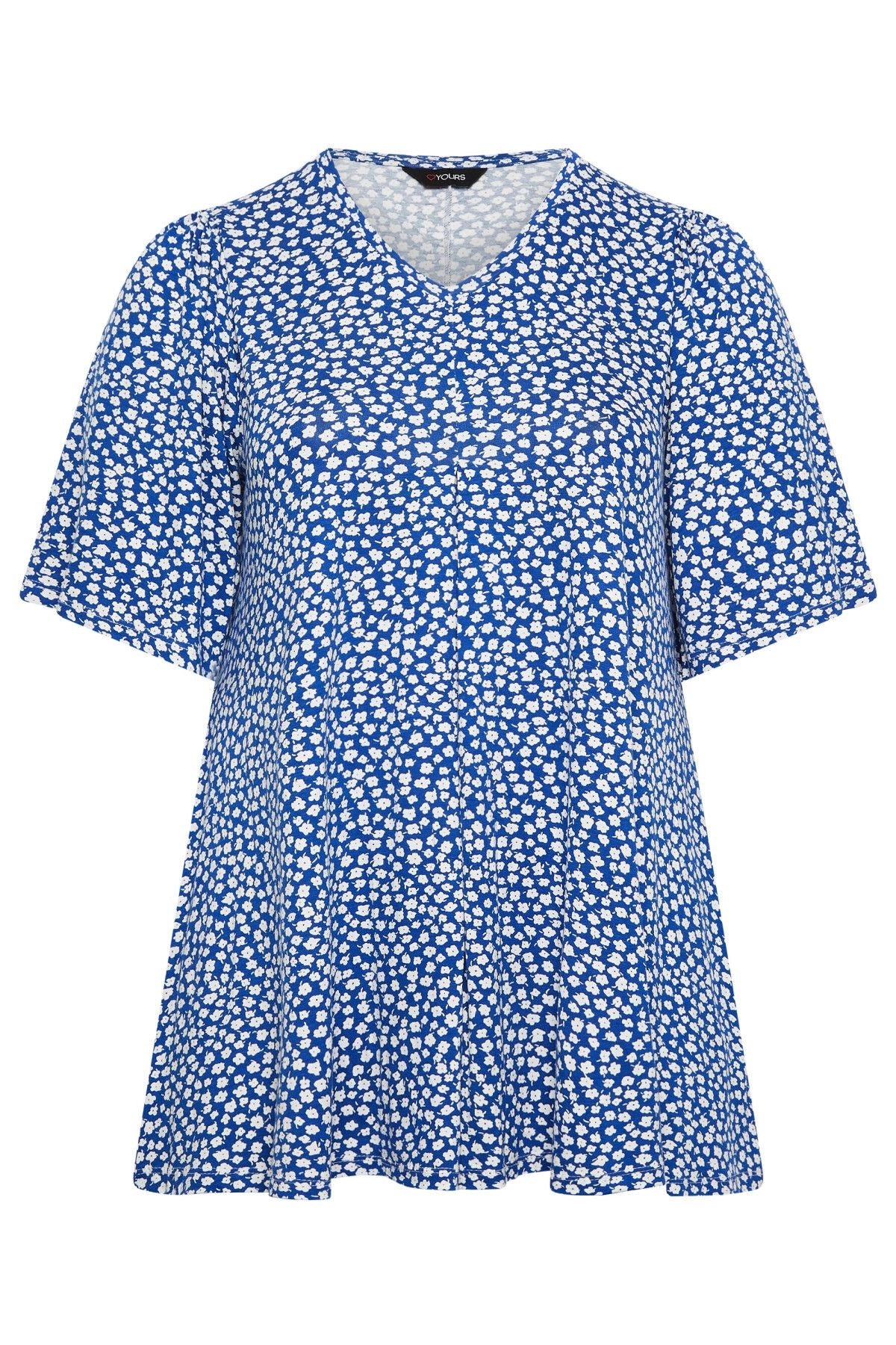 Büyük Beden V Yaka Desenli Asimetrik Kesim Likralı Bluz 301696