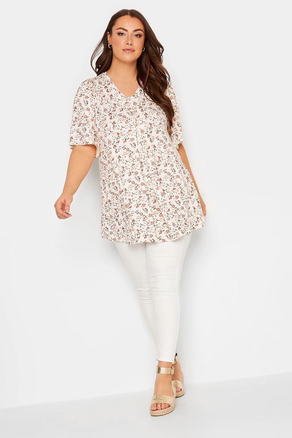 Büyük Beden V Yaka Desenli Asimetrik Kesim Likralı Bluz 302169