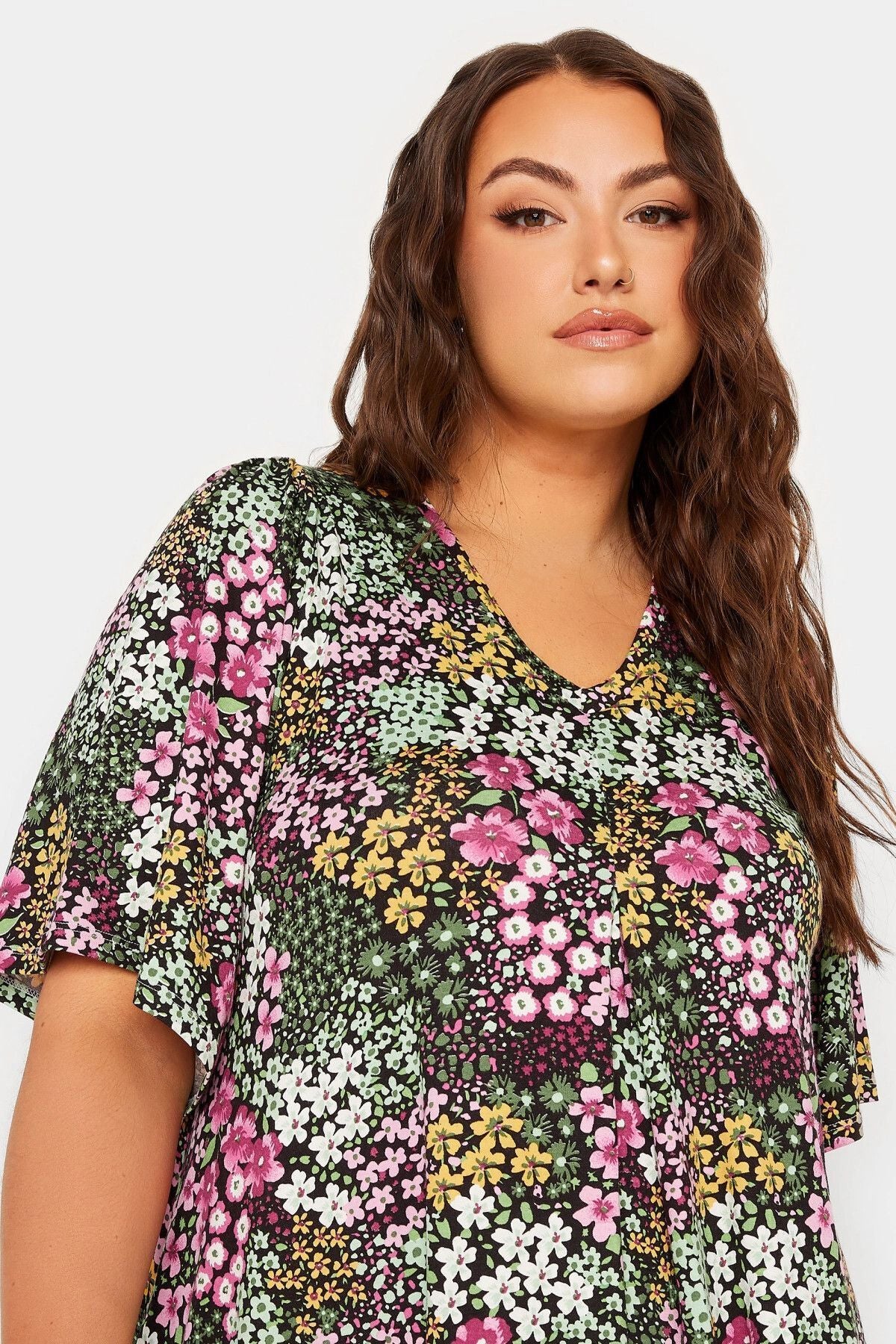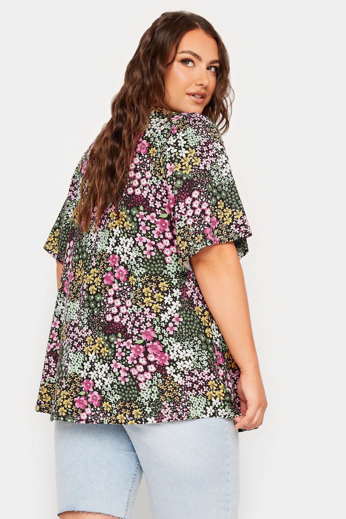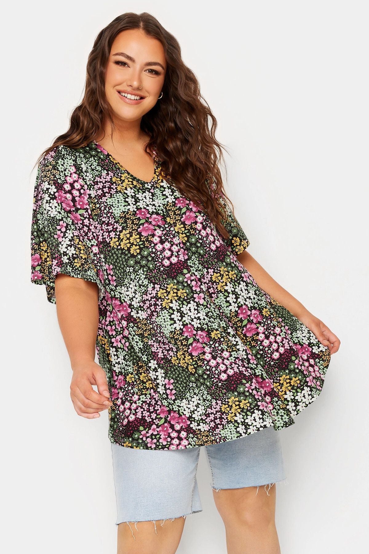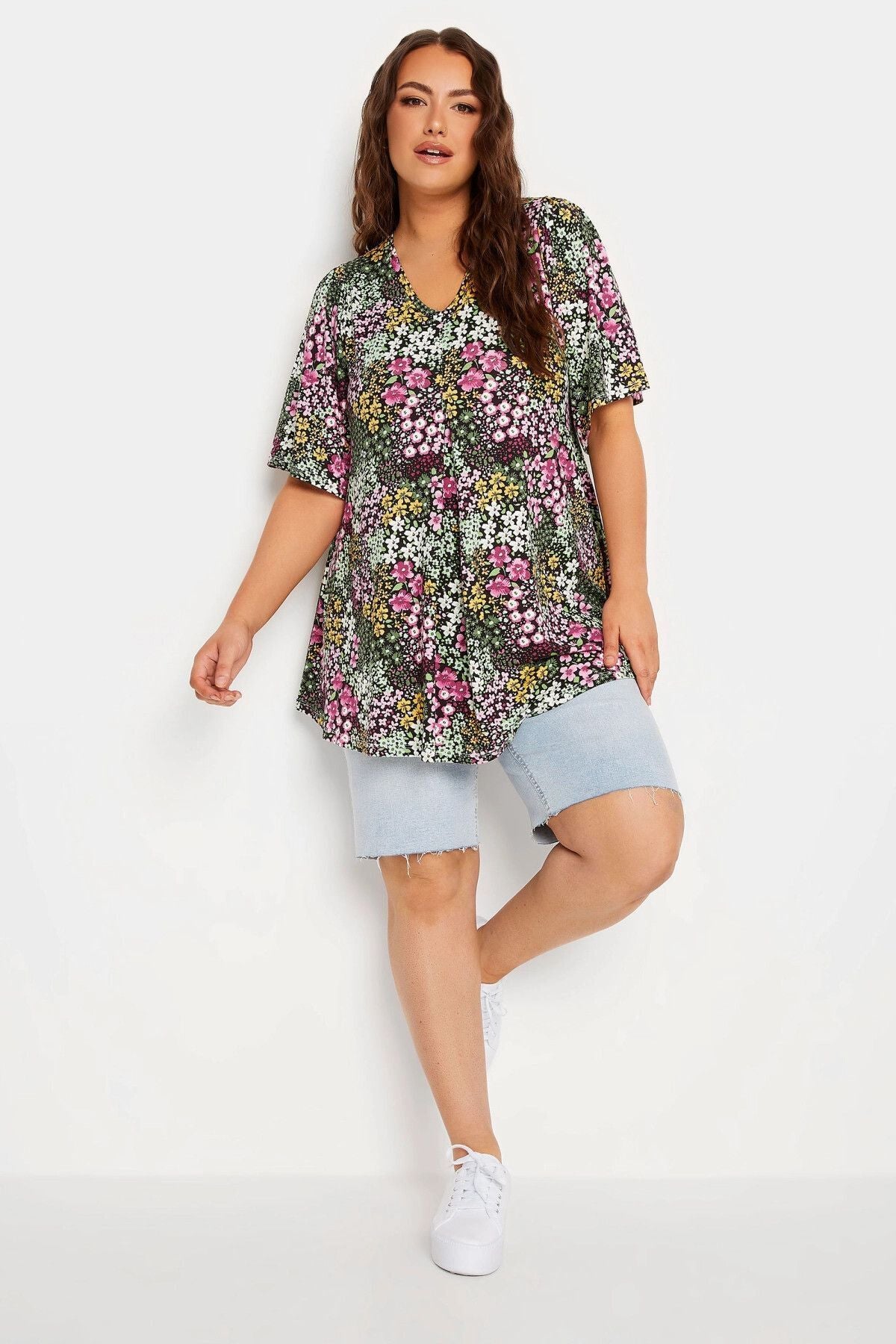 Büyük Beden V Yaka Desenli Asimetrik Kesim Likralı Bluz 302239