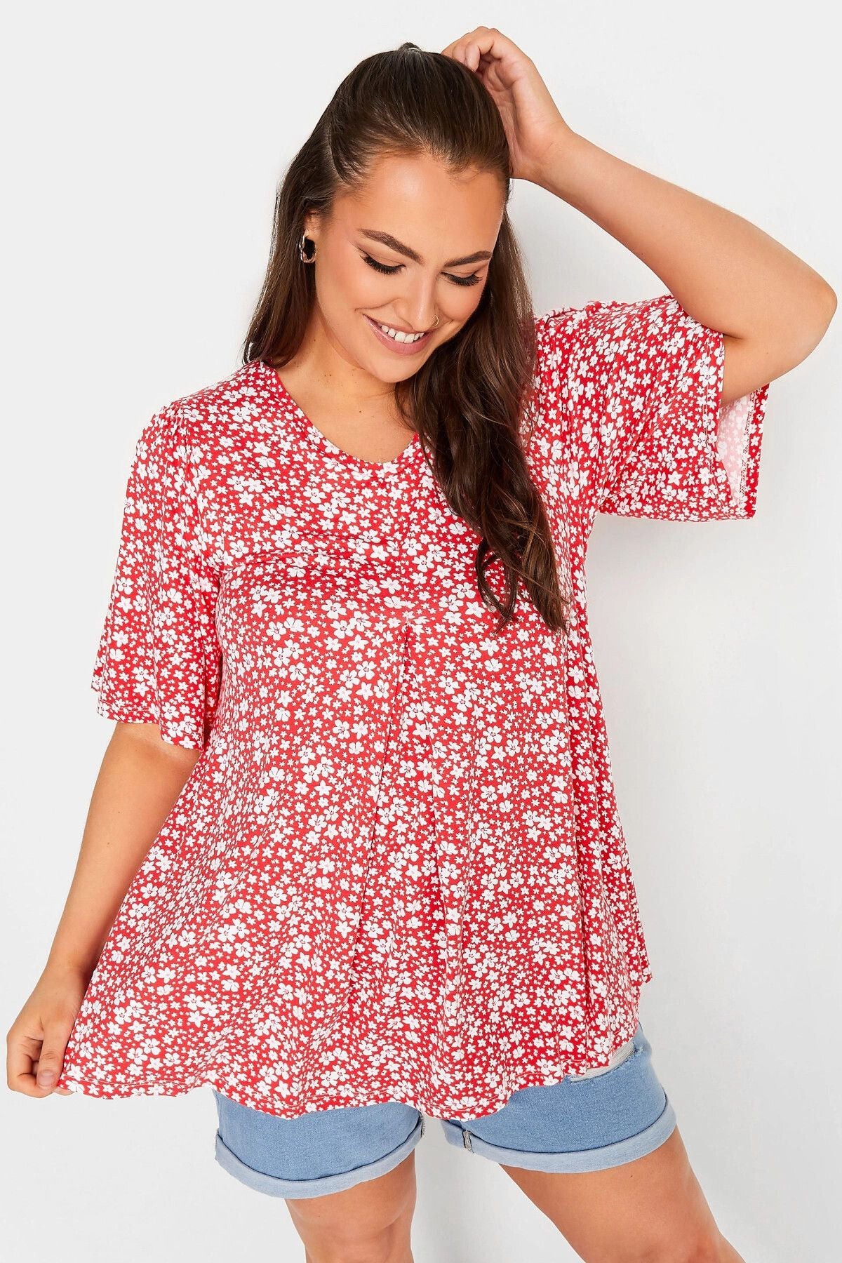 Büyük Beden V Yaka Desenli Asimetrik Kesim Likralı Bluz 302389