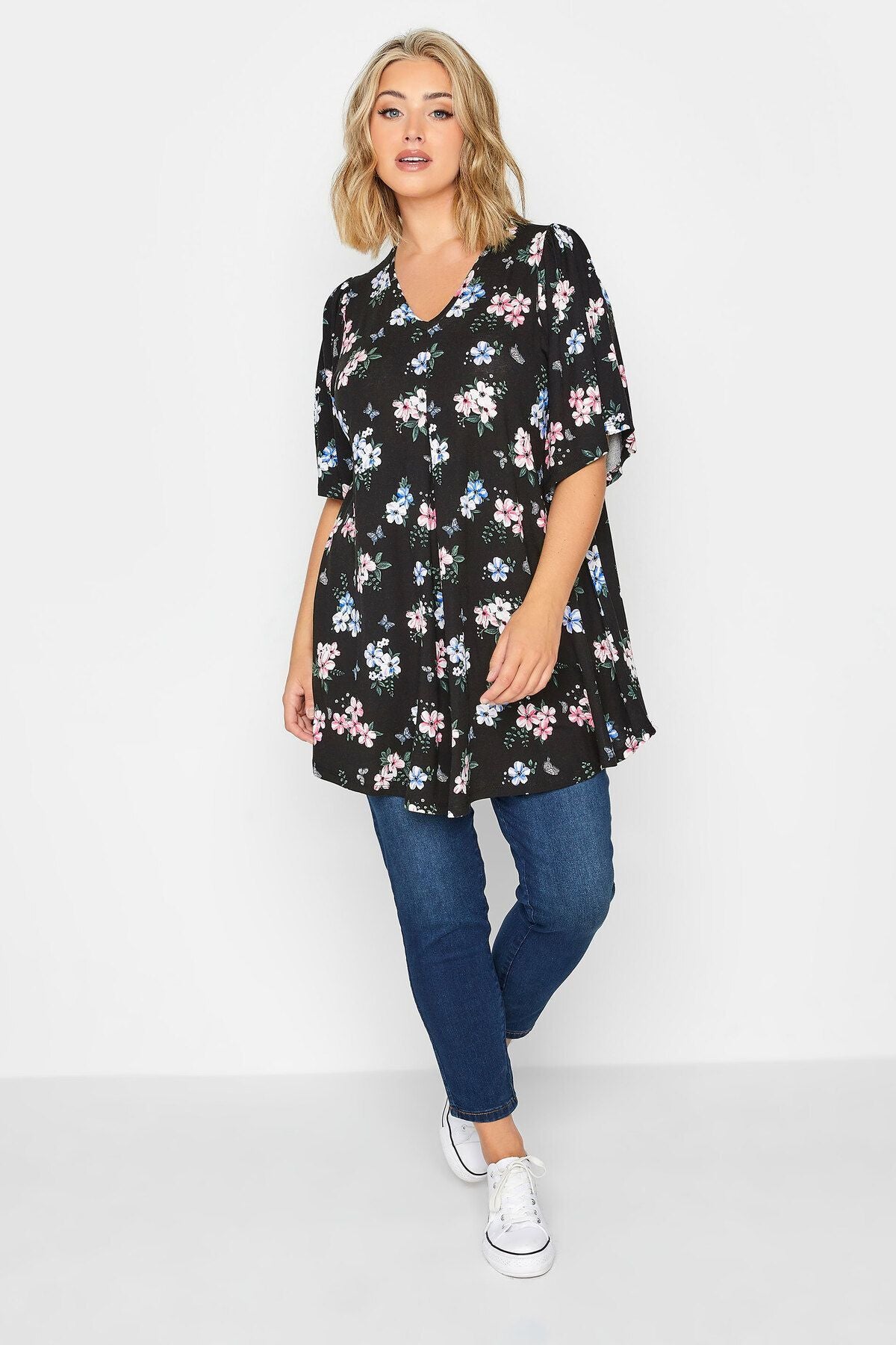 Büyük Beden V Yaka Desenli Asimetrik Kesim Likralı Bluz 302479