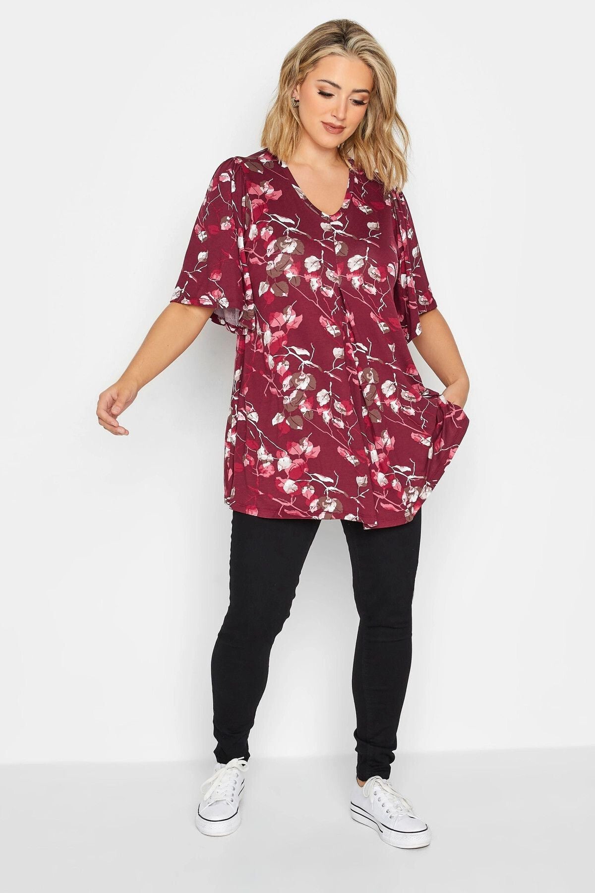 Büyük Beden V Yaka Desenli Asimetrik Kesim Likralı Bluz 302484
