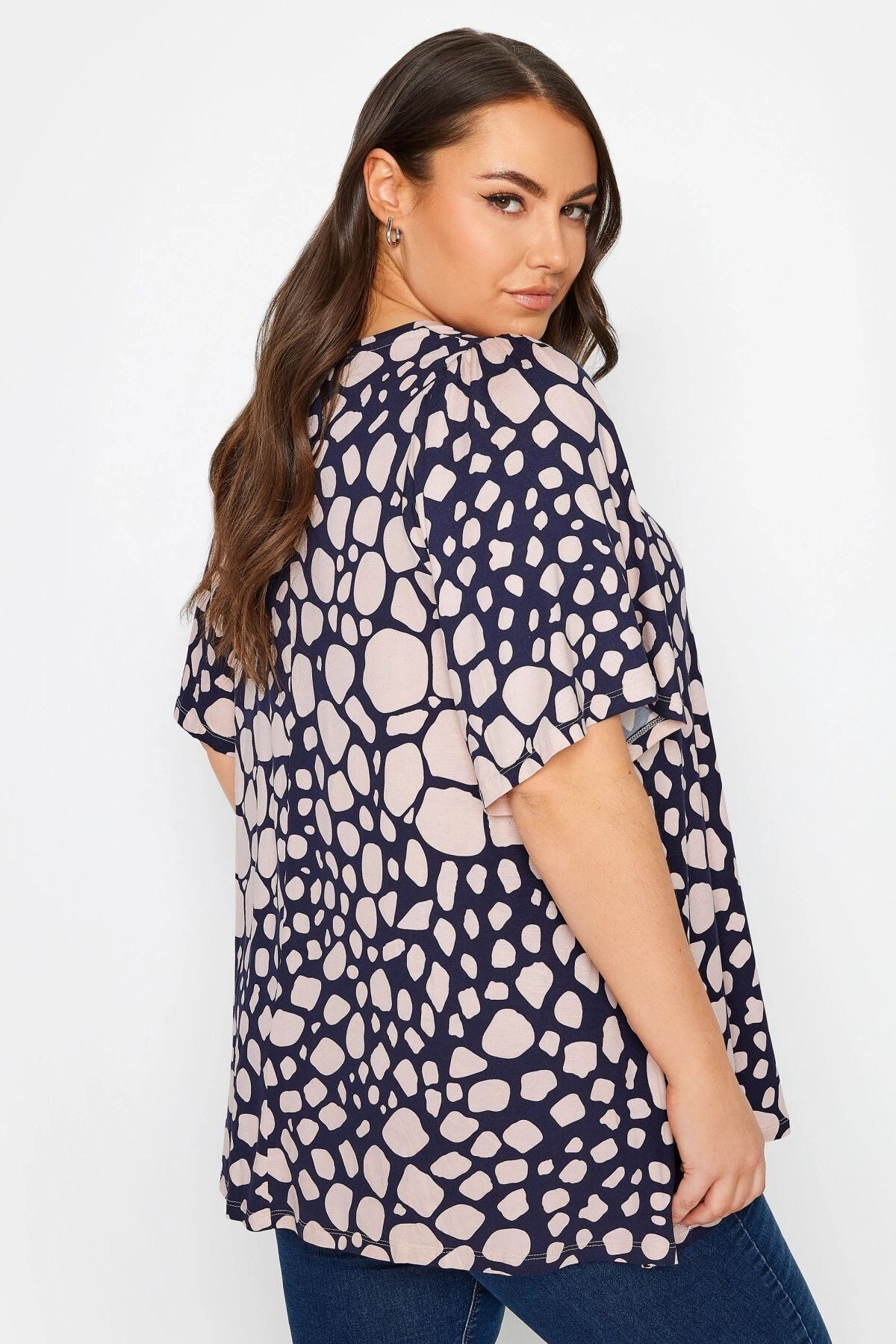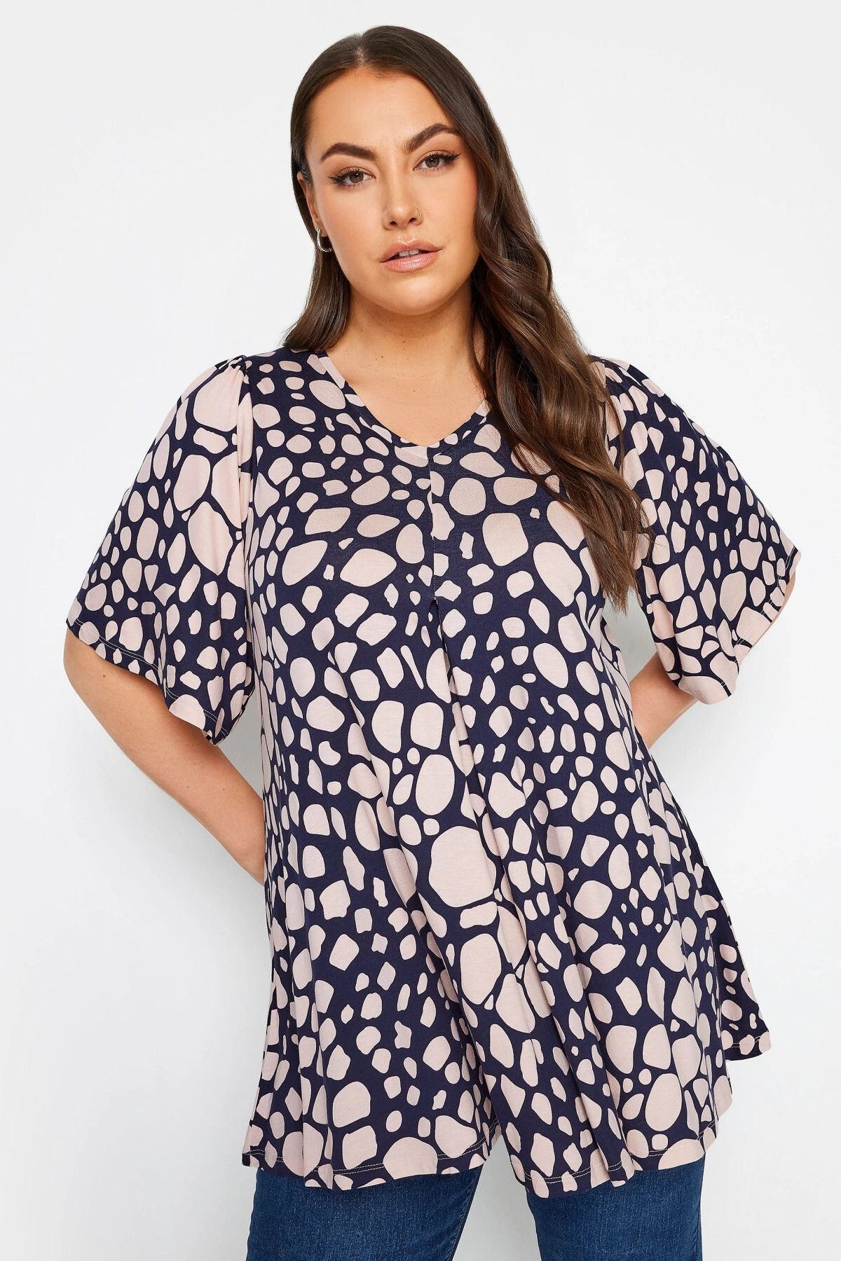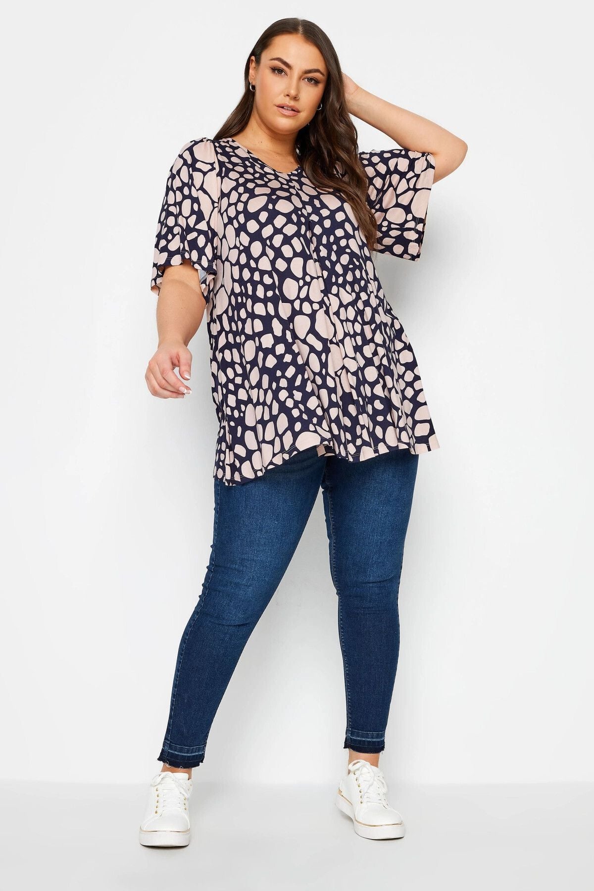 Büyük Beden V Yaka Desenli Asimetrik Kesim Likralı Bluz 302673