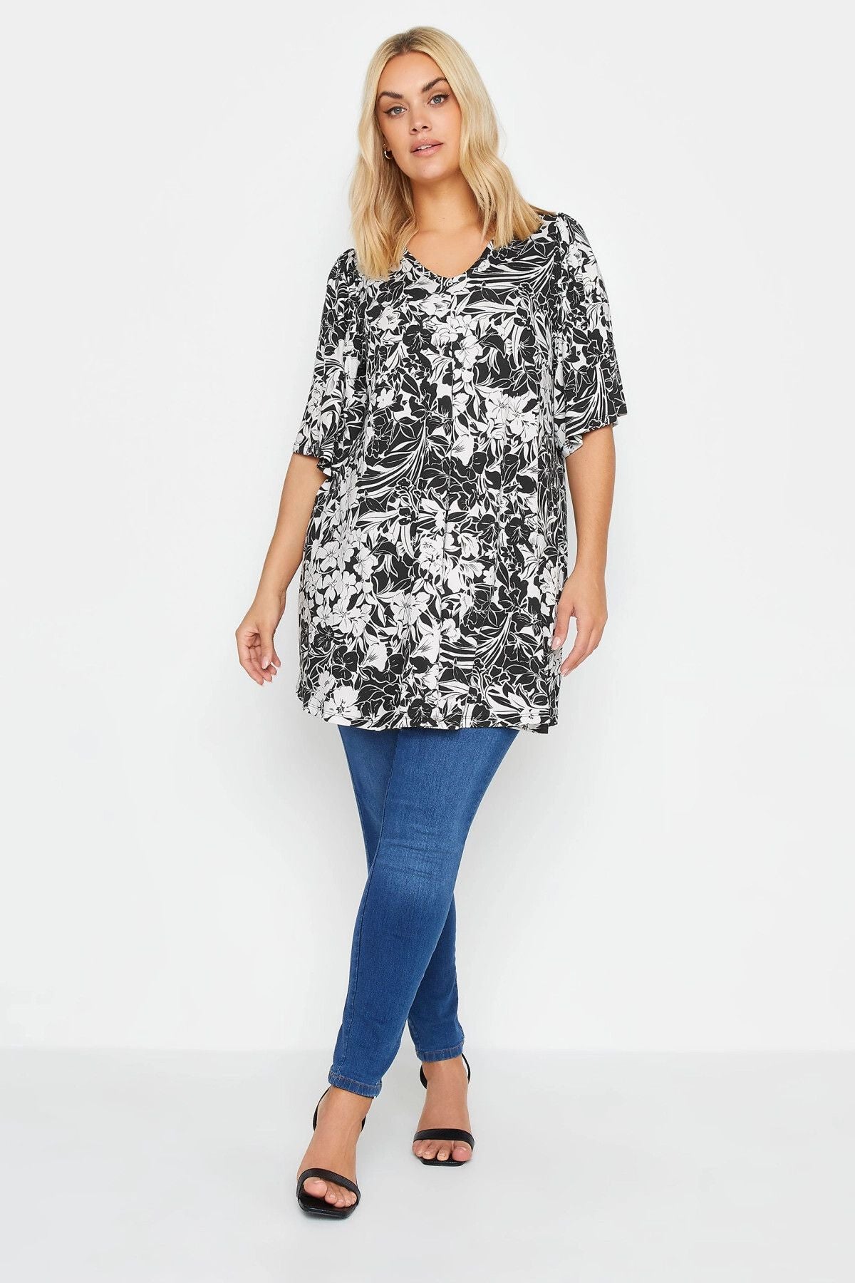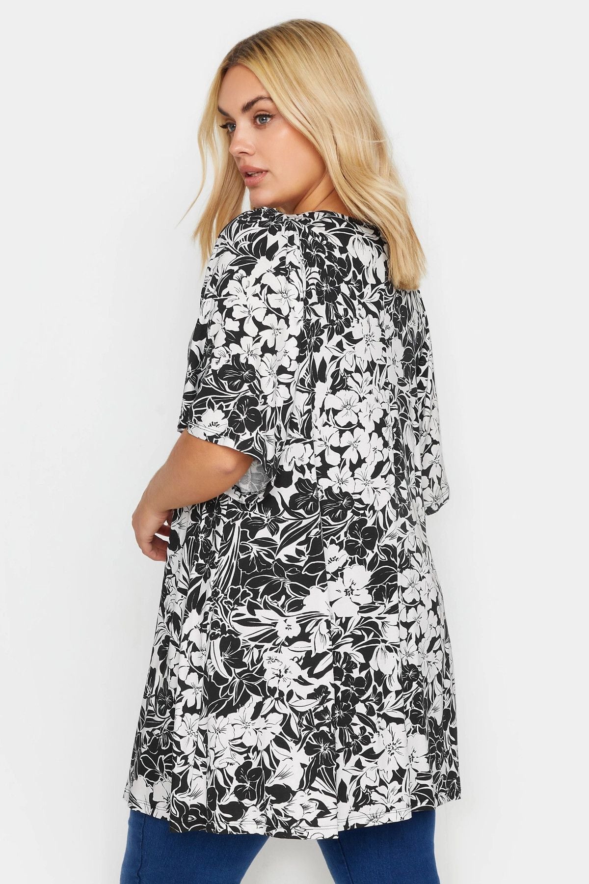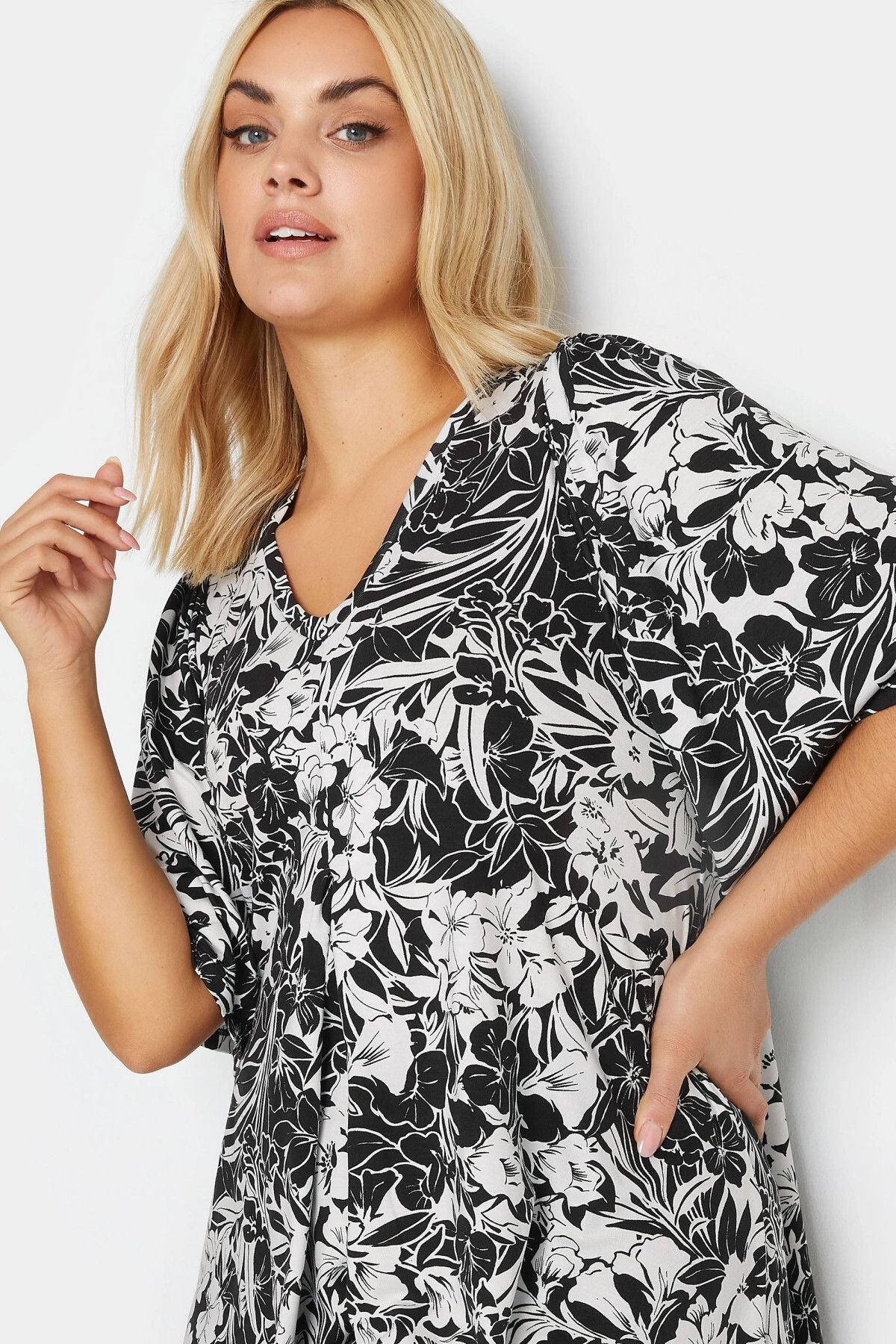 Büyük Beden V Yaka Desenli Asimetrik Kesim Likralı Bluz 303029