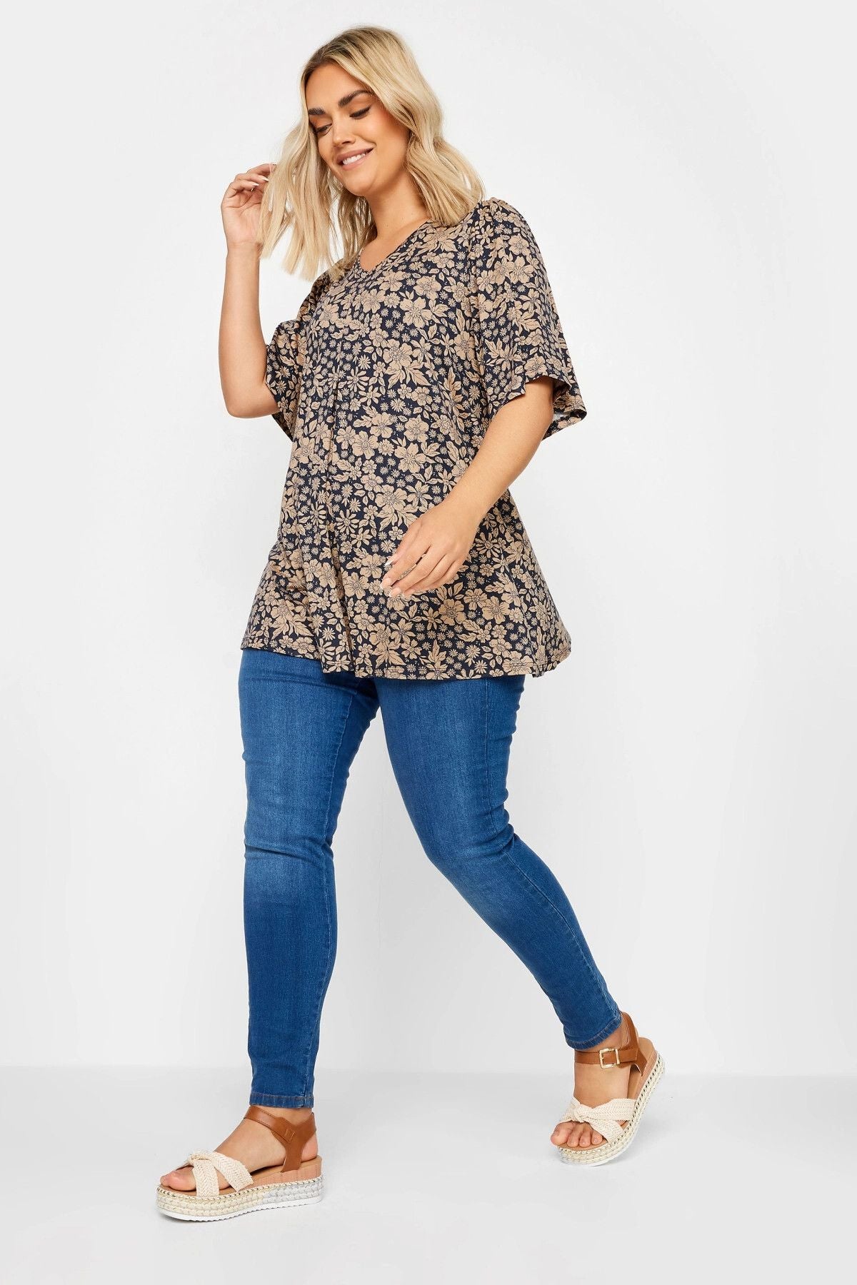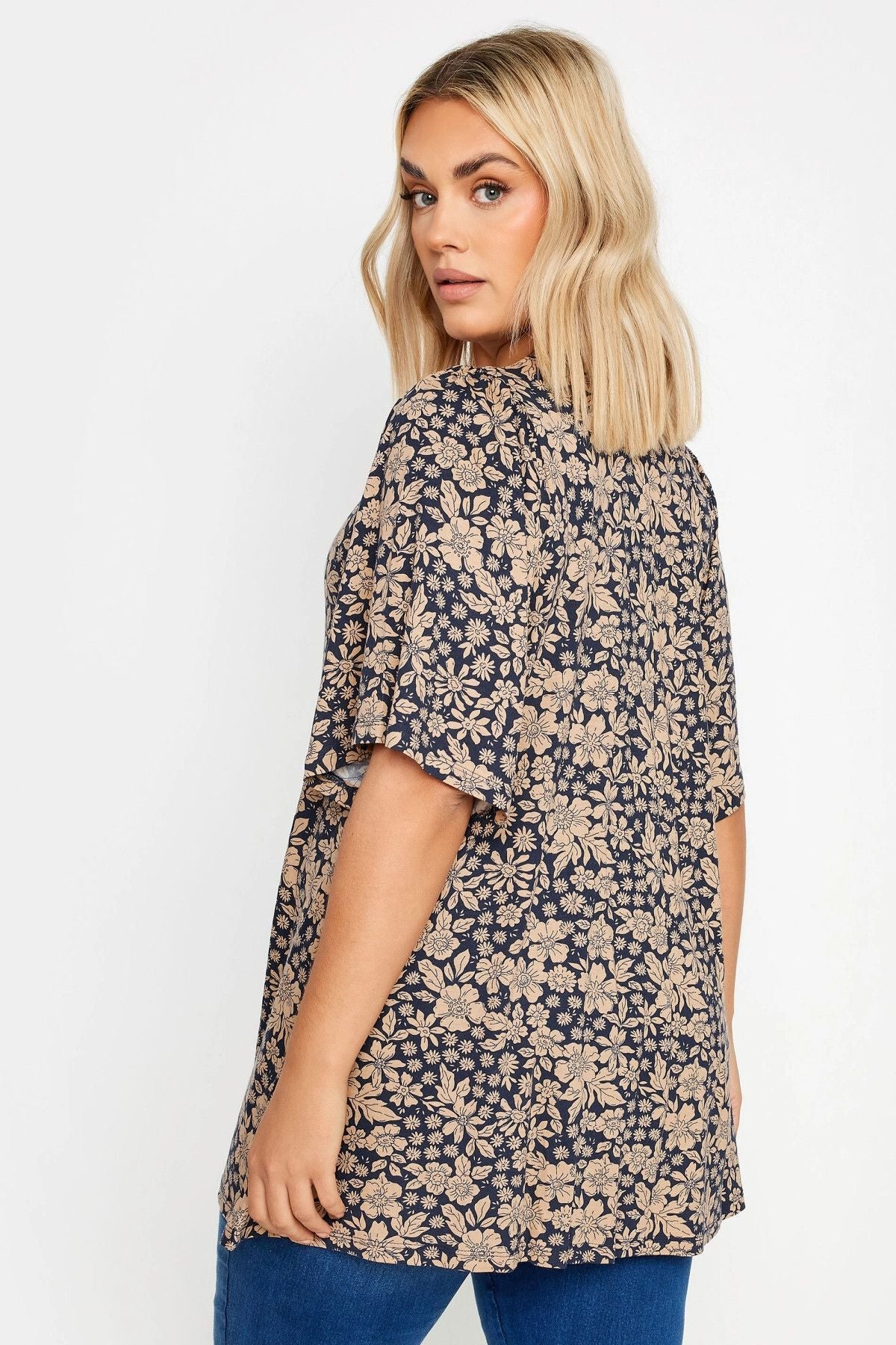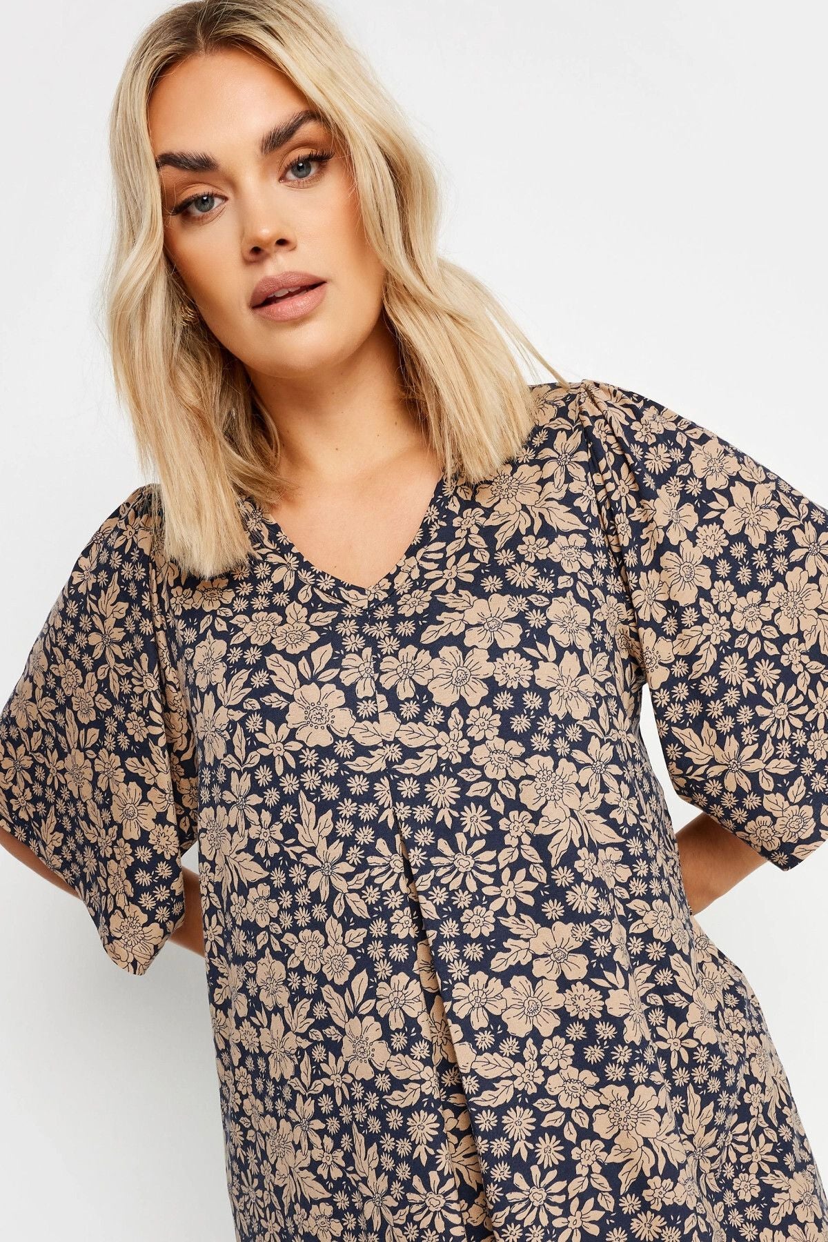 Büyük Beden V Yaka Desenli Asimetrik Kesim Likralı Bluz 303250