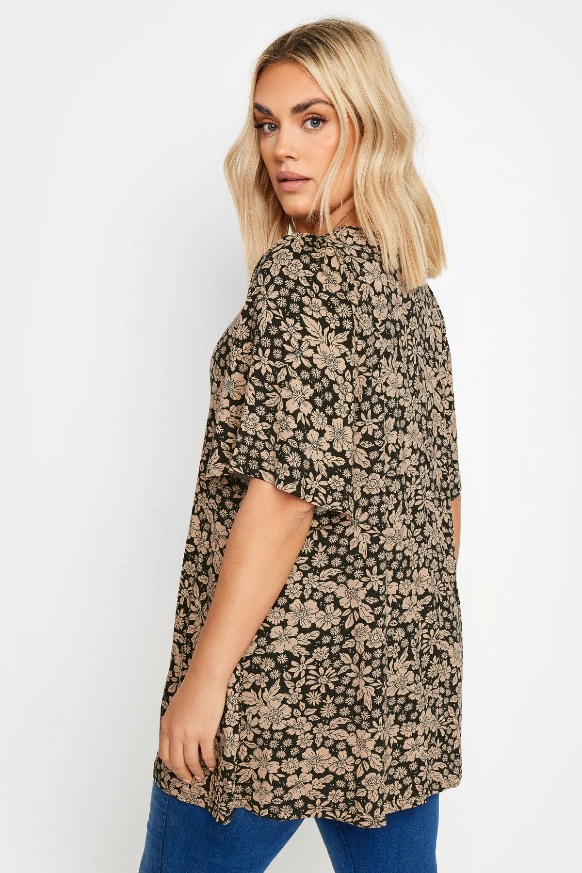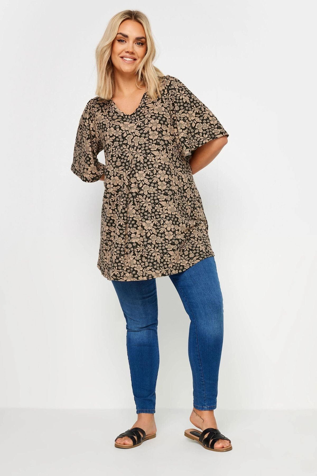 Büyük Beden V Yaka Desenli Asimetrik Kesim Likralı Bluz 303251