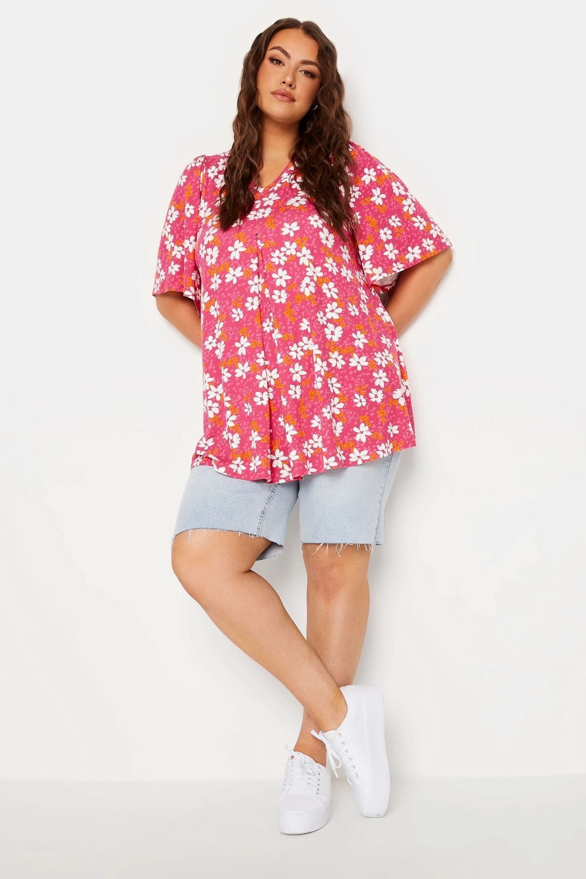 Büyük Beden V Yaka Desenli Asimetrik Kesim Likralı Bluz 320977