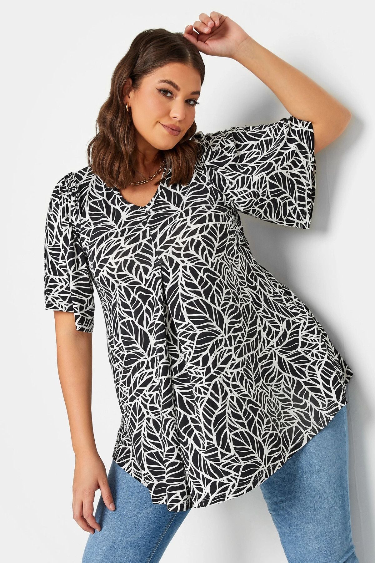 Büyük Beden V Yaka Desenli Asimetrik Kesim Likralı Bluz 320979