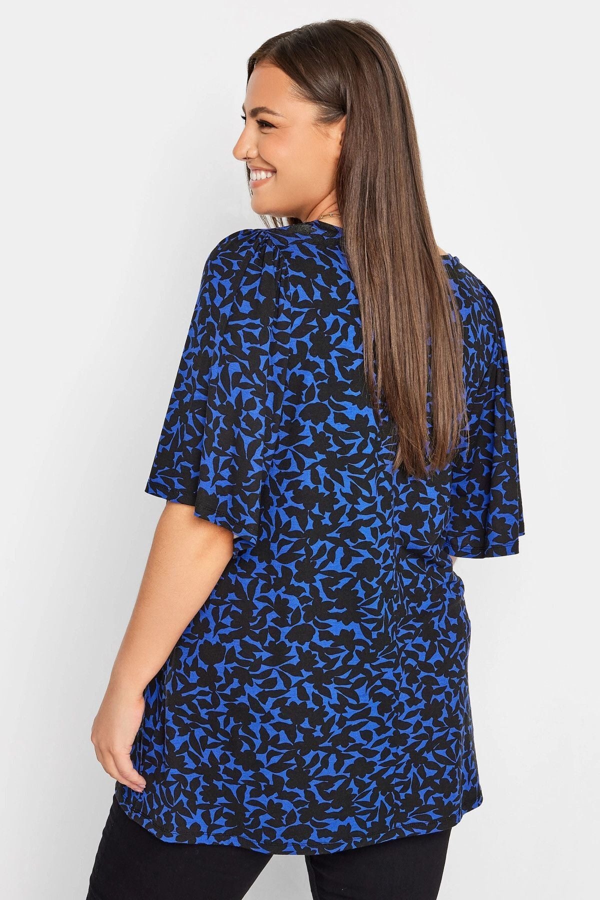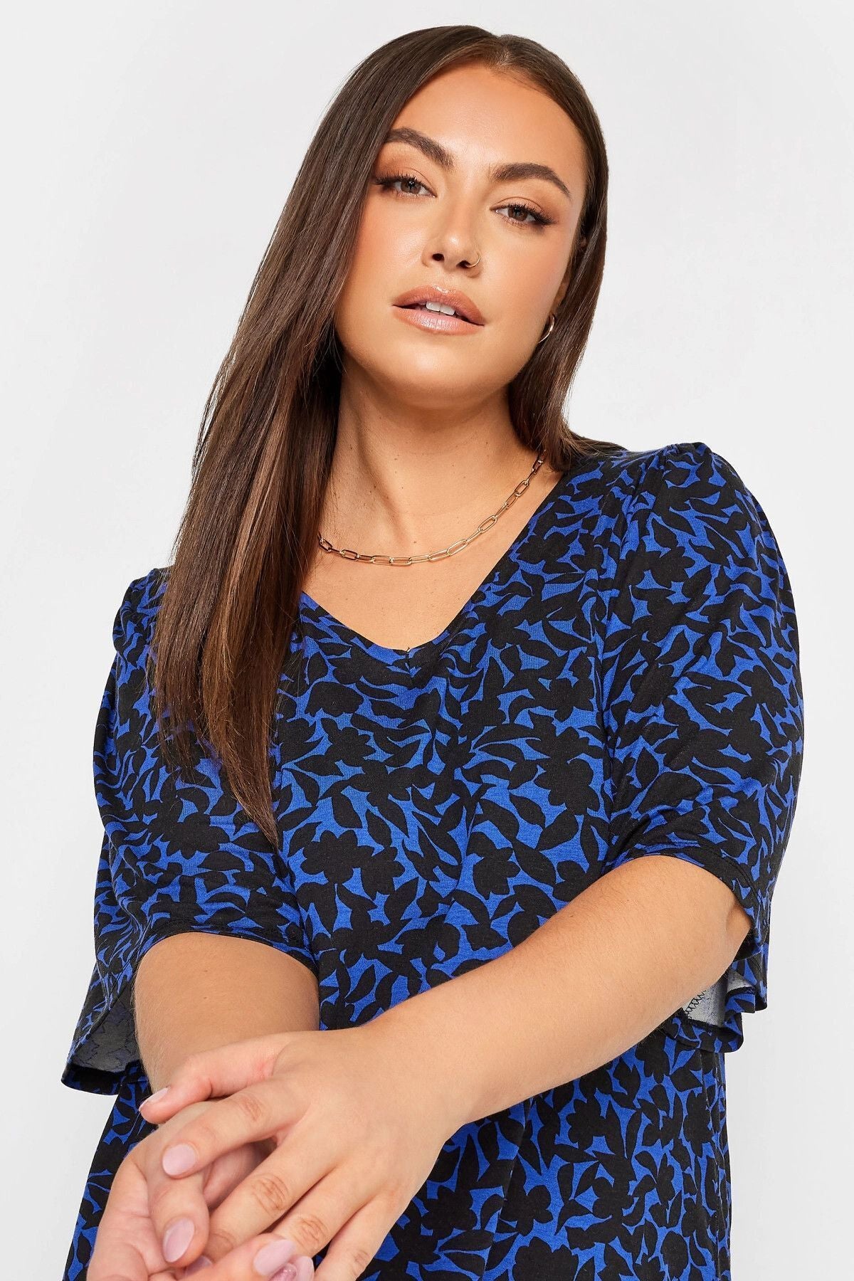 Büyük Beden V Yaka Desenli Asimetrik Kesim Likralı Bluz 321128