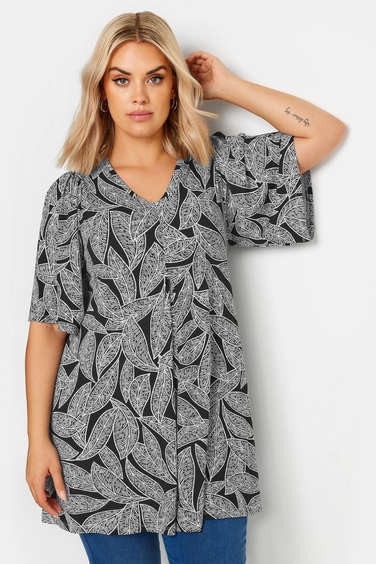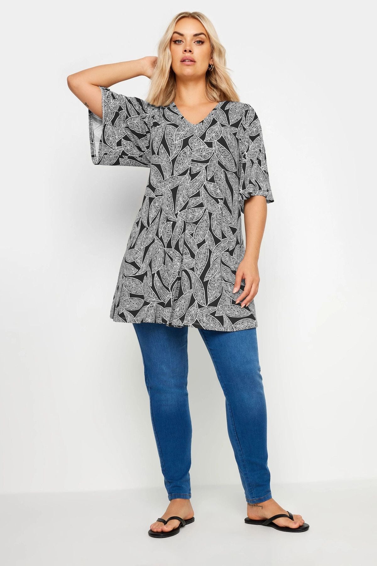 Büyük Beden V Yaka Desenli Asimetrik Kesim Likralı Bluz 321765