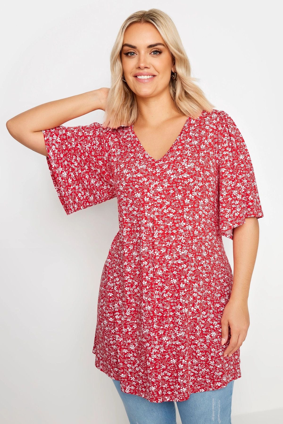 Büyük Beden V Yaka Desenli Asimetrik Kesim Likralı Bluz 321766