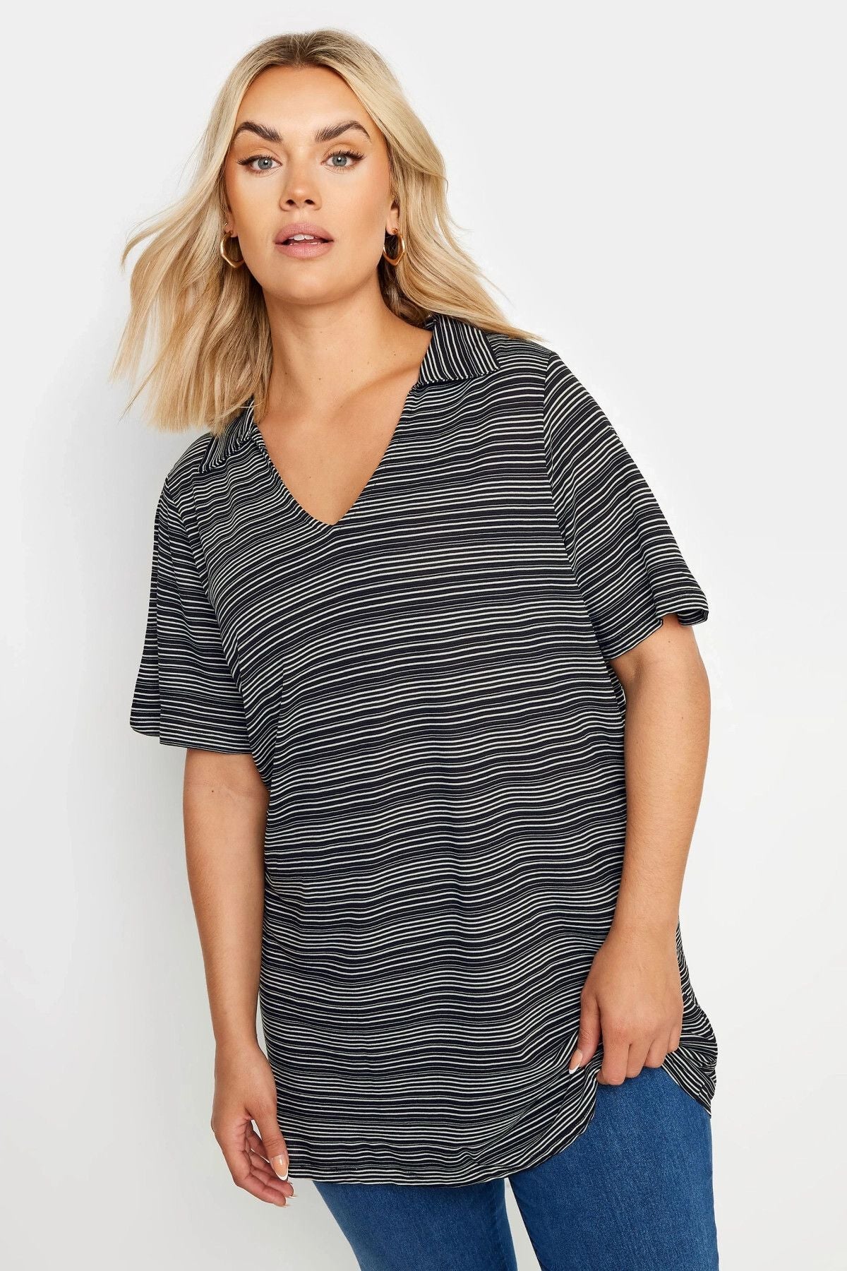 Büyük Beden V Yaka Desenli Kısa Kollu T-shirt 303371