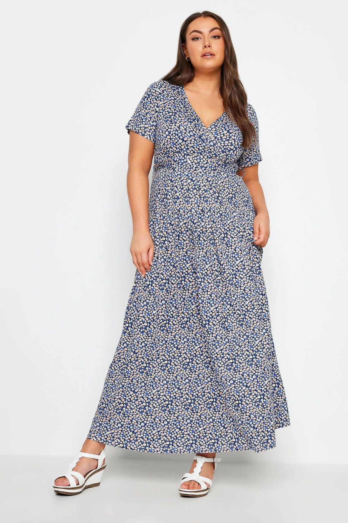 Büyük Beden V Yaka Desenli Kuşaklı Kısa Kol Anvelop Elbise 302644