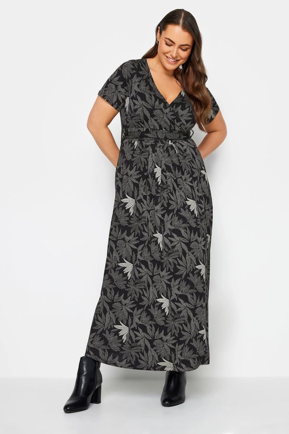 Büyük Beden V Yaka Desenli Kuşaklı Kısa Kol Anvelop Elbise 302694