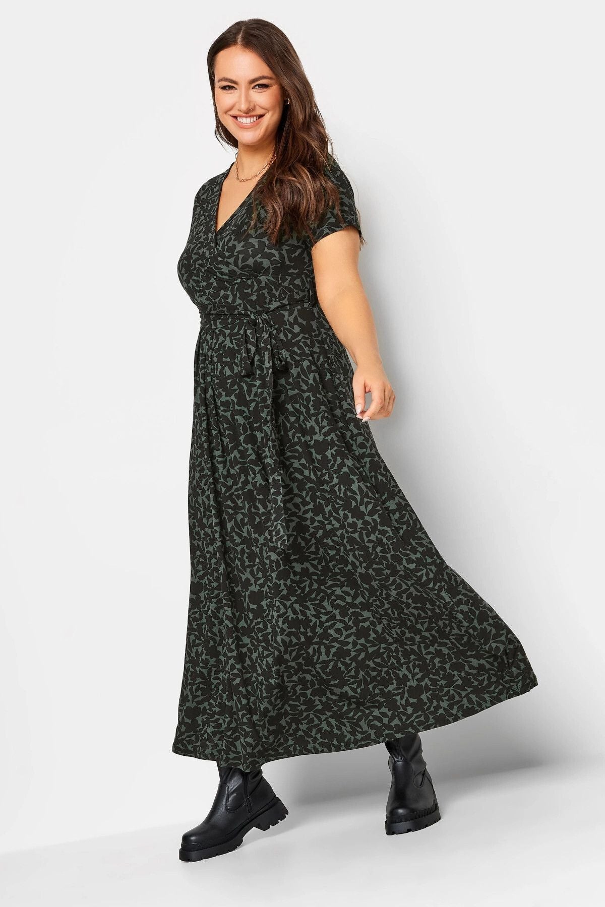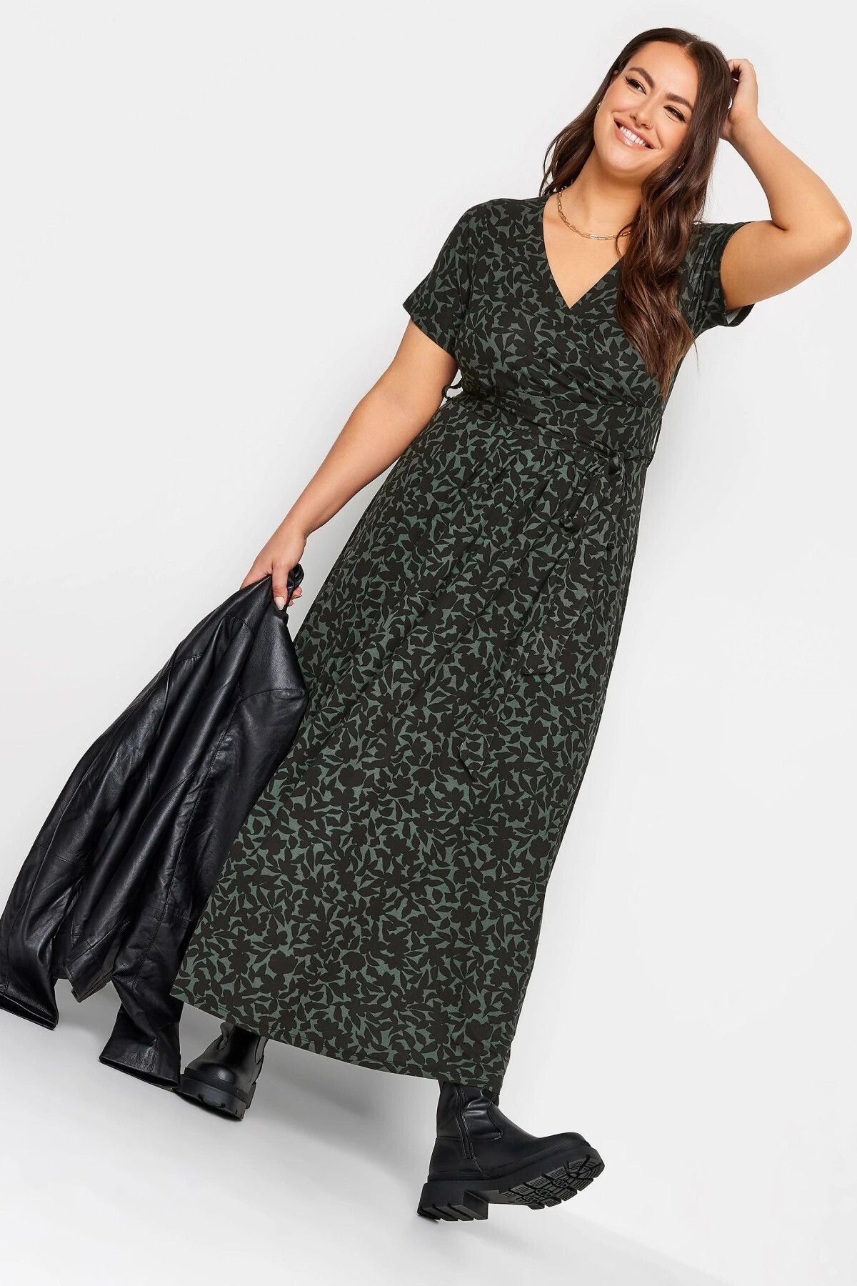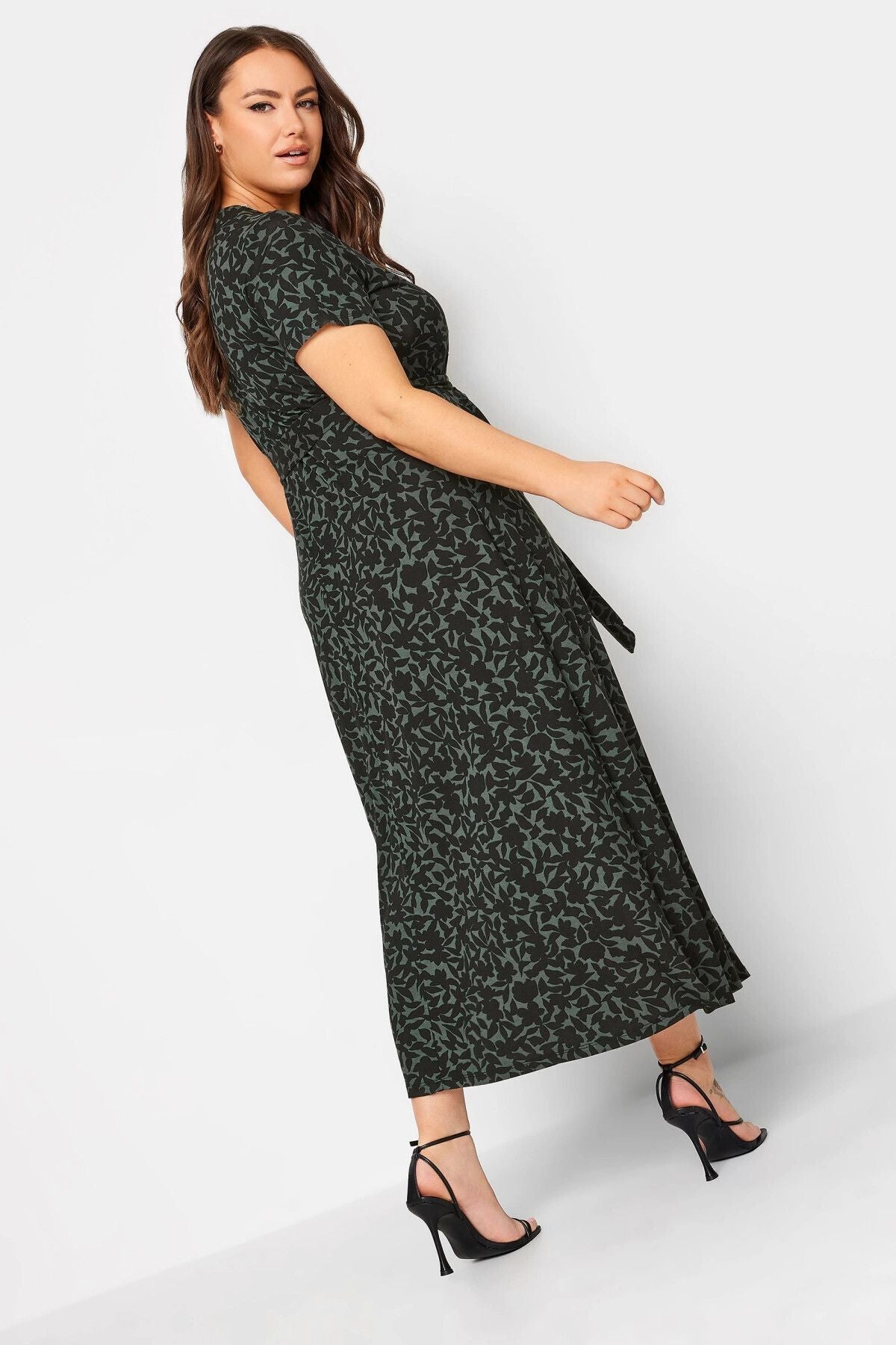 Büyük Beden V Yaka Desenli Kuşaklı Likralı Yarım Kol Anvelop Elbise 137585