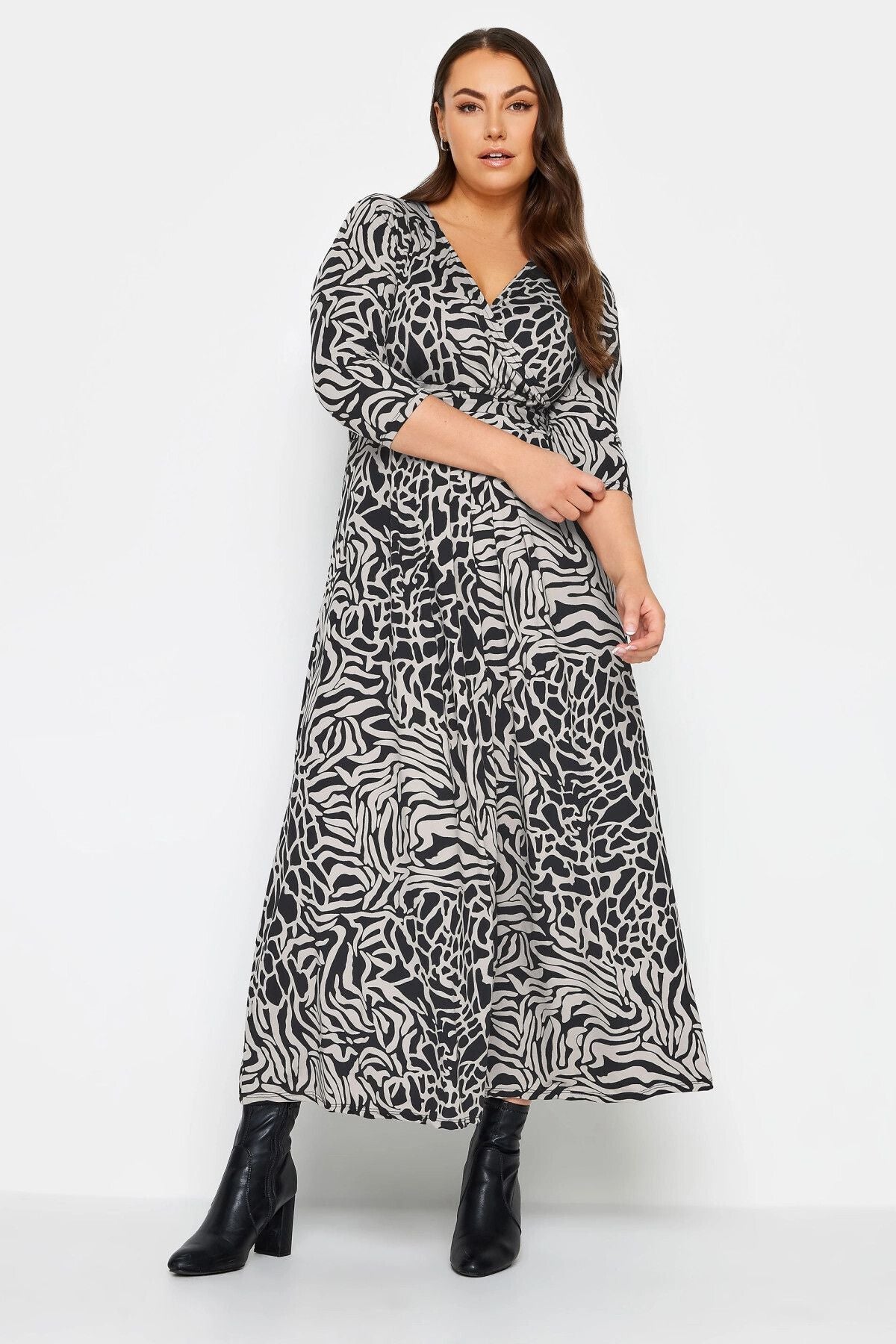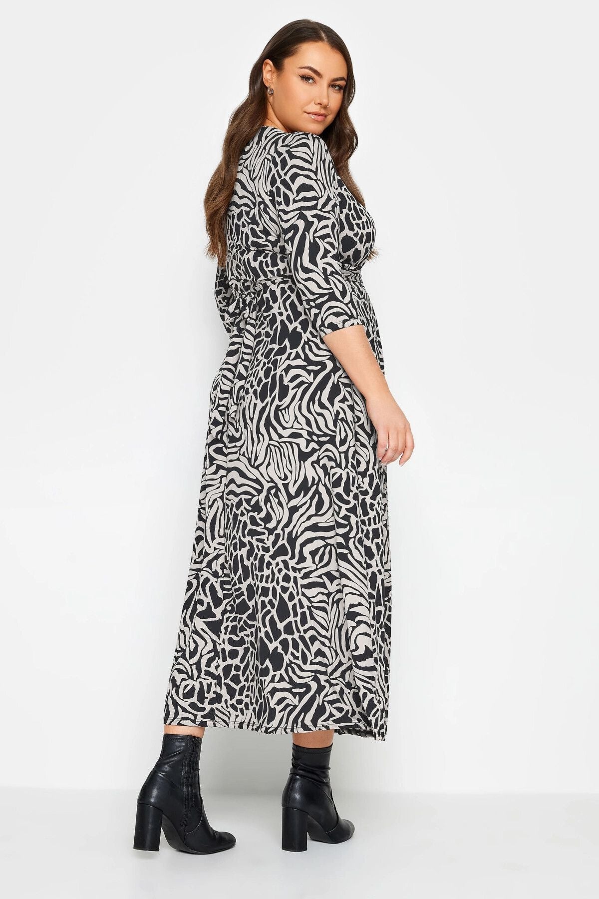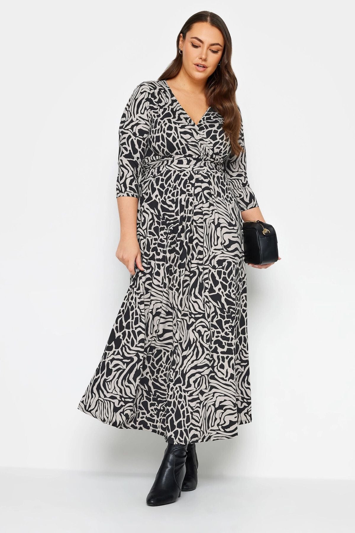 Büyük Beden V Yaka Desenli Kuşaklı Likralı Yarım Kol Anvelop Elbise 302633