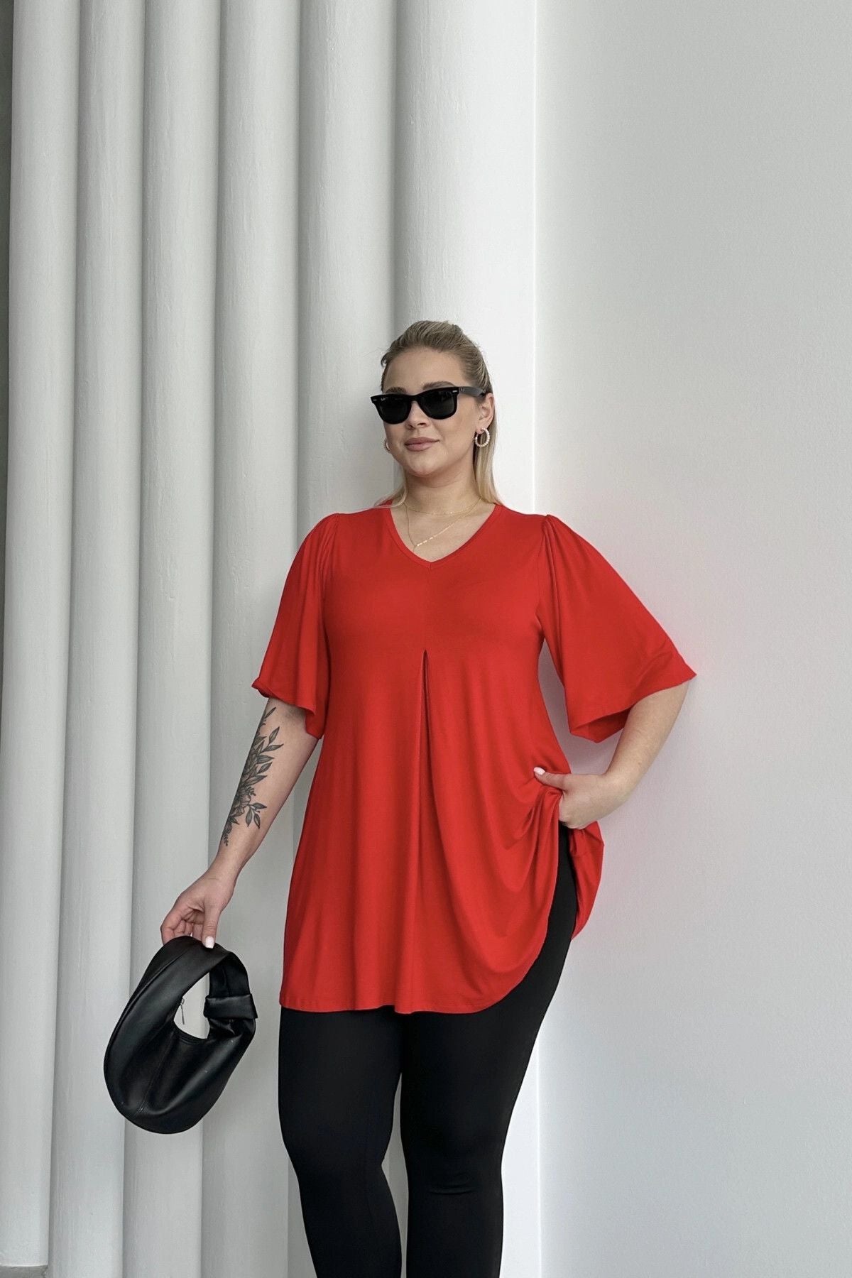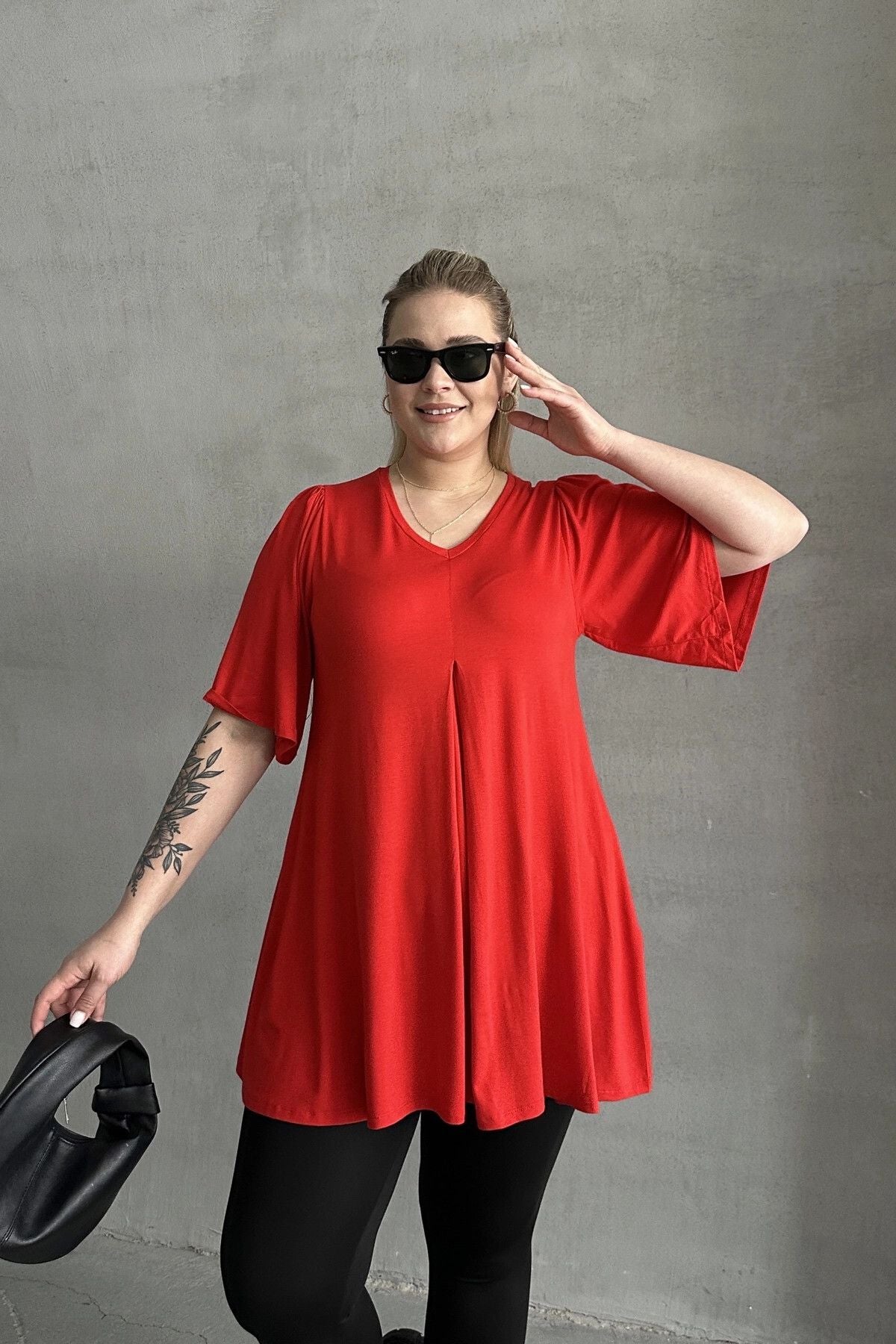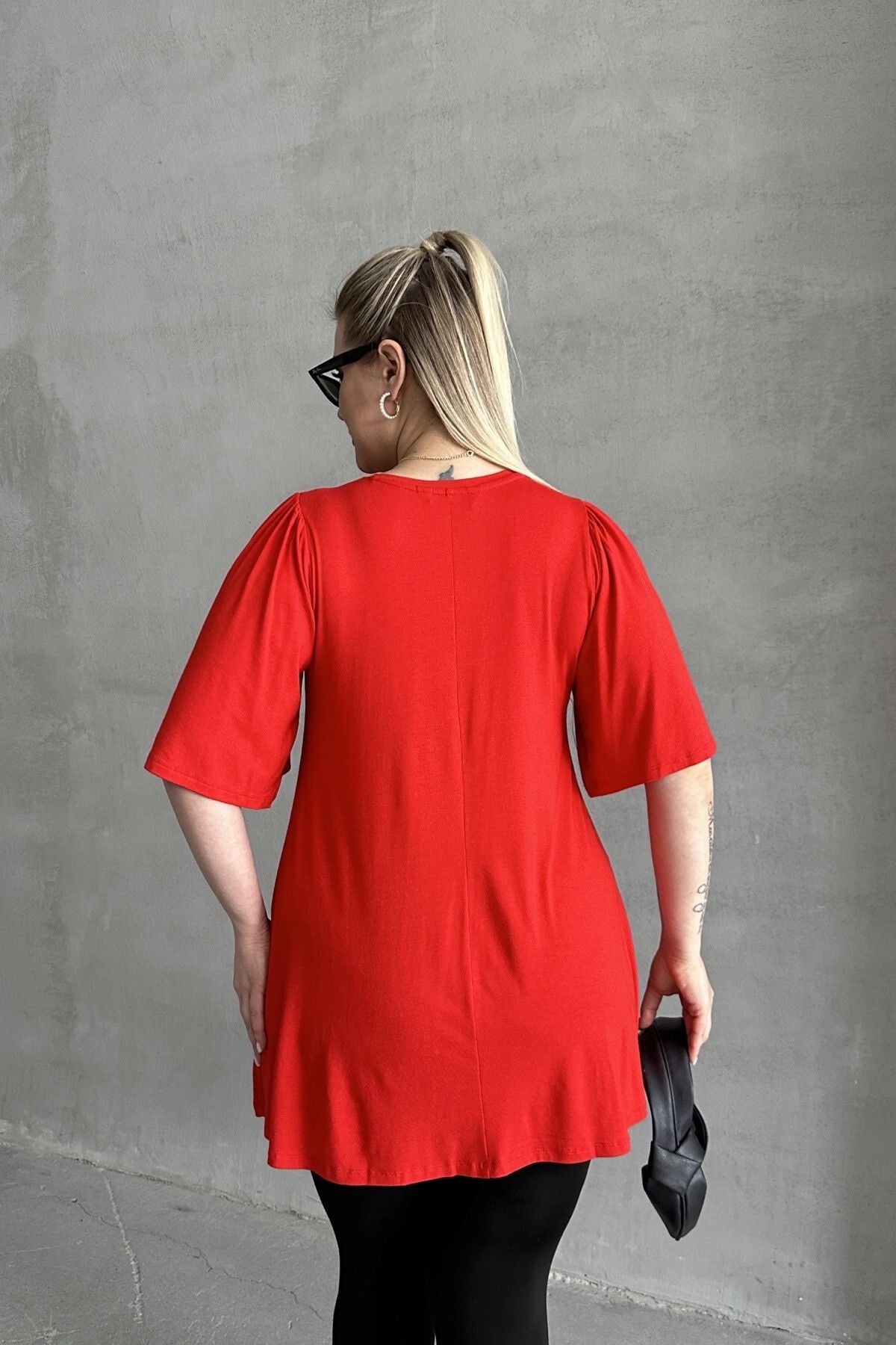 Büyük Beden V Yaka Desensiz Asimetrik Kesim Likralı Bluz MDL-5