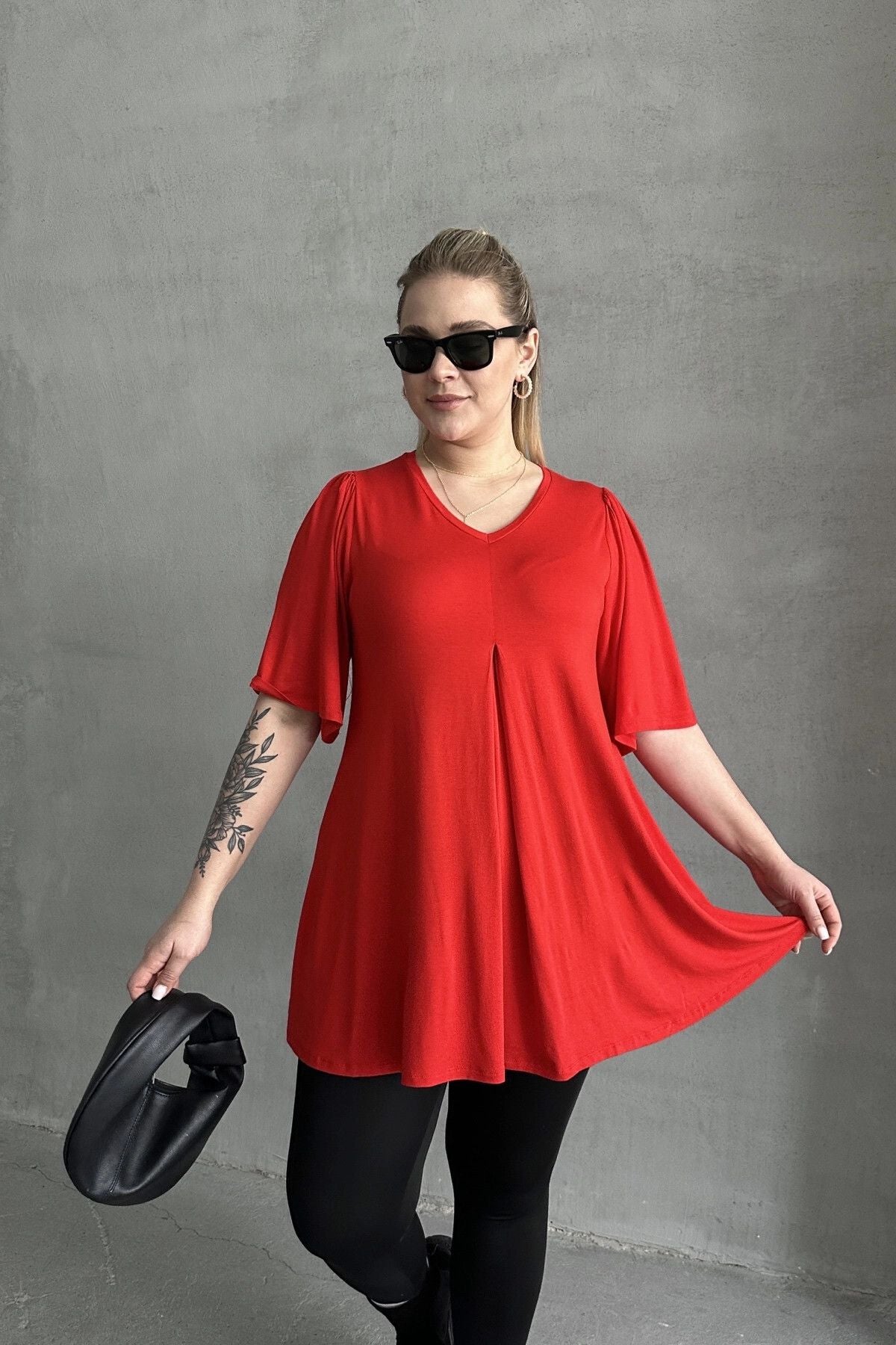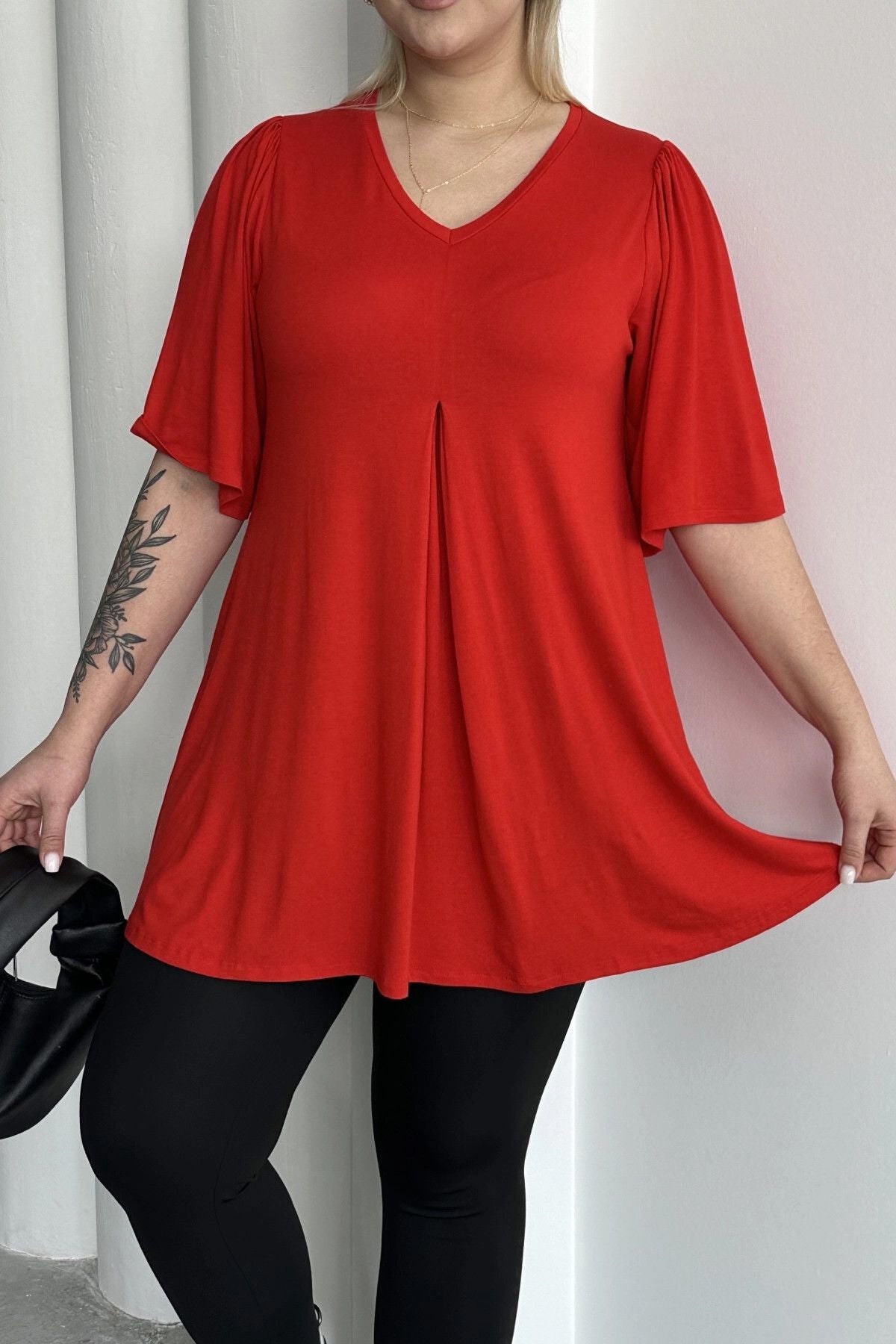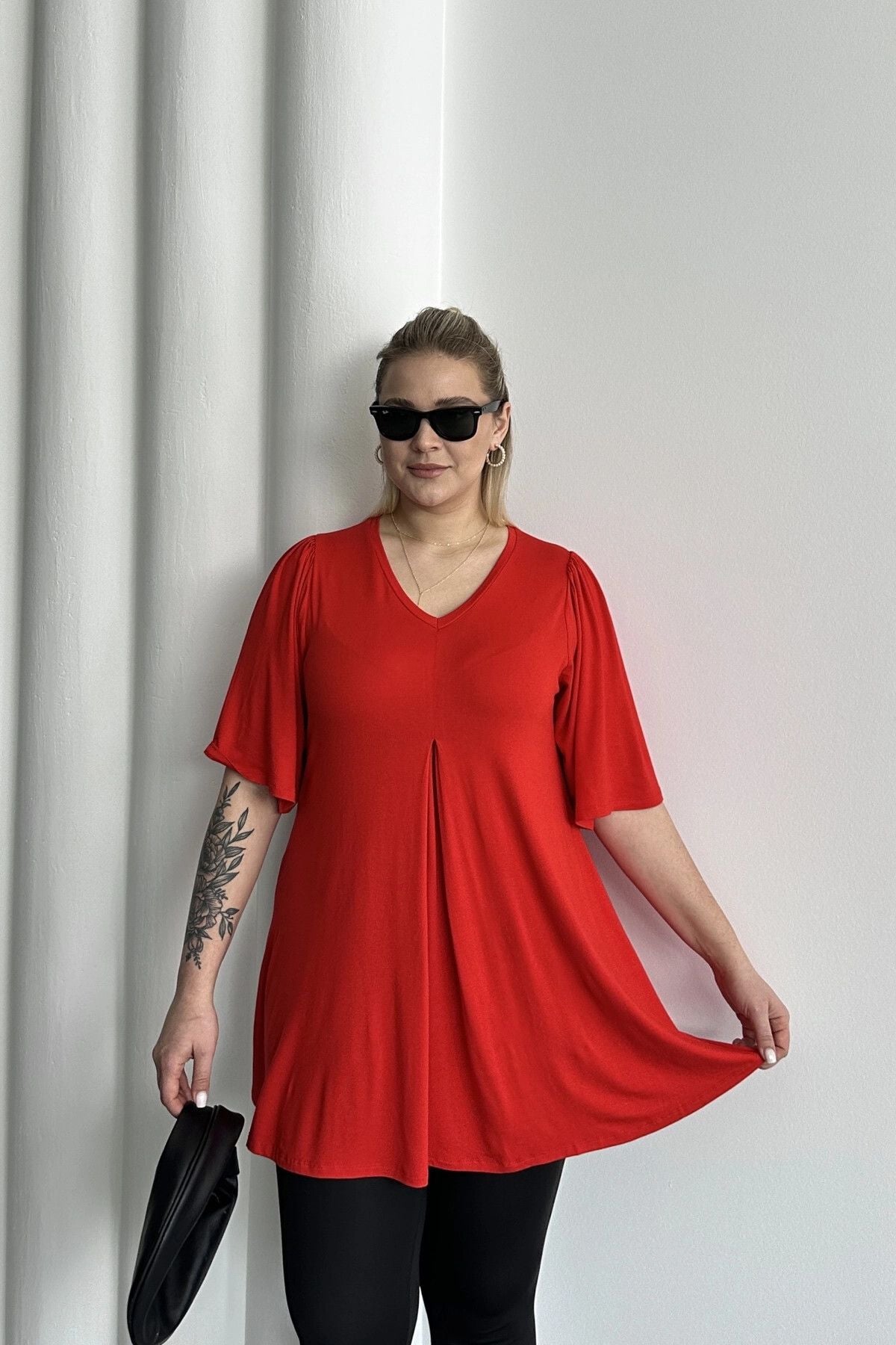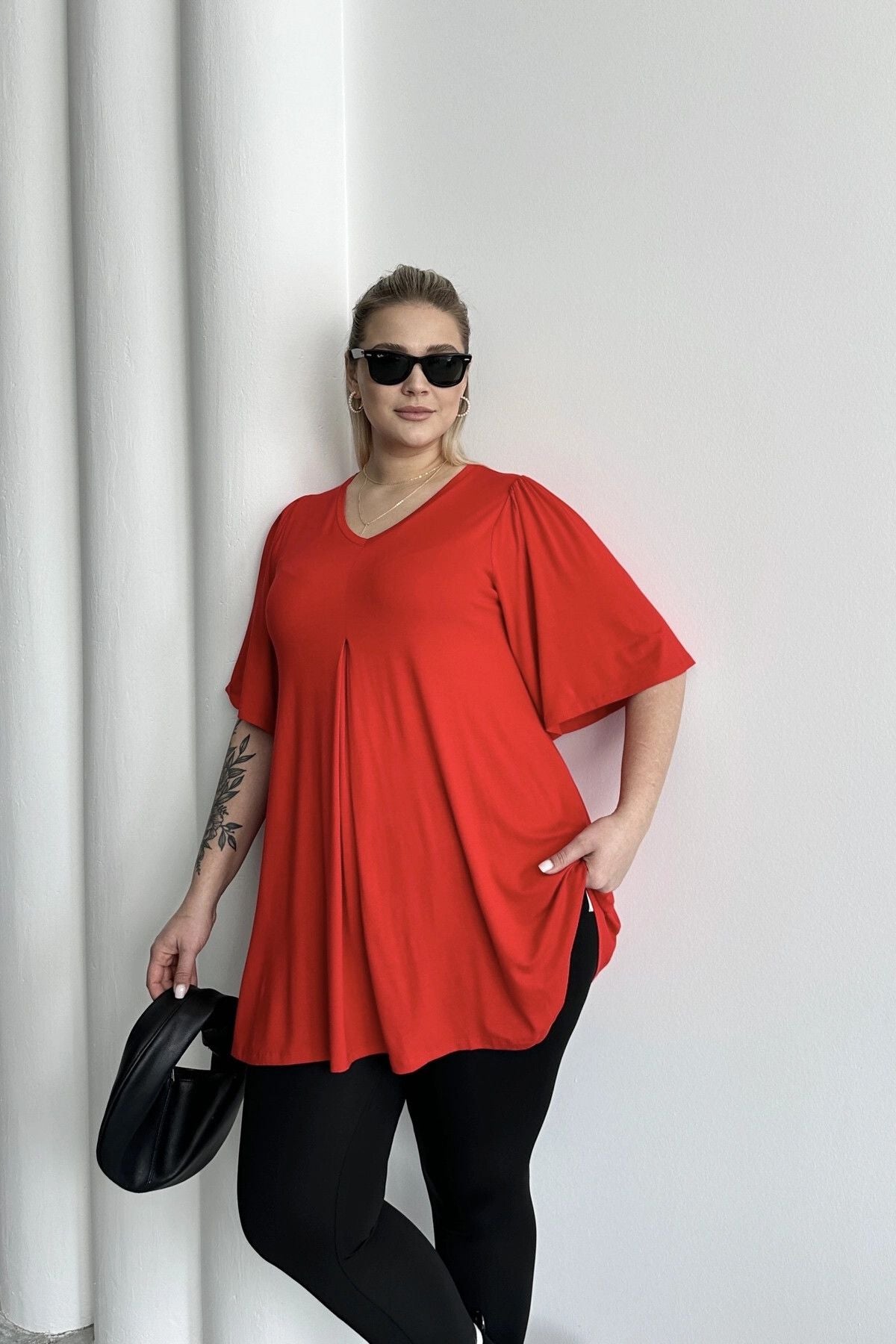 Büyük Beden V Yaka Desensiz Asimetrik Kesim Likralı Bluz MDL-5
