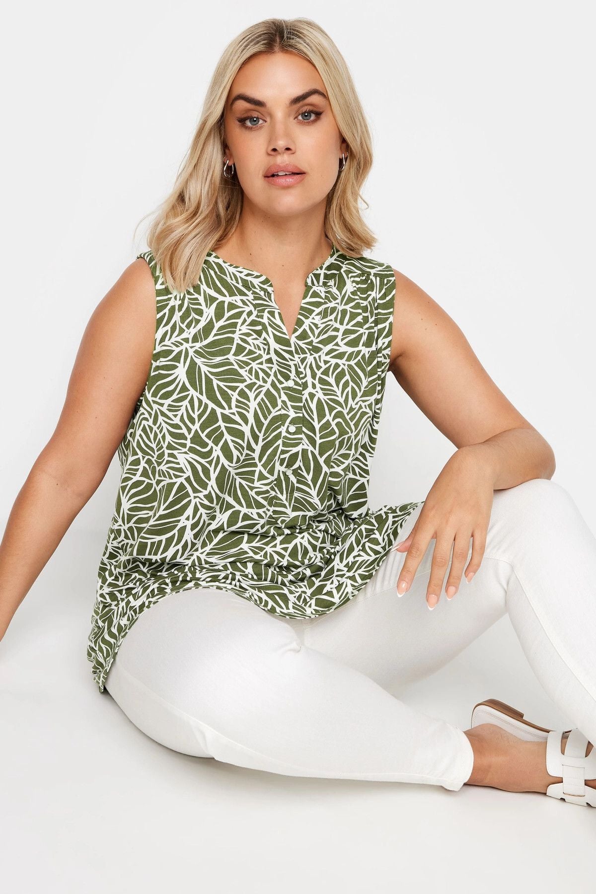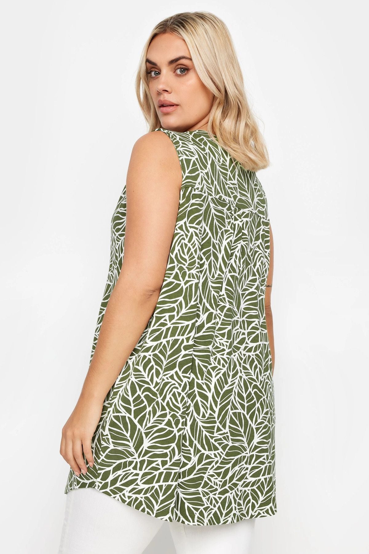Büyük Beden V Yaka Düğmeli Desenli Uzun Kesim Kolsuz Bluz 321727