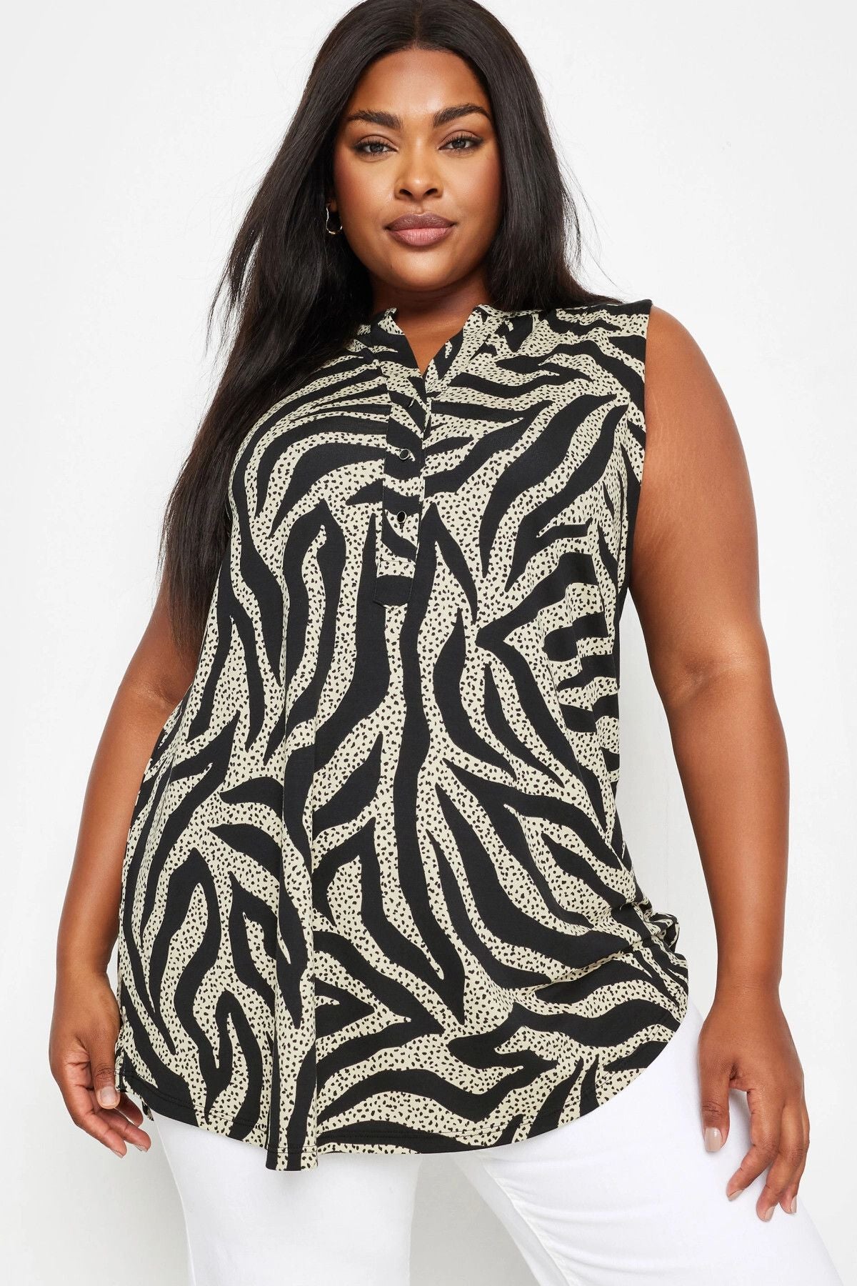 Büyük Beden V Yaka Düğmeli Desenli Uzun Kesim Kolsuz Bluz 321728