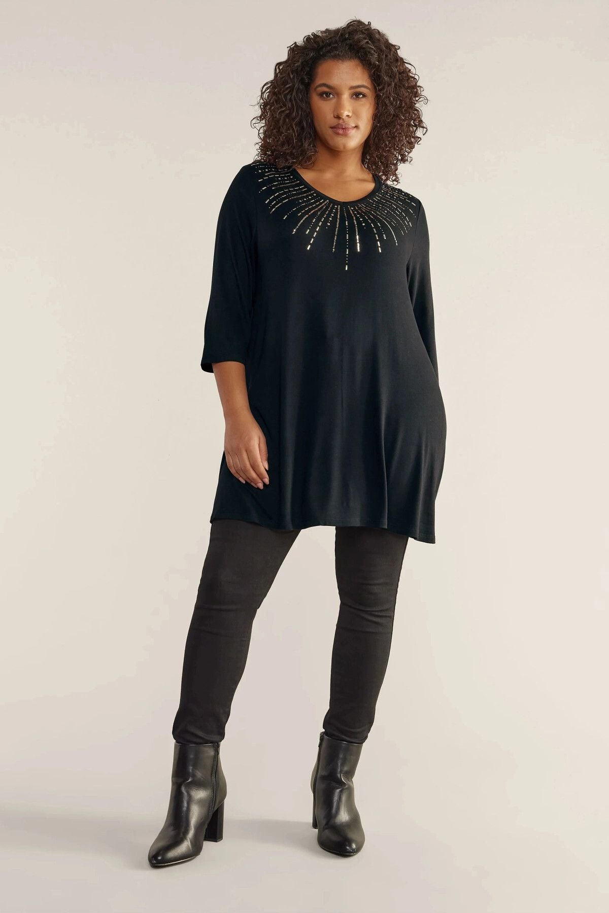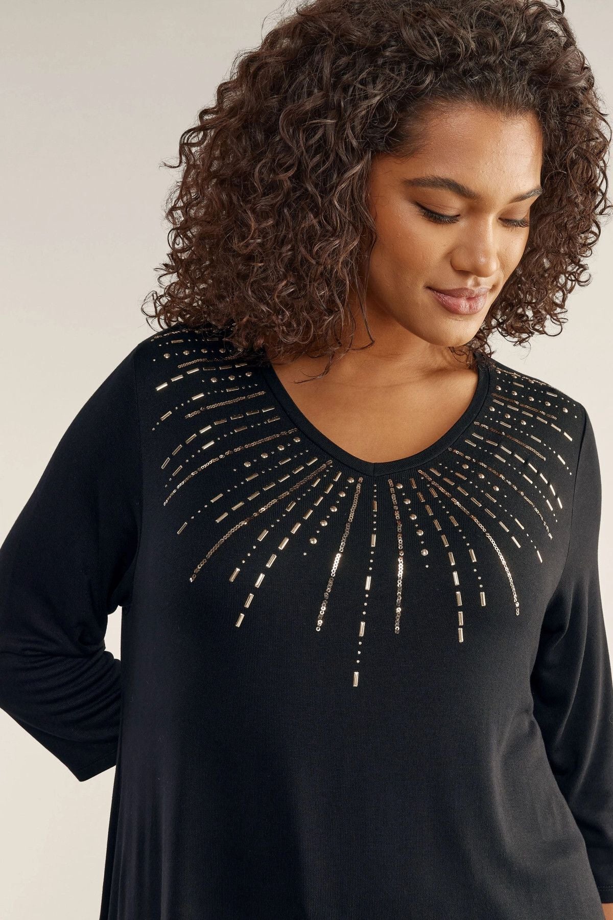 Büyük Beden V Yaka Fakir Kol Payet İşlemeli Bluz 615155